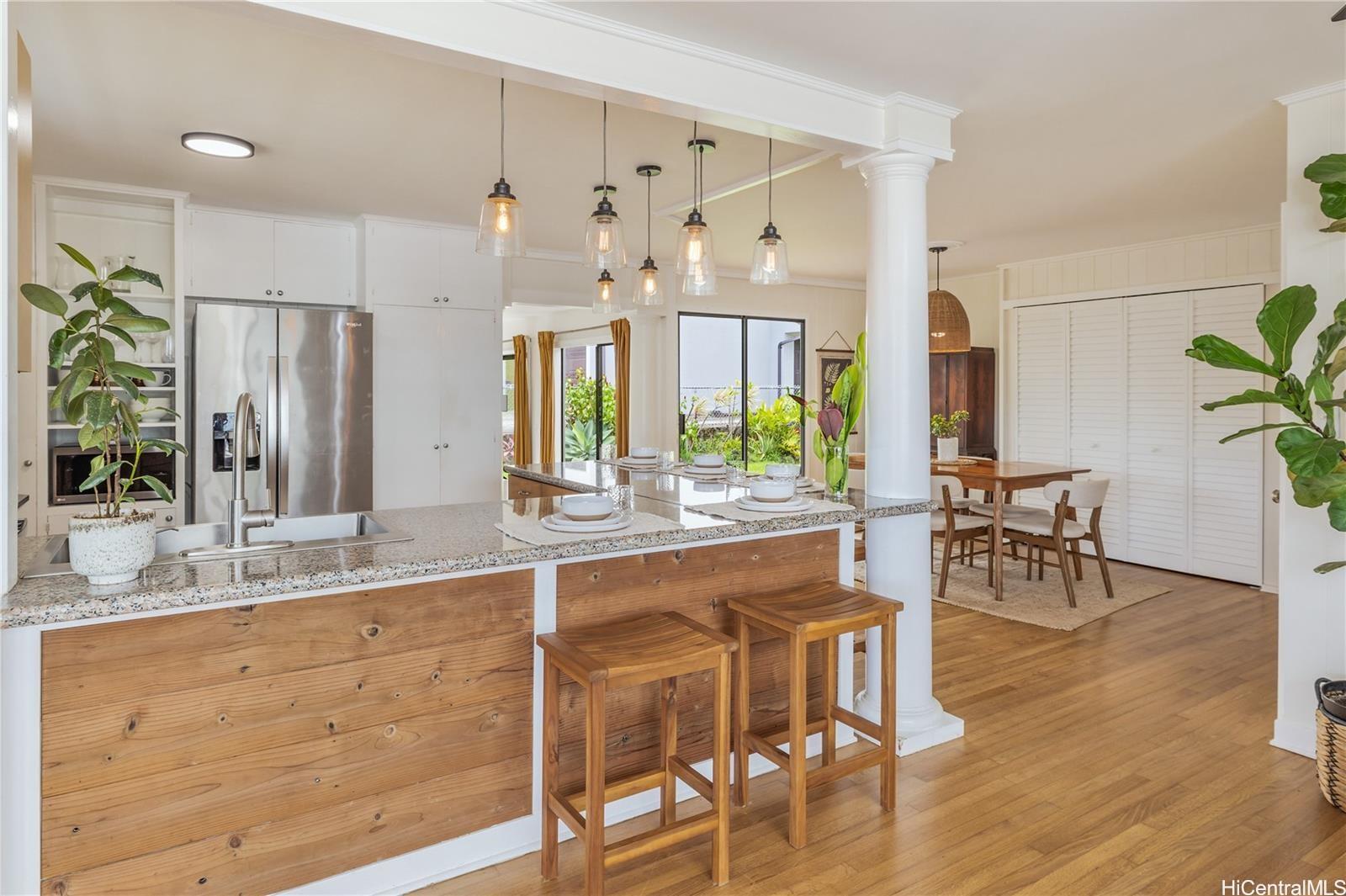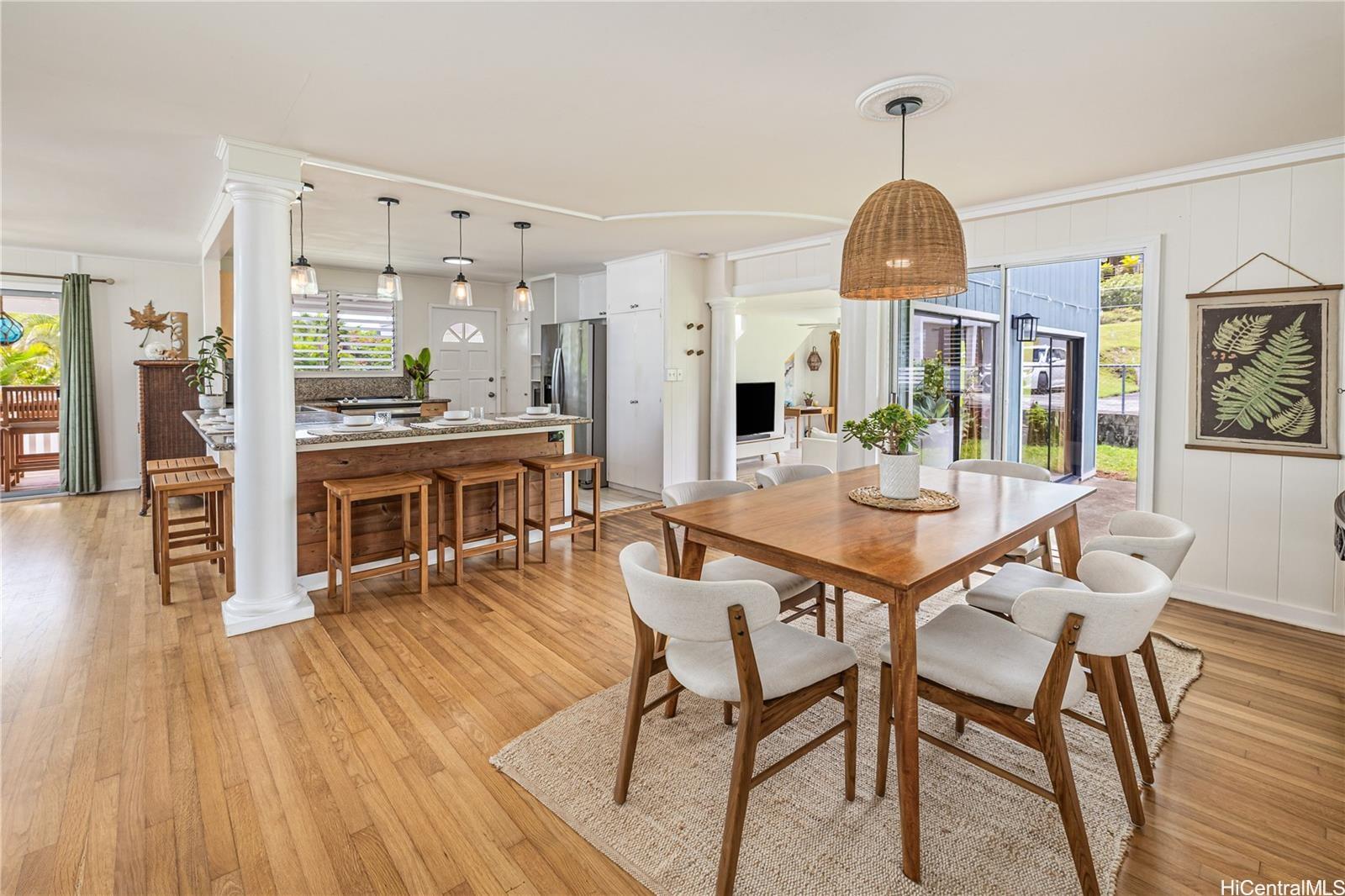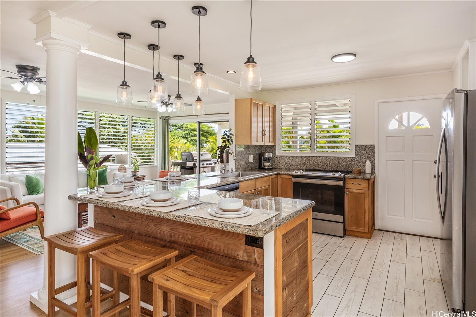コオラウ山脈のゴージャスな眺望!広々としたフェンスで囲まれた緑豊かな裏庭には、実のなるアボカドとウルの木があります。 別々に購入された2つの土地が最近統合され、1つのTMKとなった。 前面の屋根付きラナイはリビングとキッチンにつながっており、屋内外での生活に最適。 家の中心にあるキッチンには、5人掛けの広いカウンターがあり、独立したダイニングエリアがあり、リビングルームを見渡すことができる。 キッチンのすぐそばにはエンターテイメント・ルームがあり、大きな窓とスライドドアから鮮やかな裏庭に出ることができる。 主寝室は最上階にあり、大きな窓から素晴らしい山々の眺望が楽しめ、高い天井、スプリット式エアコン、シーリングファン、バスタブ付き。 メイン・フロアには、広葉樹の床、素晴らしい風、バスタブとウォークイン・クローゼットを備えた2つ目の主寝室スイート、その他2つの寝室があり、全室にスプリット式エアコン、広葉樹の床、シーリング・ファンが付いている。 カネオヘタウン、カイルアビーチ、ドッグパーク、ウィンドワード・モール、ル・ジャルダン・アカデミー、高速道路へのアクセス、美しいホオマルヒア植物園にも近く、便利な立地です。 必見の家だ。
