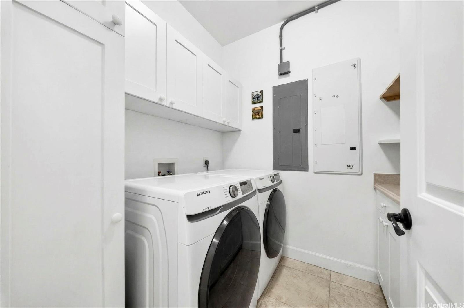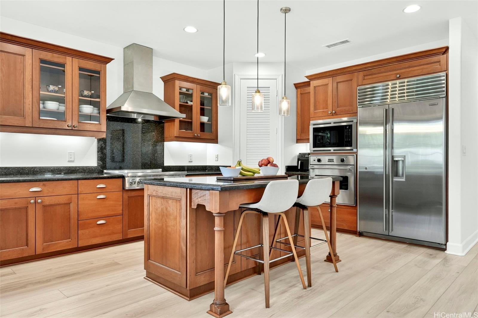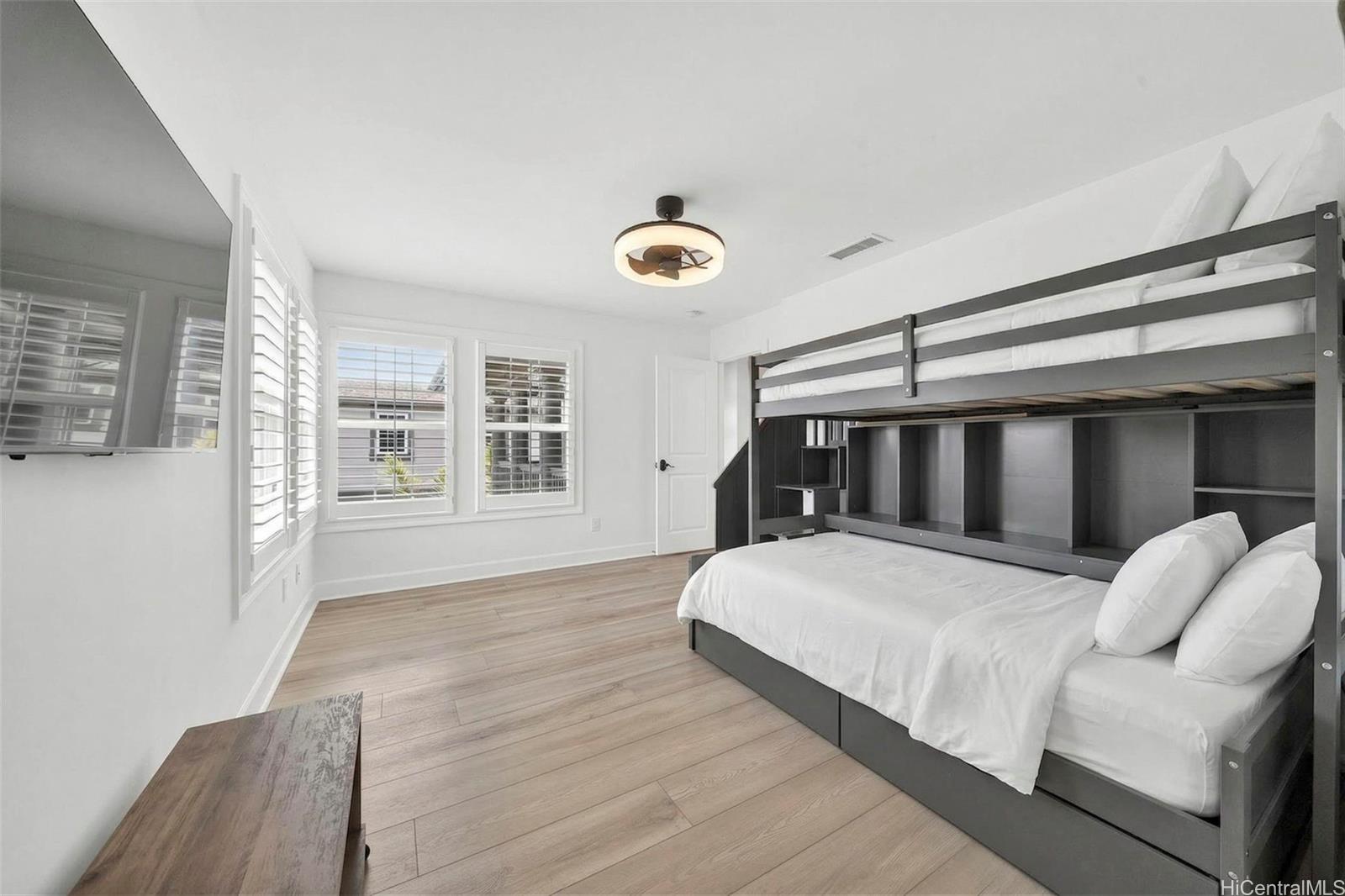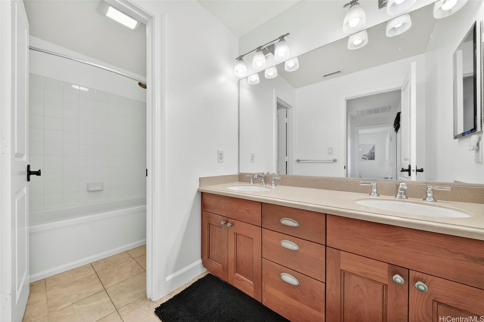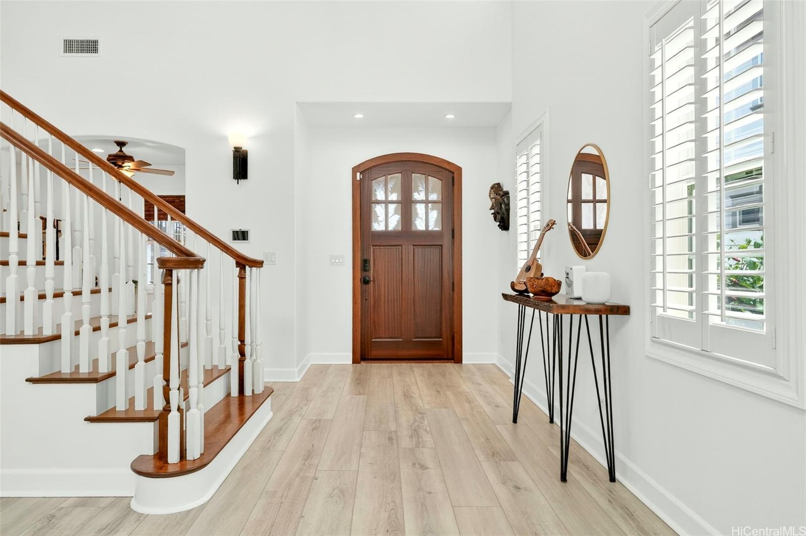 Discover this pristine 60.10 model in Ka Makana at Hoakalei. Upon entry you’re welcomed by a grand staircase and soaring ceilings in the living area allowing abundant natural light to fill the space. The main level features an open concept kitchen, dining and living area along with a bedroom complete with an ensuite full bath, a versatile bonus room ideal for an office and a half bath for guests. Upstairs, the spacious primary suite is thoughtfully separated from the guest bedrooms and features a tray ceiling that enhances the airy feel. The primary bathroom offers dual vanities, a soaking tub, walk-in shower and two closets. Two additional bedrooms and a full hallway bathroom complete the upper level. This home is equipped with high-end Viking appliances including a Sub-Zero refrigerator, 32 owned photovoltaic panels on net metering and two Tesla batteries to keep electricity costs low. Monthly dues include cable, internet and phone, plus access to the swim club, fitness center, pickleball courts, and lush green spaces. Conveniently located near Hoakalei Country Club, Wai Kai, and Ka Makana Ali’i Mall, dining, shopping and more are just minutes away!