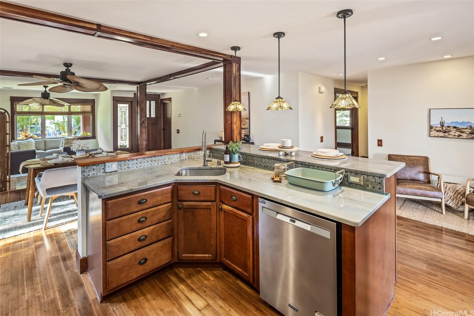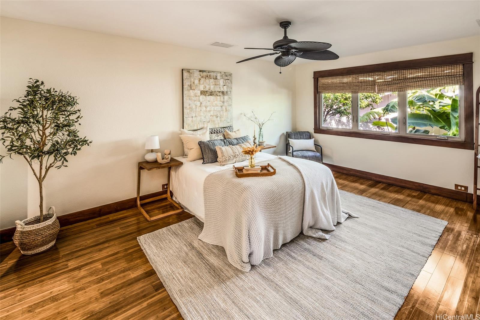 カラマバレーで最も便利な立地にひっそりと佇む、この丁寧に改修された平屋住宅は、近隣でも最も特徴的な物件の一つです。熱帯の花々や実りの豊かな果樹が植えられた手入れの行き届いた庭、石畳のハードスケープを施したプール、プールサイドのラナイガゼボ、耐久性とスタイルを兼ね備えた洗練された金属シーム屋根を備えています。 室内には竹フローリング、丁寧に改装されたキッチンとバスルーム、杉板張りのクローゼット、特注のコア材モールディングが施され、全室を冷却する2025年製ボッシュ製セントラルエアコンシステムは、所有する太陽光発電システムとバッテリーバックアップで稼働します。 プライバシーフェンス、物置小屋、そして珍しい造り付けの屋根裏収納が、快適さと個性、そして東オアフのライフスタイルを完璧に融合させた、美しくアップグレードされたこの住まいを完成させています。 .