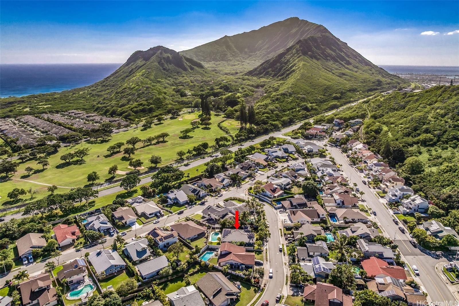 Tucked in one of Kalama Valley’s most convenient locations, this thoughtfully renovated, single-level home offers one of the most distinctive properties in the neighborhood; featuring a curated yard filled with tropical flowers and mature fruit trees, a swimming pool with flagstone hardscaping, a poolside lanai + gazebo, sleek metal seam roofing for added durability and style. Inside, enjoy bamboo flooring, thoughtfully renovated kitchen and baths, cedar paneled closets, custom Koa wood moldings, and every room cooled by a NEW (2025) BOSCH central AC system powered by owned PV solar with battery backup. Privacy fencing, storage shed, and rare built-in attic storage complete this beautifully upgraded home that perfectly blends comfort, character, and East Oahu lifestyle.
