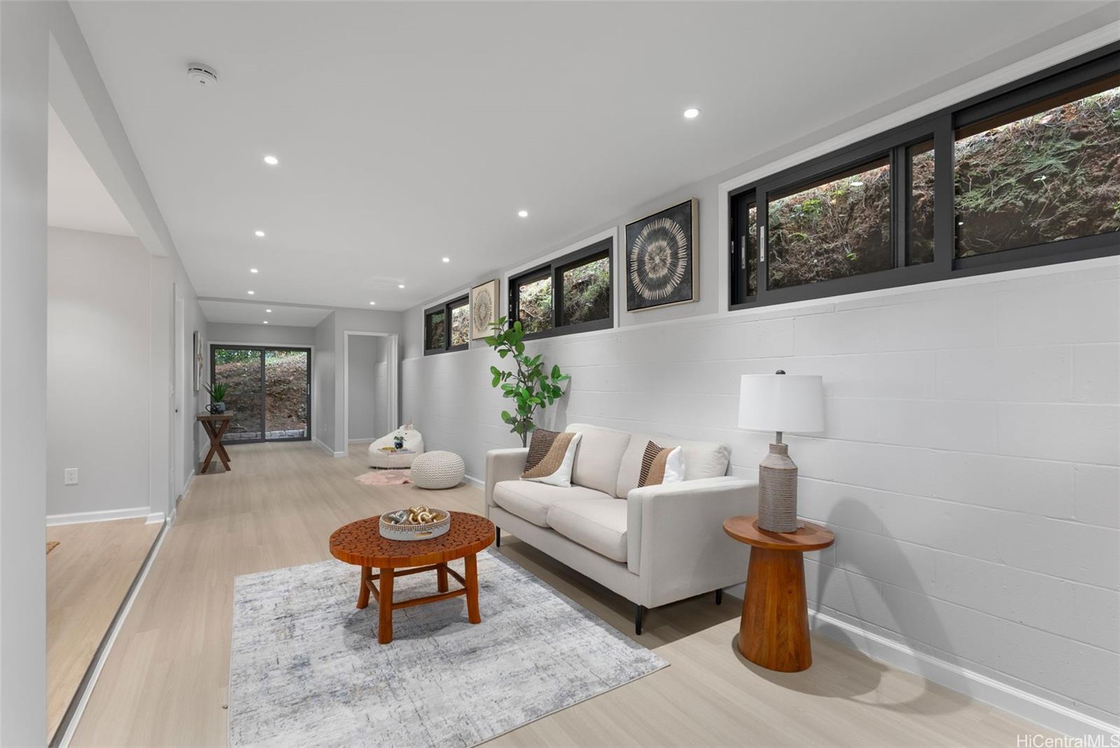 マウナウィリの高級住宅街に位置するこの美しく改装された住宅は、息をのむほど静かな山々の麓に佇み、その立地が穏やかでくつろげる環境を提供しています。 この住宅には、車庫付きガレージと2階建ての居住スペースが備わっており、各階には周囲を囲むデッキが設けられています(約 2階部分570平方フィート(約53平方メートル)、最上階部分約1000平方フィート(約93平方メートル)と広々としており、家族や友人をもてなすのに最適です。 細部へのこだわりが随所に感じられ、きっと気に入っていただけるでしょう。 メインフロアはオープンコンセプト設計で、カフェブランドの家電を備えた広いオープンキッチン、ウォークインパントリー、フルバスルーム、そしてエンターテイメントや眺望を楽しむのに最適な明るく広々としたリビングルームを備えています。 上階には4つの寝室と2つのバスルームがあります。 主寝室にはウォークインクローゼット、スパのようなバスルーム(深型バスタブと独立したシャワー付き)、壁掛け式電気暖炉、ワイン冷蔵庫が備わっています。 帰宅したら、デッキに設置されたジャグジーとバーベキューグリルをお楽しみください。 マウナウィリは、パリ・ハイウェイ、H-3高速道路、ダウンタウン、ショッピングセンター、そしてビーチからほんの少しの距離にあります。 .