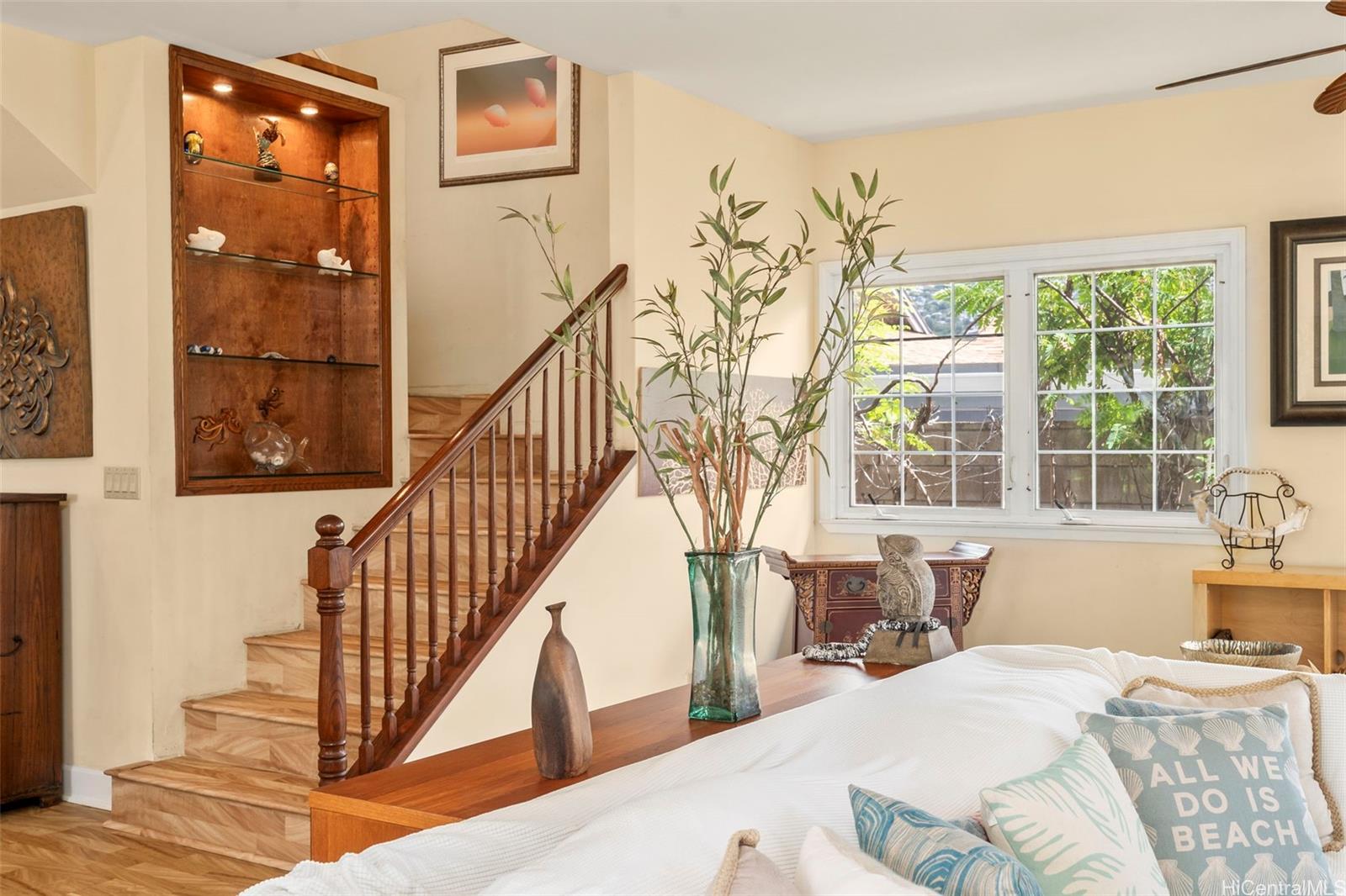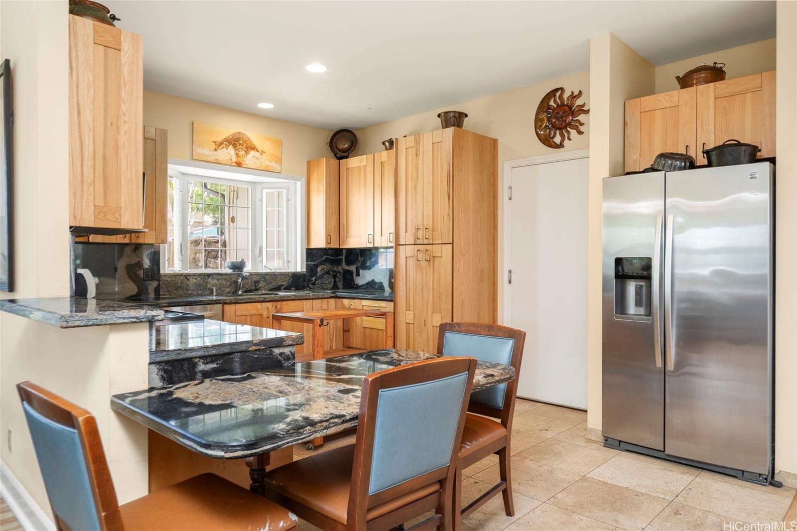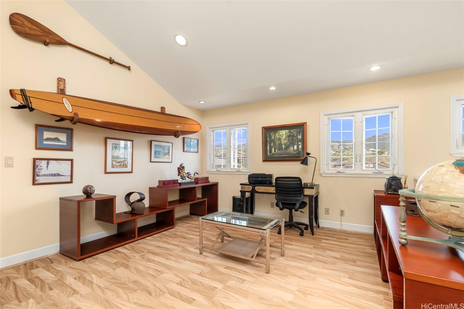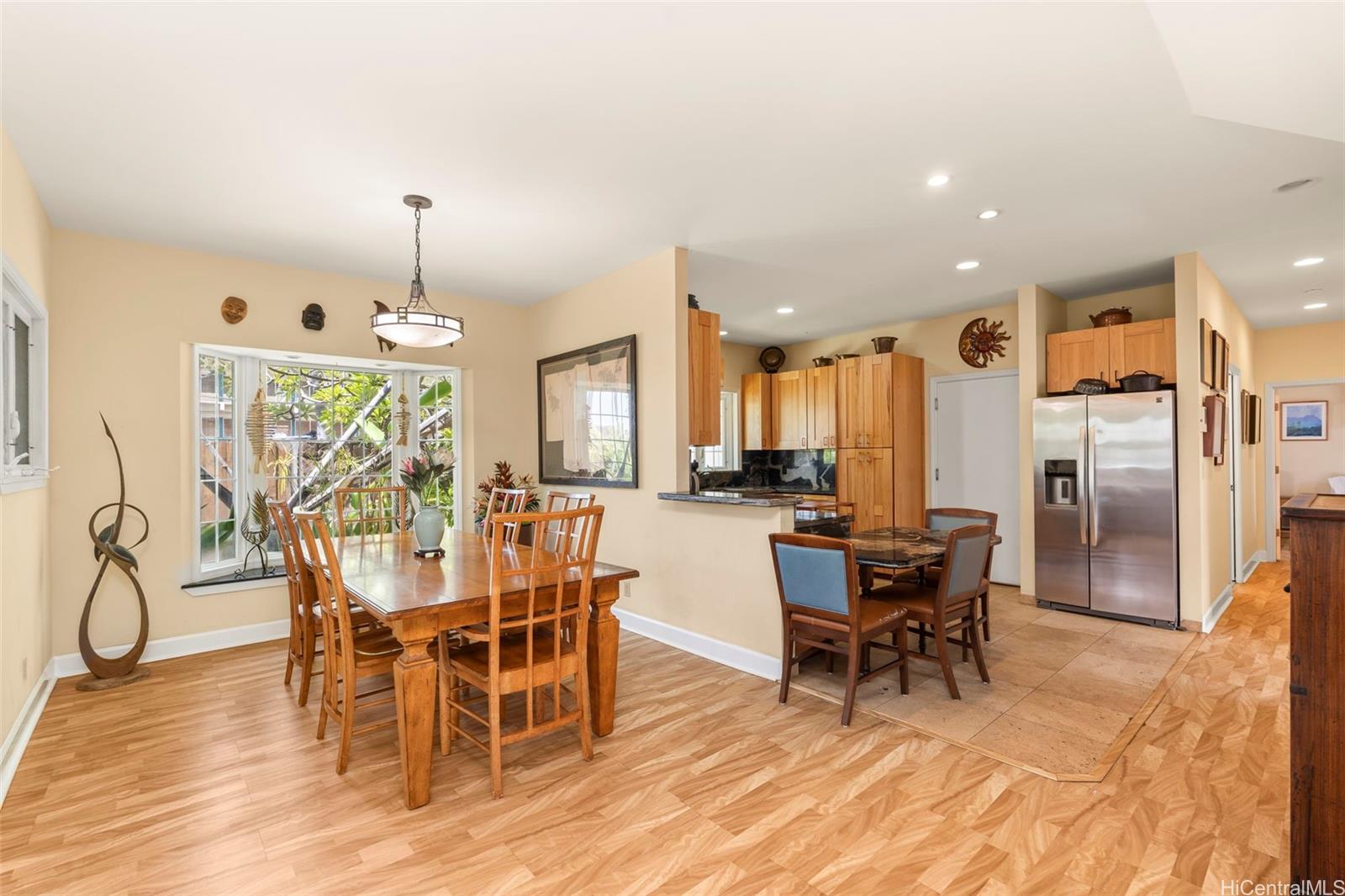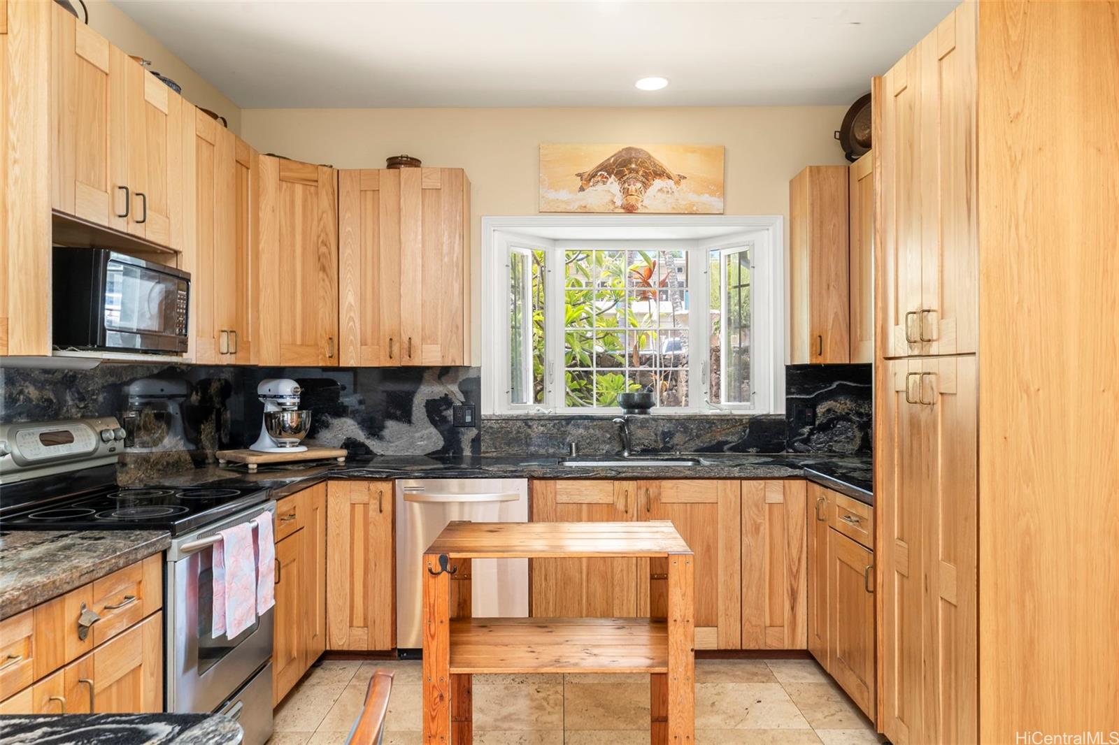 Big price improvement! Fall in love with this architecturally-designed 4 bdrm., 4.5 bath home on a highly desirable corner lot in Waialae-Kahala. Features: Granite Counter-Tops, Travertine Marble Floors, Vaulted Ceilings, Gourmet Kitchen with High-End Appliances and Custom-Made Pecan Cabinetry, a Private Den (which may be converted into another bedroom), a Studio with its own Private Entrance, A/C and French Windows throughout that bring in Natural Light and allow for great Air Flow throughout. Large 2-Car Garage with lots of storage, 4 Lanai Areas and a Lava-Rock-Enclosed Garden Oasis! Must view to really appreciate this property and the cool Ko’olau Mountain breezes, stunning Mountain-to-Ocean Views, quiet neighborhood, Petrie Park right across the street and the convenient proximity to Kaimuki and Kahala with all the shops and restaurants they have to offer! Close to KCC, Chaminade University and the University of Hawaii. This well-thought-out home has lots of opportunity for rental income potential. The upscale neighborhood has a lot to offer!