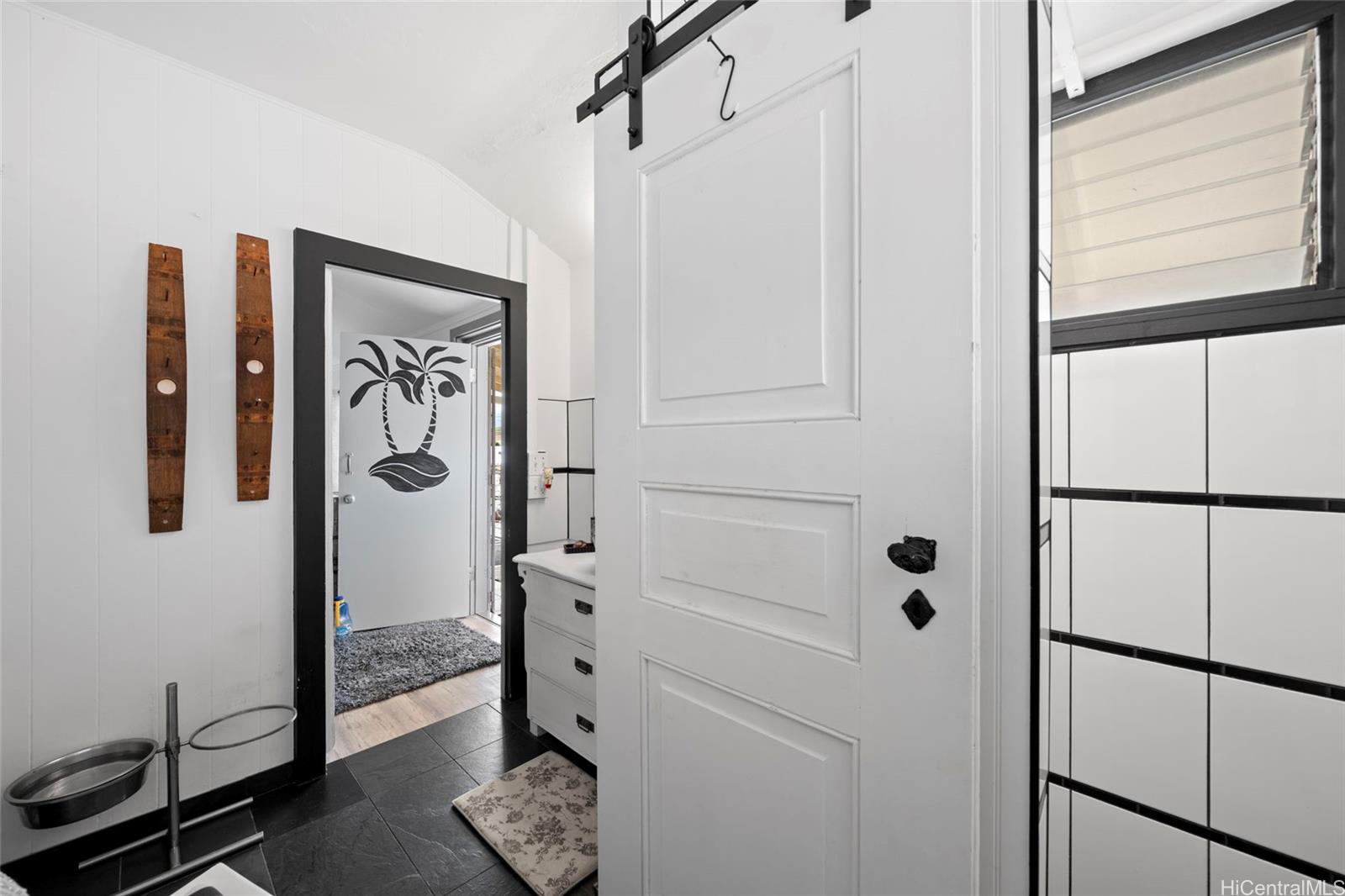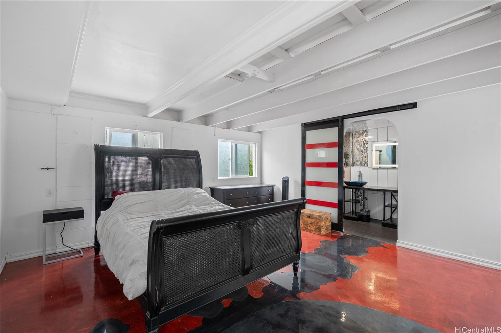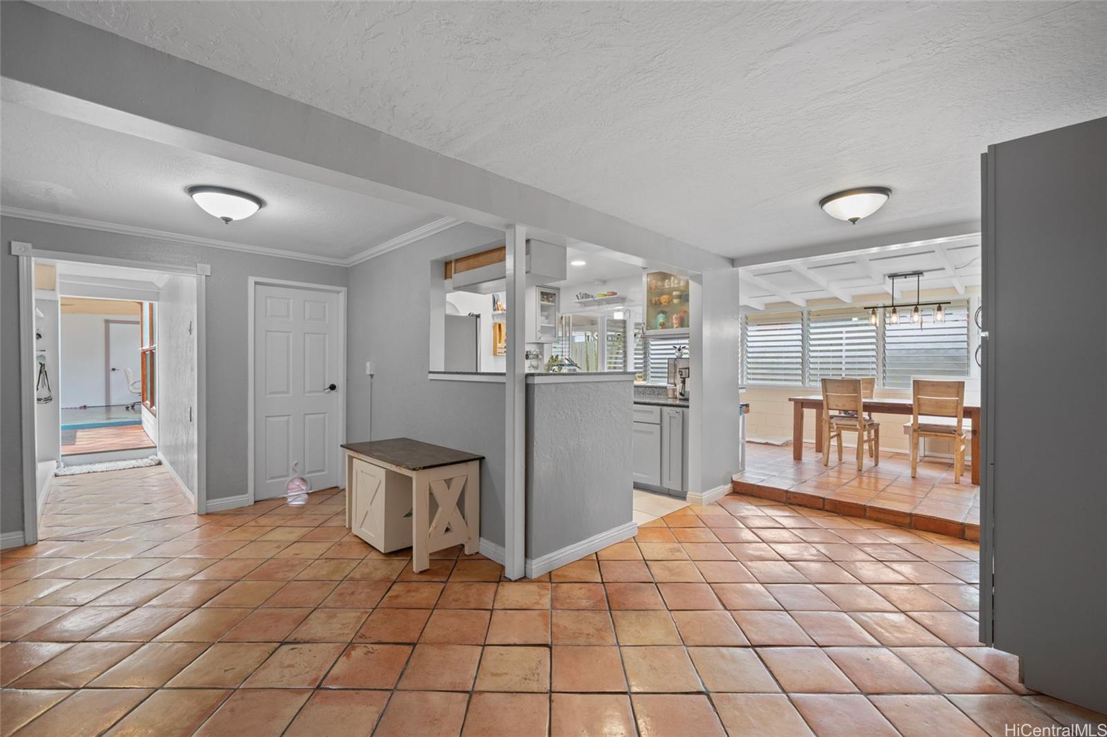 First OPEN HOUSE this Sunday, January 11th from 1-4 pm! Welcome to this unique Kalama Tract home located less than two blocks from the beach and minutes from Kailua Town. This vibrant property features a distinctive floor plan, bold colors, and artistic design elements, offering a rare opportunity for buyers seeking a home with character and creative flair. The flexible layout allows for customization and inspired living. The main level includes three bedrooms, two bathrooms, a dedicated office/den/family room, and a separate laundry room with a Smart UltraFast electric washer/dryer combo with ventless heat pump technology. An upstairs one-bedroom, one-bath unit with kitchenette provides flexibility for guests or extended family. Outdoor features include a pool and a jacuzzi. Energy-efficient upgrades include nine PV panels with Tesla Powerwall, ABS solar pool heating, tankless hot water for the primary suite, propane hot water for the main house, and a 220V EV charging service. This beach-close home offers an optional membership to Kalama Beach Club (potential eligibility), character, flexibility, and a truly special Kailua lifestyle.