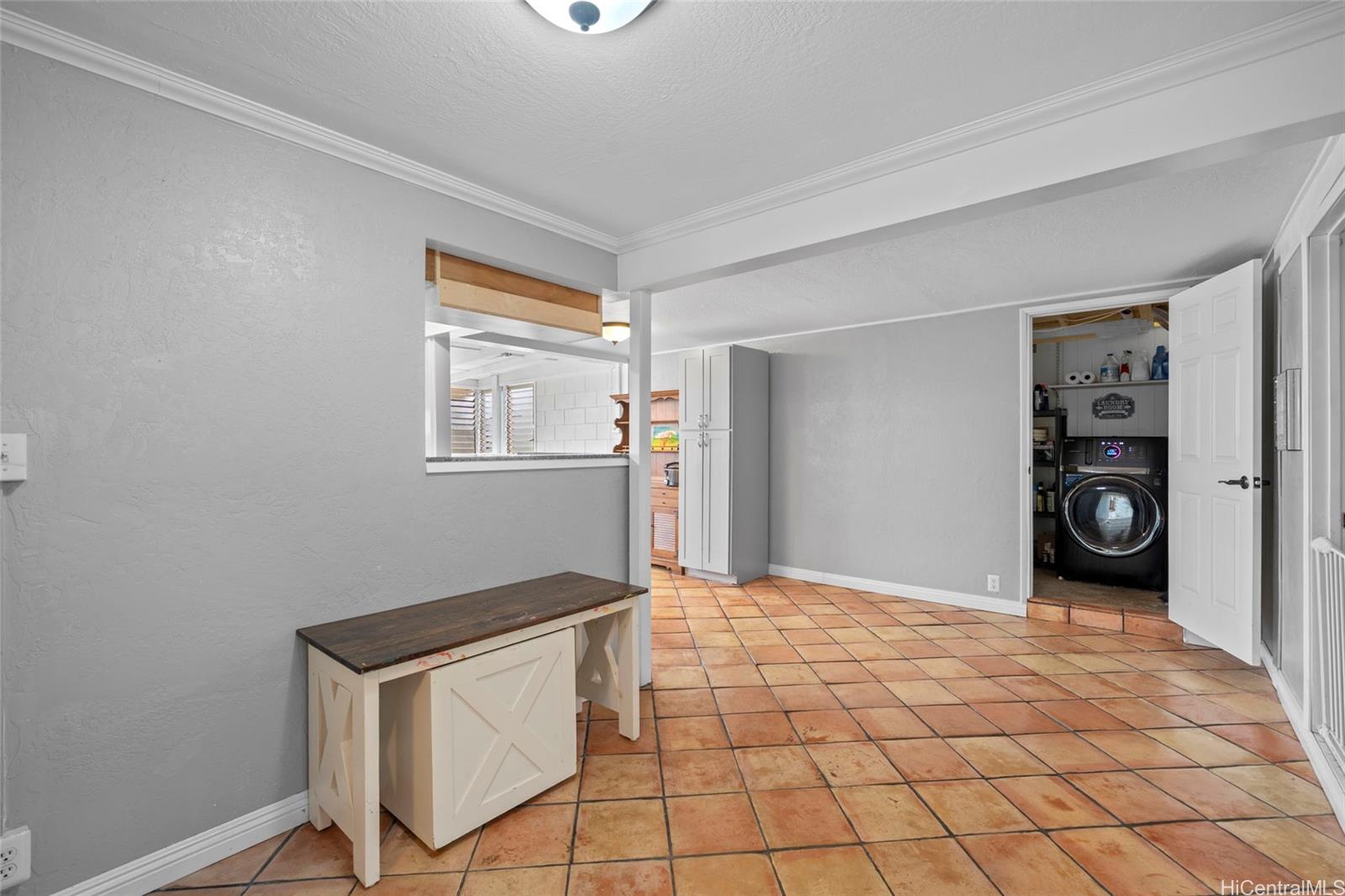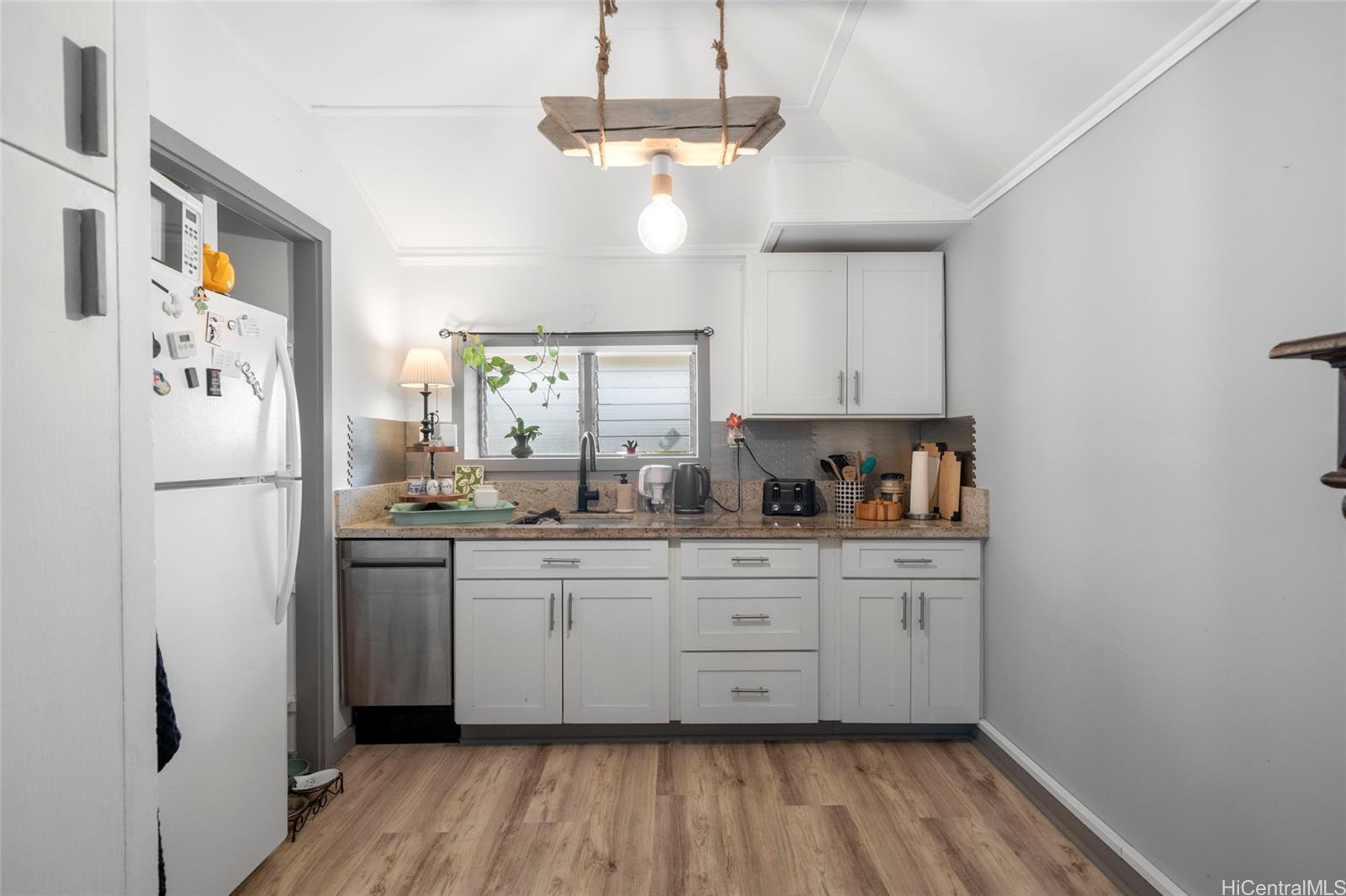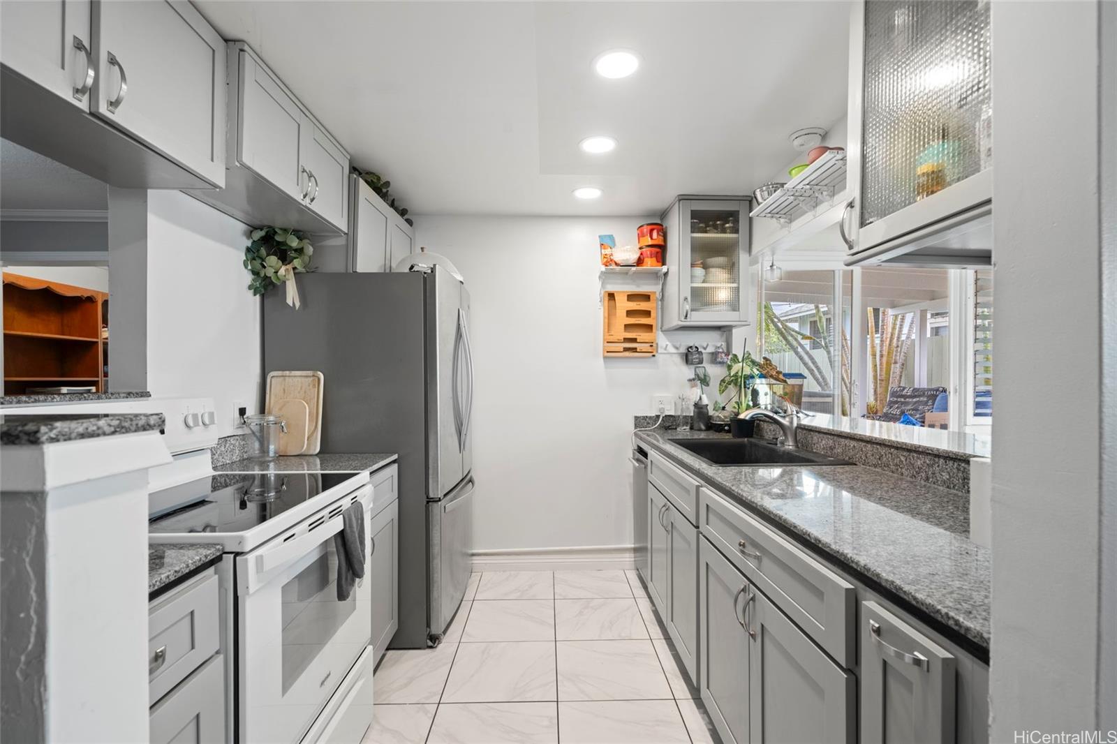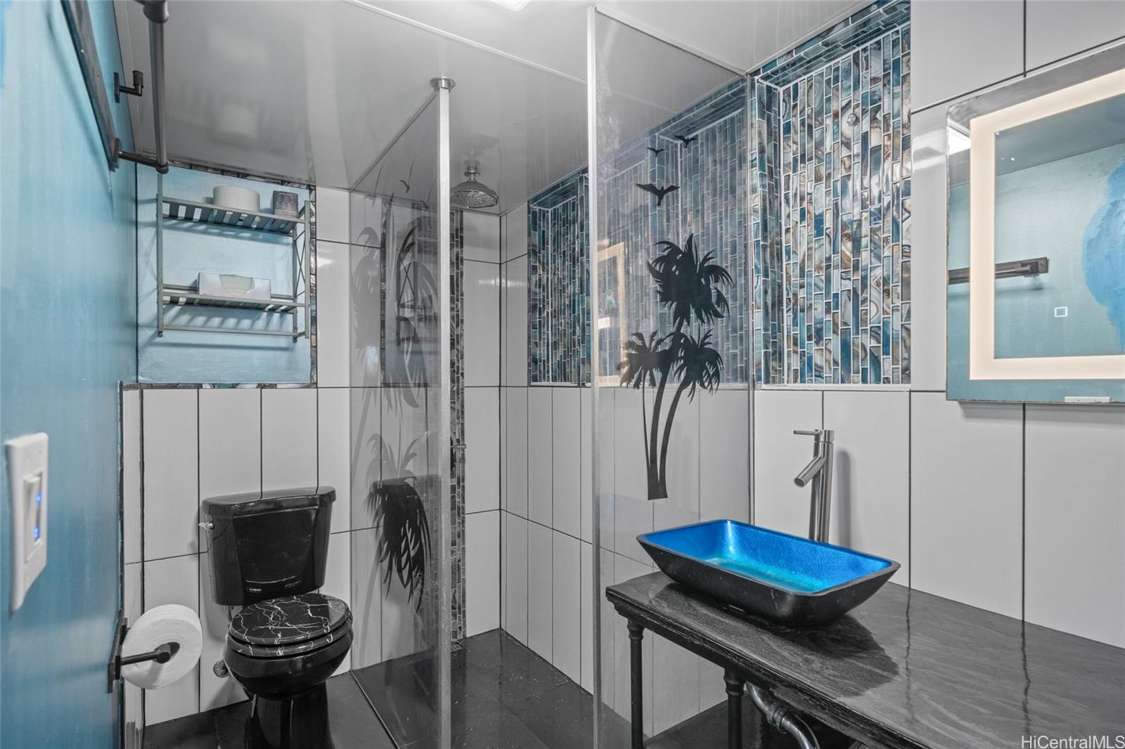 First OPEN HOUSE this Sunday, January 11th from 1-4 pm! Welcome to this unique Kalama Tract home located less than two blocks from the beach and minutes from Kailua Town. This vibrant property features a distinctive floor plan, bold colors, and artistic design elements, offering a rare opportunity for buyers seeking a home with character and creative flair. The flexible layout allows for customization and inspired living. The main level includes three bedrooms, two bathrooms, a dedicated office/den/family room, and a separate laundry room with a Smart UltraFast electric washer/dryer combo with ventless heat pump technology. An upstairs one-bedroom, one-bath unit with kitchenette provides flexibility for guests or extended family. Outdoor features include a pool and a jacuzzi. Energy-efficient upgrades include nine PV panels with Tesla Powerwall, ABS solar pool heating, tankless hot water for the primary suite, propane hot water for the main house, and a 220V EV charging service. This beach-close home offers an optional membership to Kalama Beach Club (potential eligibility), character, flexibility, and a truly special Kailua lifestyle.