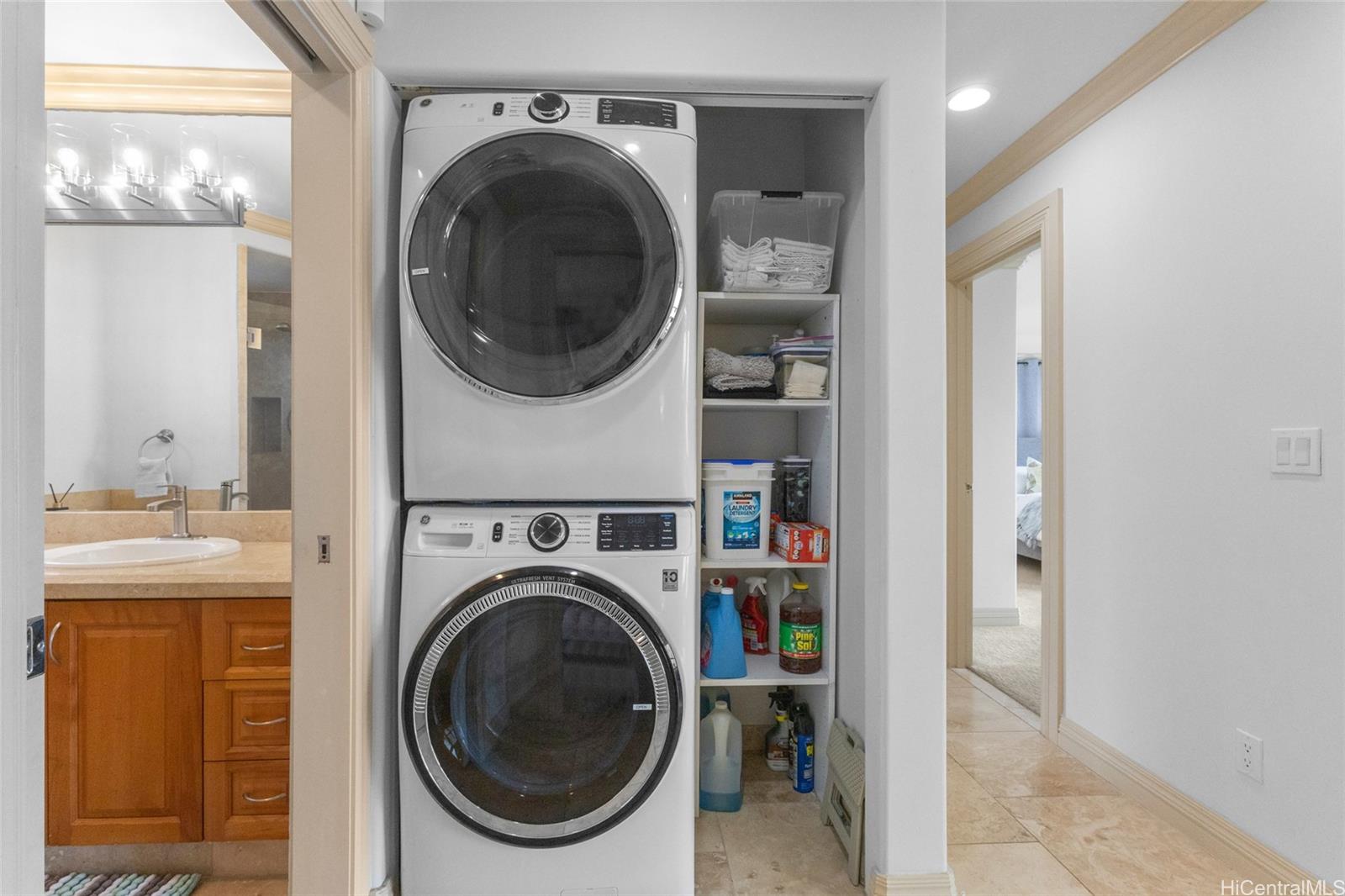 地上階の2ベッドルーム、2バスルームのエンドユニットコンドミニアム。 屋根付きのエントリーラナイから一歩足を踏み入れると、オープンコンセプトのリビングルームとキッチンがある。 キッチンの先には、ウォークインクローゼット、洗面台、ウ ...