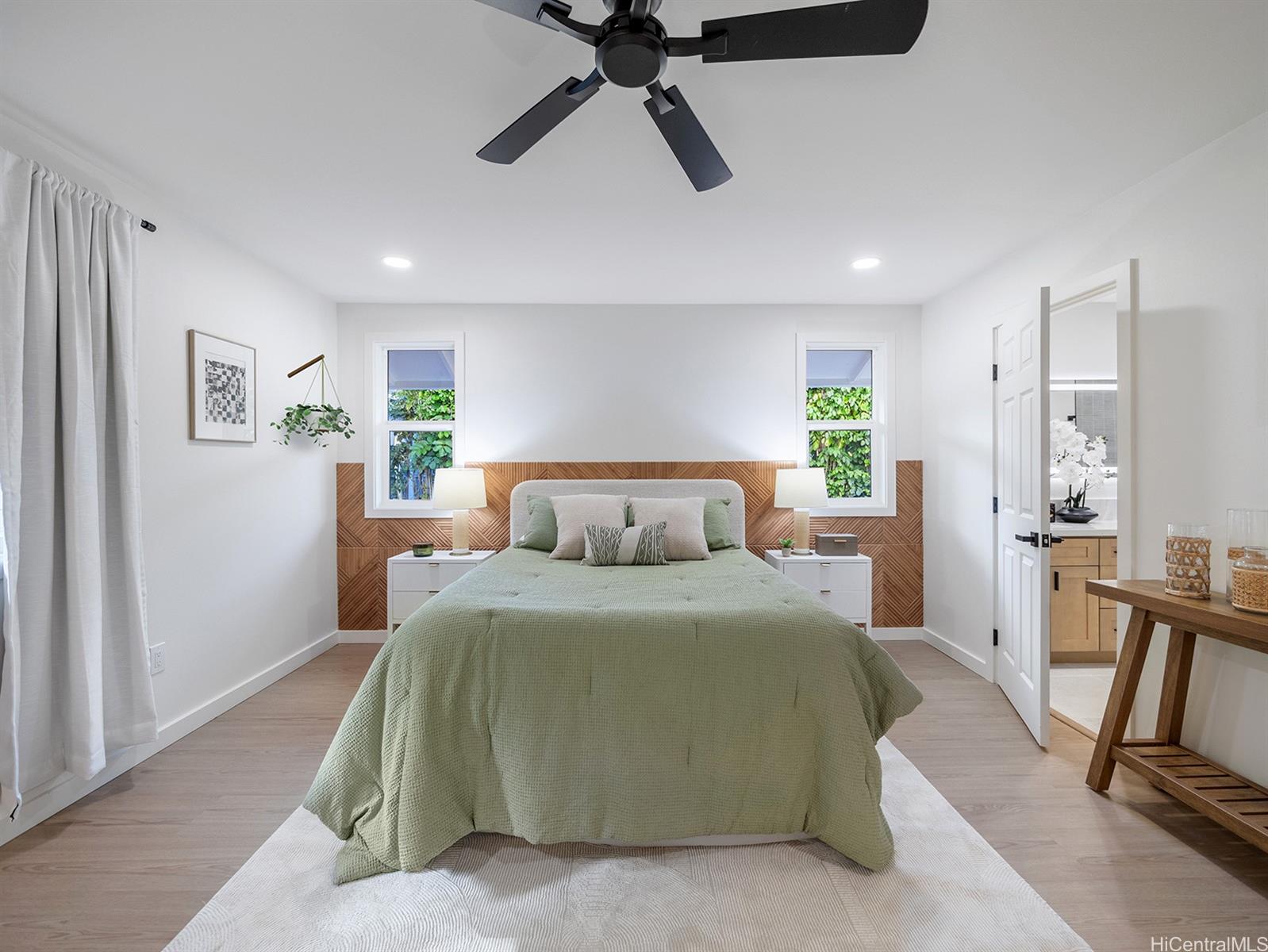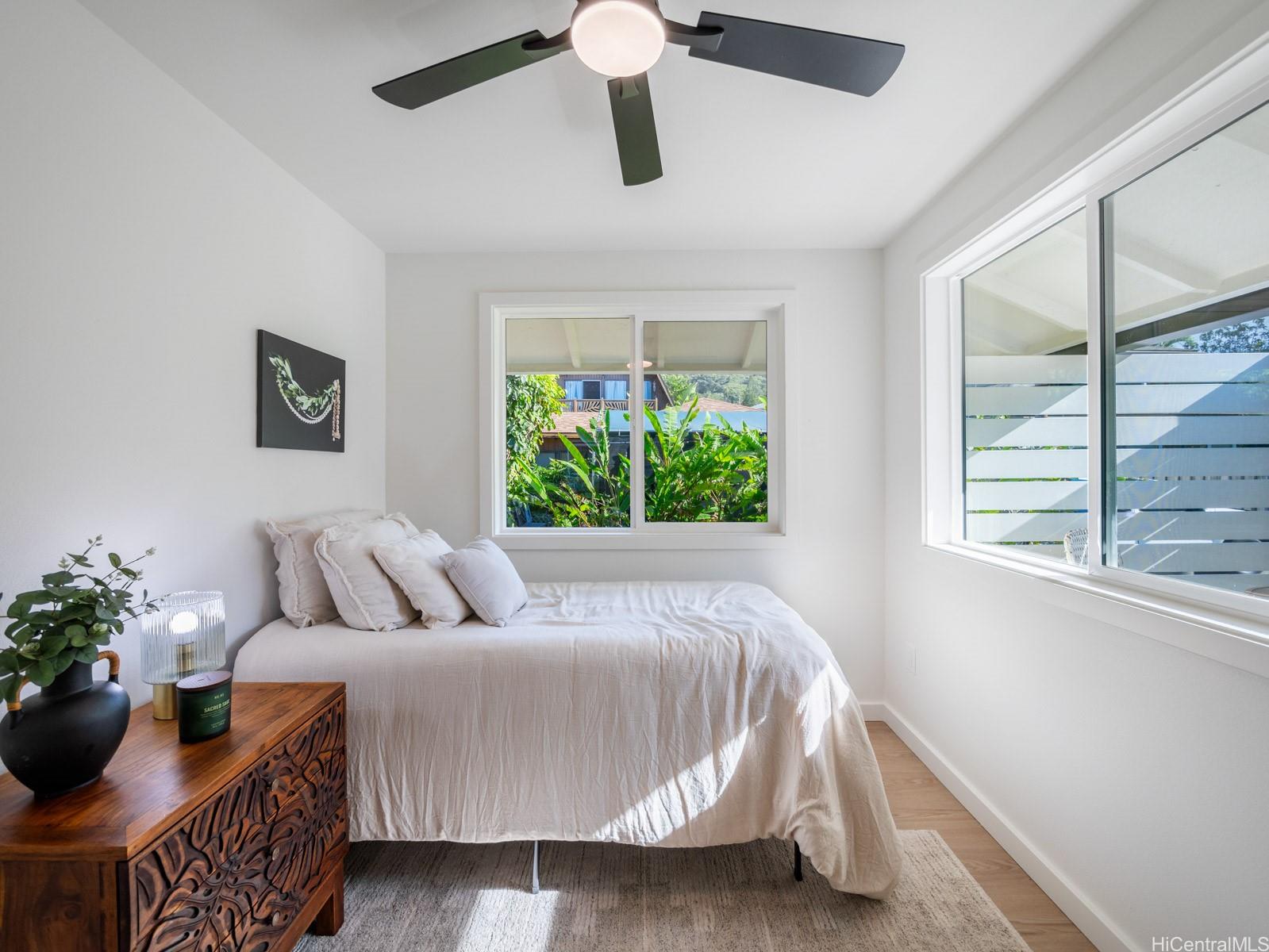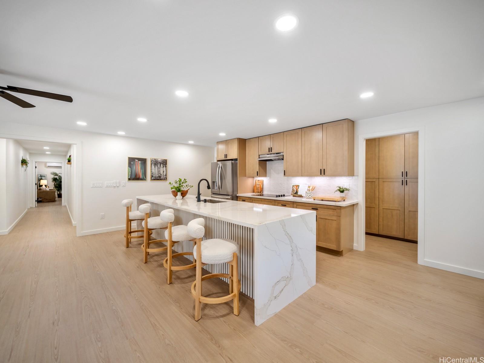 モダンな島暮らしのために考え抜かれ、全面改装されたこのハレイワの邸宅は、広々とした敷地に、上質な空間と卓越した多用途性を備えています。 2025年に竣工した本邸は、広々とした室内に幅広の板張りのフローリング、埋め込み式の照明、スプリット式のエアコンが特徴で、屋内と屋外のシームレスな暮らしを実現する広々としたラナイと庭にアクセスできる。 石英のカウンター、滝のようなアイランド、特注のライトウッドのキャビネットを備えたシェフズ・キッチンは、まさに中心的存在だ。 特筆すべきは、専用の調理スペースとダブルオーブンを備えた、めったに見られないバトラーズ・パントリーだ。 プライマリースイートを含む2つのベッドルームにはバスルームがある。 プライマリー・リトリートには、ウォークイン・クローゼット、ダブル洗面台とウォークイン・シャワーを備えたスパ・スタイルのバスルームがある。 付属の1ベッドルームユニットは、フルキッチン、バスルーム、ランドリー、プライベートラナイを完備しており、賃貸収入や親戚、ゲスト用に最適です。 車4台が駐車できる広大な敷地に建つこの家は、暮らしやすく、おもてなしができ、多世代がフレキシブルに暮らせるように設計されている。 日常生活と長期的な価値が融合する場所への招待状。 .