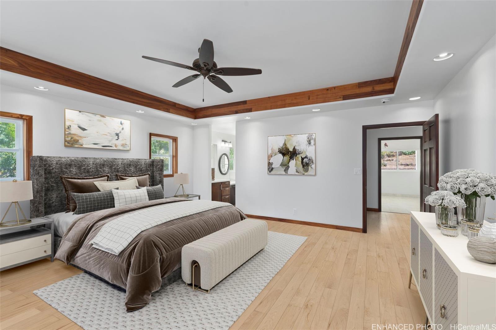 マウナオル・エステートへようこそ!24時間セキュリティのゲーテッドコミュニティに位置し、3ベッドルーム、2バスルーム、スタジオ、フルバスルームを備えた美しい平屋建てで、屋内外のアイランドリビングをご体験ください。 巨大なアイランドキッチン、特注のキャビネット、高品質の電化製品に支えられた広々としたオープンコンセプトのリビングエリアでは、高い天井と巨大なスライドドアが山と海の景色を縁取っている。 リビングルームと広々としたプライマリースイートは、どちらもラップアラウンド・ラナイに面しており、リラックスしたり、おもてなしをしたりするのに最適です。 プライマリースイートには、特注のコア材のクローゼット、2台の洗面台、ジェットバス、ウォークインシャワーがある。 メインの家の下には広大な未完成エリアがあり、レクリエーションや集会、将来の拡張の可能性がある。 24枚の太陽光発電パネル、2台分のカーポート、車やボートを積める広い私道があり、持続可能な暮らしを楽しめる。 多肉植物や手入れが簡単な植物を植えた段々畑が、このプライベートな丘の中腹にオアシスを作り出している。 .