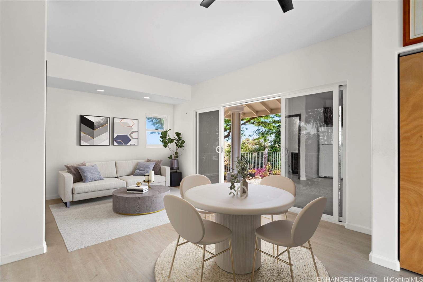 地上階の2ベッドルーム、2バスルームのエンドユニットコンドミニアム。 屋根付きのエントリーラナイから一歩足を踏み入れると、オープンコンセプトのリビングルームとキッチンがある。 キッ ...