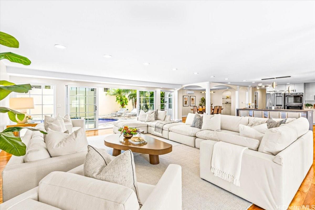 Located in the prestigious Kahala, this exceptional residence offers refined island living in one of Oahu’s most sought-after enclaves.This beautifully appointed single-level home features four spacious bedrooms and three full bathrooms, thoughtfully designed to create a seamless indoor-outdoor lifestyle. The open-concept floor plan is filled with natural light and flows effortlessly through expansive living and dining areas—ideal for both relaxed living and sophisticated entertaining. At the heart of the home, the modern kitchen showcasing a generous island, premium stainless steel appliances, and elegant finishes that blend style with functionality. A comprehensive 2023 renovation introduced refined details throughout, including engineered wood flooring, as well as exquisite travertine and luxury Italian tile in the bathrooms and laundry room. A new roof, also completed in 2023, adds both value and peace of mind. Outside, a private saltwater pool invites moments of tranquillity and leisure. This gorgeous home showcases its upscale character and livability. Offers an unparalleled opportunity to experience the comfort and prestige of Kahala living.