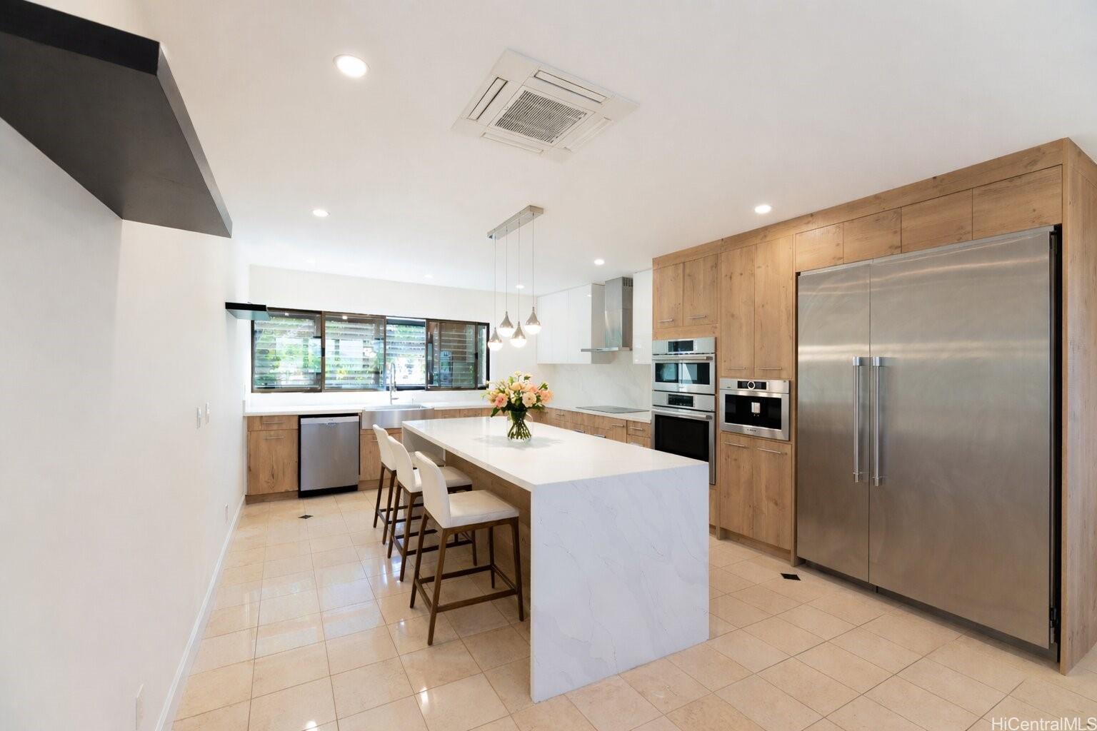 This beautifully remodeled single-family home offers stunning ocean views and is designed for both comfort and entertaining. Featuring 4 bedrooms and 4.5 bathrooms, the spacious layout includes an expansive living room and a large, updated kitchen that is perfect for gatherings. Enjoy beautiful sweeping views of the ocean from the living room and bedrooms. Recent upgrades include new flooring, fresh interior paint, and various modern improvements throughout. Enjoy outdoor living with a private pool and ample space to host guests. Conveniently located near Kahala Mall, Waialae Country Club, the beach and more! There are many fruit trees including but not limited to: fig, lemon, white dragon fruit, soursop, guava and more! Two brand new (installed 2025) Tesla charging battery / charging station is included. The house also has 43 owned solar panels. No showings until after first open house 4/26. Property details does not match tax records. Buyer to verify and to conduct their own due diligence.