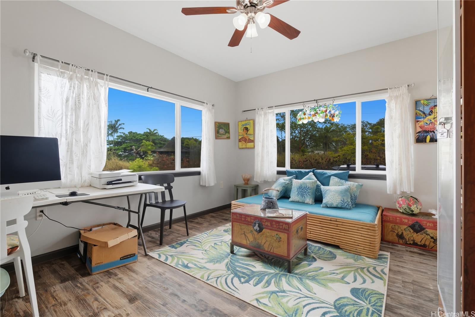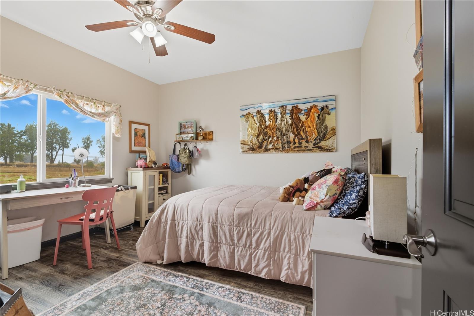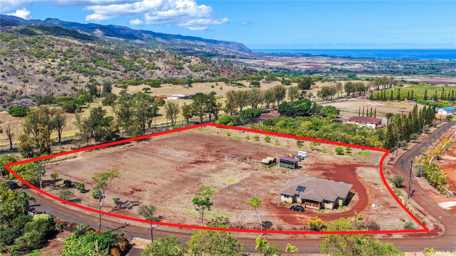 モダン・カントリー・リトリート – ポアモホ・エステートのプライベート・コミュニティにある5エーカーの一等地の農地に建つ、2021年建築の4ベッドルームオフィス、3バスルームの邸宅からは、海と山が一望できる。 島暮らしと田舎暮らしの両方を楽しめるように設計されたオープンコンセプトのレイアウトは、埋め込み式の天井、広々とした窓、2つの屋根付きラナイへのシームレスな屋内外の動線が特徴で、おもてなしや夕暮れ時のくつろぎに最適です。 シェフズ・キッチン、風通しの良いリビング・スペース、2つのエンスウィート・ベッドルーム、ウォークイン・シャワー、ウォークイン・クローゼット、屋根付きラナイに通じるダブルドアなど、随所に質の高い職人技が光ります。 プライマリー・スイートはデュアル・シンクを備え、さらに豪華な雰囲気を醸し出している。 なだらかな緑の丘とトロピカルな造園に囲まれたこの新しい家は、プライバシー、セキュリティ、快適さ、利便性を提供し、ハレイワのショップ、サーフブレイク、ノースショアのビーチからわずか数分です。 ポアモホ・エステートは、オアフ島最後のプライベート・コミュニティのひとつで、広大な敷地、のどかな田園風景、街への通勤に便利なフリーウェイへの素早いアクセスが魅力です。 馬を連れて来れば、納屋を建てることもできる。