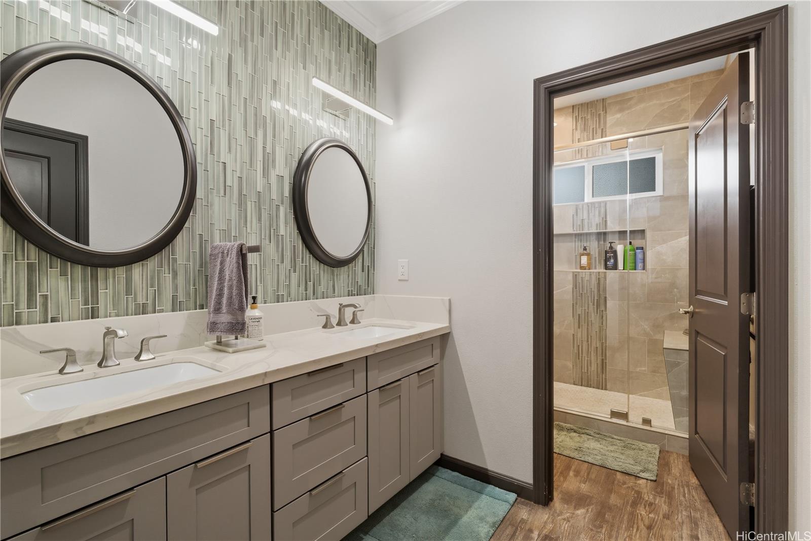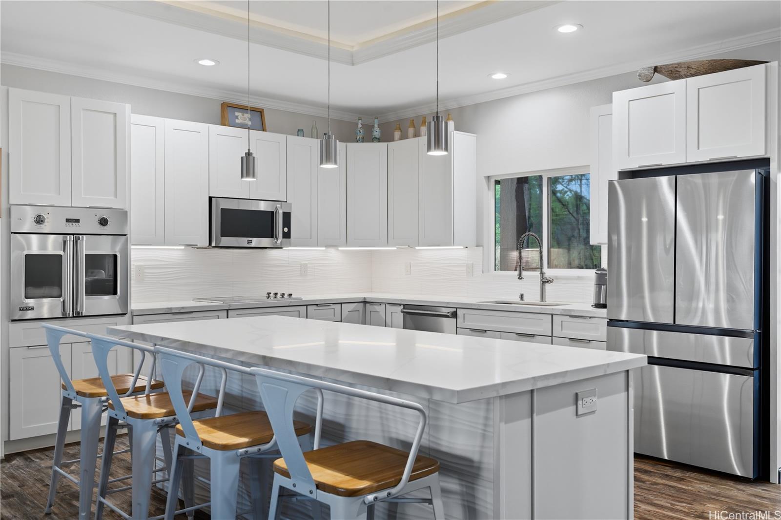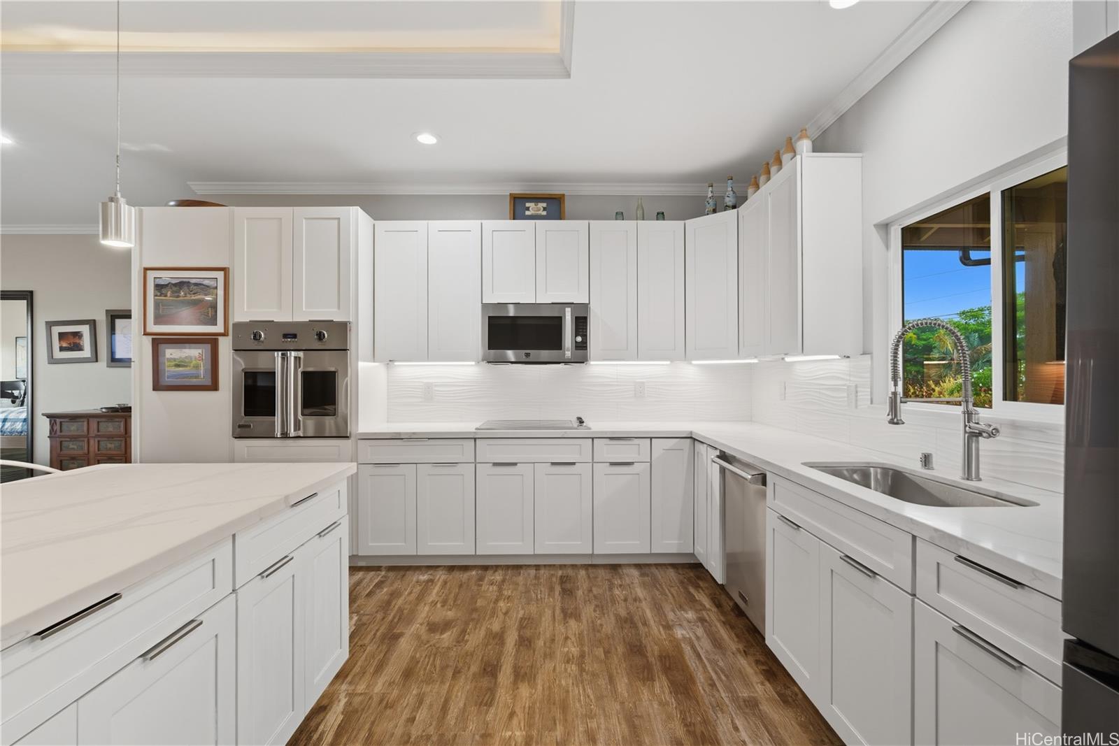 モダン・カントリー・リトリート – ポアモホ・エステートのプライベート・コミュニティにある5エーカーの一等地の農地に建つ、2021年建築の4ベッドルームオフィス、3バスルームの邸宅からは、海と山が一望できる。 島暮らしと田舎暮らしの両方を楽しめるように設計されたオープンコンセプトのレイアウトは、埋め込み式の天井、広々とした窓、2つの屋根付きラナイへのシームレスな屋内外の動線が特徴で、おもてなしや夕暮れ時のくつろぎに最適です。 シェフズ・キッチン、風通しの良いリビング・スペース、2つのエンスウィート・ベッドルーム、ウォークイン・シャワー、ウォークイン・クローゼット、屋根付きラナイに通じるダブルドアなど、随所に質の高い職人技が光ります。 プライマリー・スイートはデュアル・シンクを備え、さらに豪華な雰囲気を醸し出している。 なだらかな緑の丘とトロピカルな造園に囲まれたこの新しい家は、プライバシー、セキュリティ、快適さ、利便性を提供し、ハレイワのショップ、サーフブレイク、ノースショアのビーチからわずか数分です。 ポアモホ・エステートは、オアフ島最後のプライベート・コミュニティのひとつで、広大な敷地、のどかな田園風景、街への通勤に便利なフリーウェイへの素早いアクセスが魅力です。 馬を連れて来れば、納屋を建てることもできる。