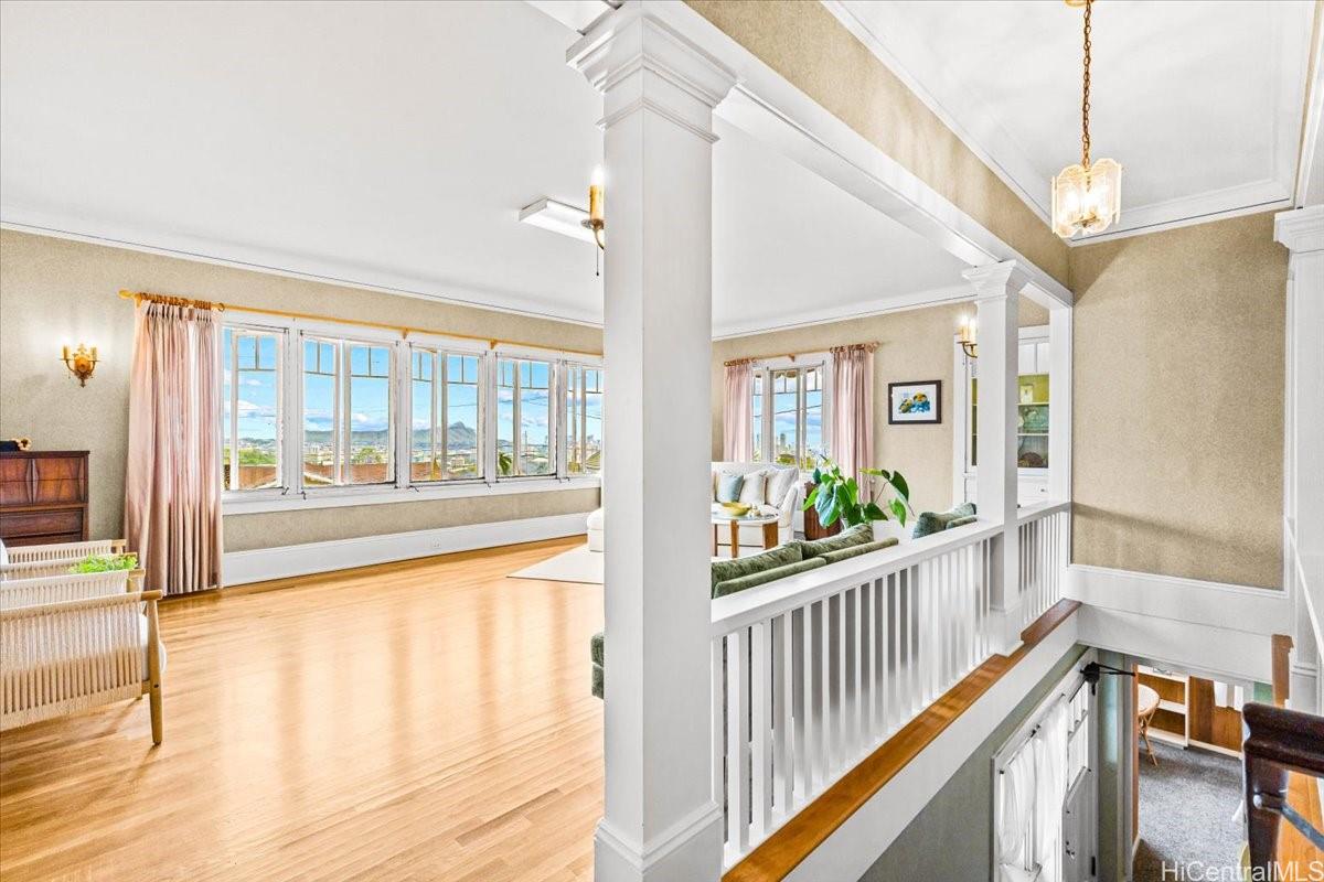 Step back in time and experience the enduring elegance of this Historic Registry residence. Nestled against lush valley greenery, this classic Manoa home showcases timeless architecture, expansive living spaces, and abundant natural light throughout. Original details, warm hardwood floors, and oversized picture windows create an inviting atmosphere that reflects the craftsmanship of a bygone era.Gracious living and dining areas flow seamlessly for both everyday living and refined entertaining, while multiple sitting areas and built-in features add depth and character. Enjoy stunning Diamond Head, city, and sunrise views alongside tranquil valley vistas. The flexible layout offers ideal spaces for work, relaxation, or hosting guests. Charming courtyards and garden settings are surrounded by Manoa’s signature tropical landscape—perfect for quiet mornings or evening gatherings. With its stately presence, storybook curb appeal, and coveted Manoa location, this is a rare opportunity to own a distinguished piece of Honolulu history.