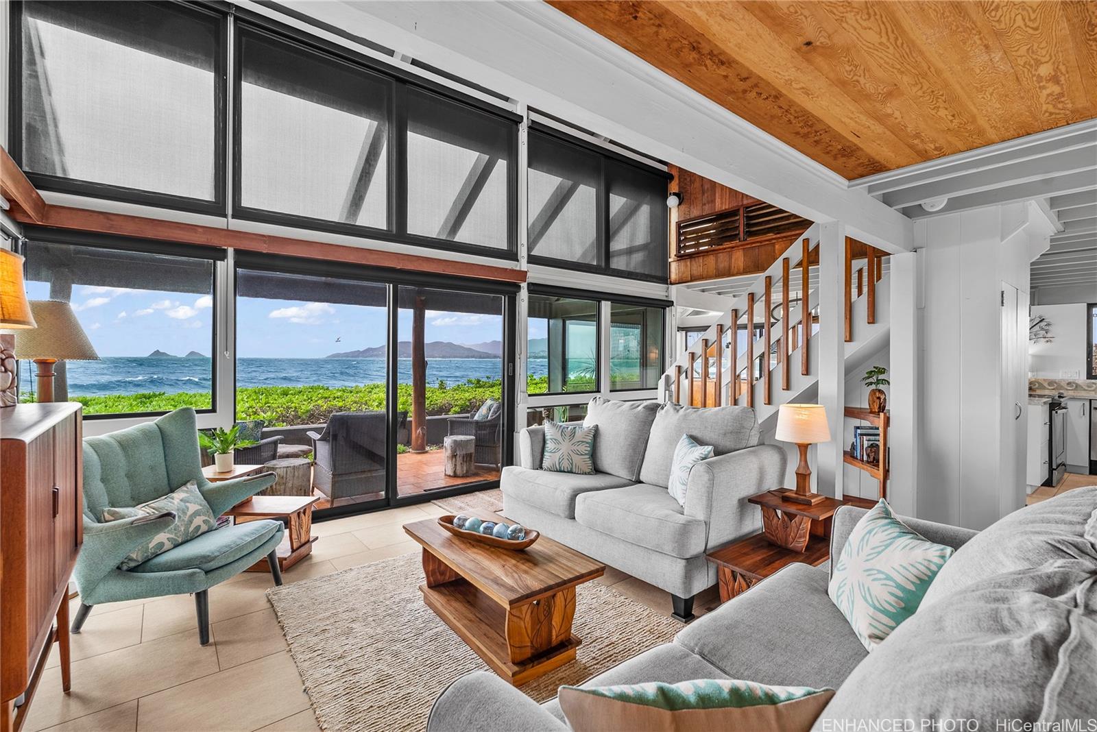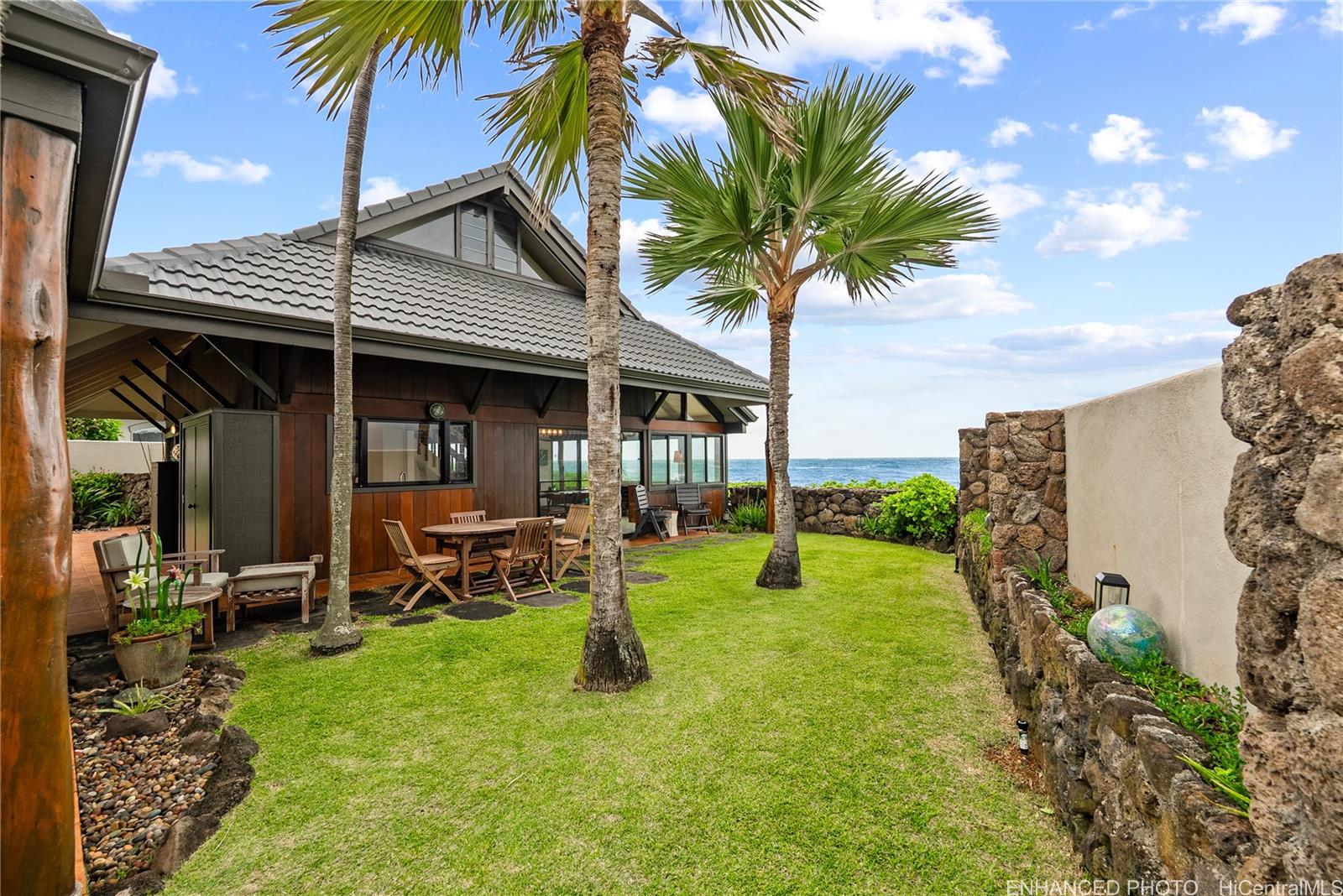 カイルアの高級住宅街カイマリノに位置する、めったに市場に出ないオーシャンフロントの逸品。カイルア湾からモクルア諸島、さらにモカプウ灯台まで広がる魅惑的な眺望を誇り、背景には雄大なコオラウ山脈がそびえる。 刻々と移り変わる海の景色、日の出や満月を眺めたり、ホエールウォッチングを楽しんだり、海岸線を散策したり、釣りに出かけたり!この絶好のロケーションにある住宅は1981年に注文建築され、一家族によって大切に維持されてきました。 間取りは2ベッドルーム/1バスルームで柔軟性があります。 5浴室のメインハウスと、屋根付き通路で繋がった独立した2ベッドルーム/1浴室の別棟——多世帯居住や来客用として最適です。 両方のリビングエリアからは魅惑的なオーシャンビューが広がり、心地よい芝生のサイドヤードと座り心地の良いスペースが設けられており、くつろぎやおもてなしに最適です。 物件は静かな袋小路に位置し、カヤックやスタンドアップパドルボードの乗り場としてタートルビーチへ近くからアクセスできます。 カイマリノ地区は地下に公共施設が整備されており、カイルアの町、カイルアのビーチ、高速道路、ショッピング施設、学校まで数分の距離にあります。 まさに唯一無二の島の秘宝、時代を超えた趣と魅力に満ちた隠れ家。 .