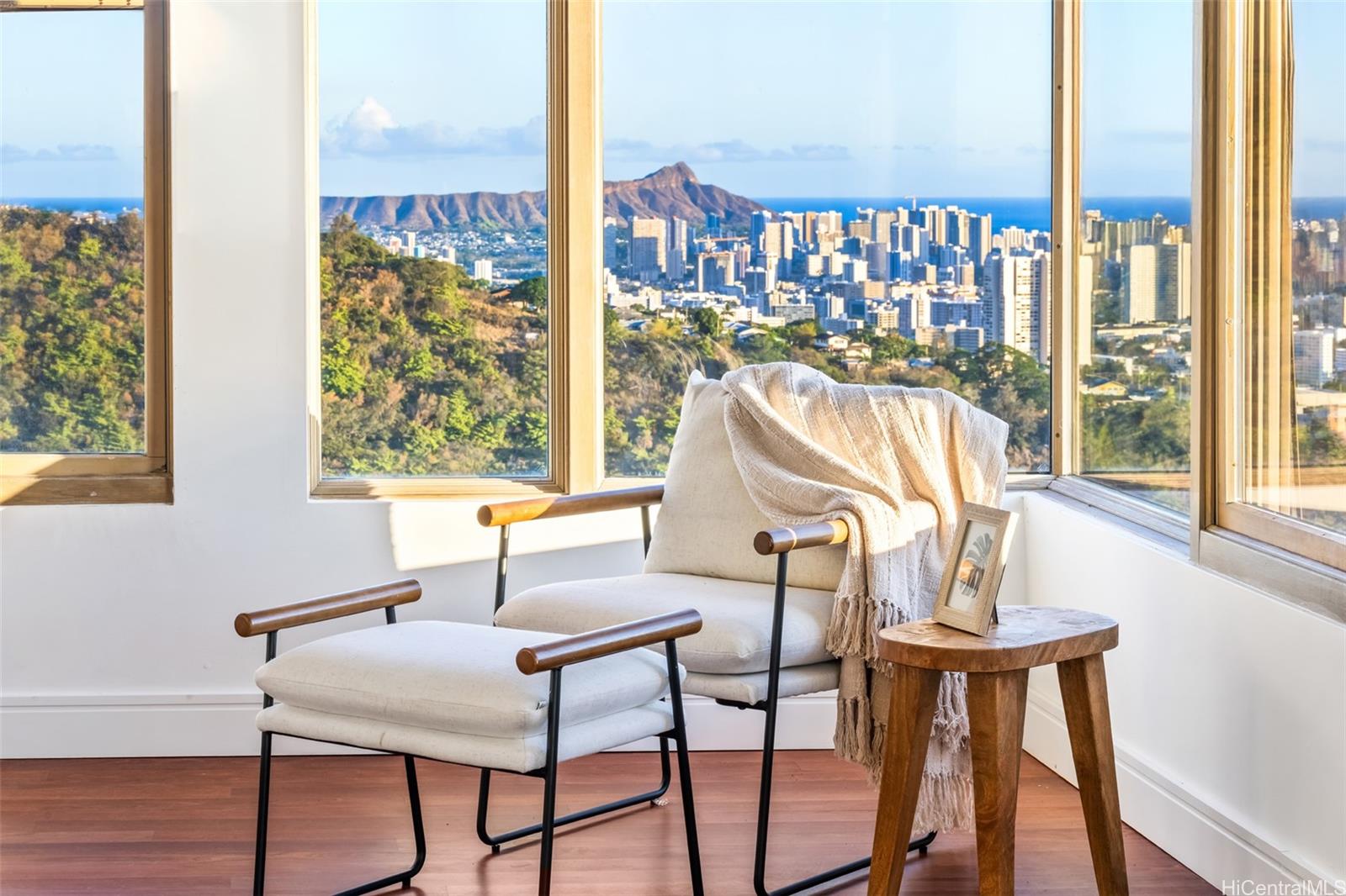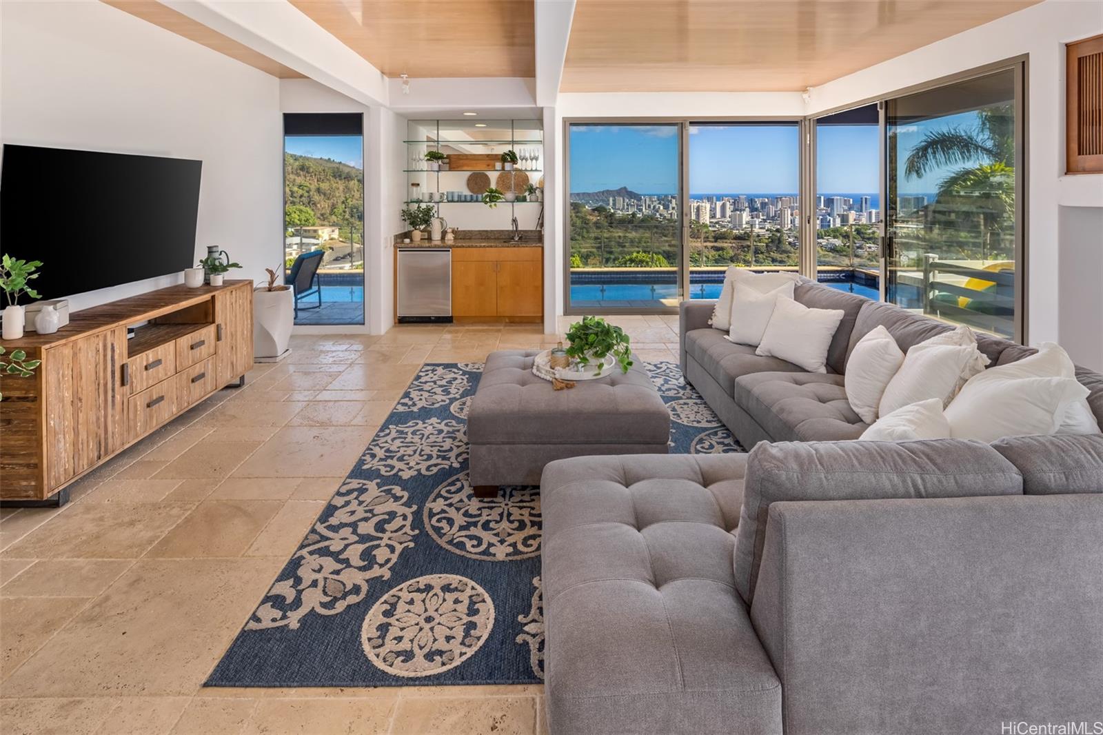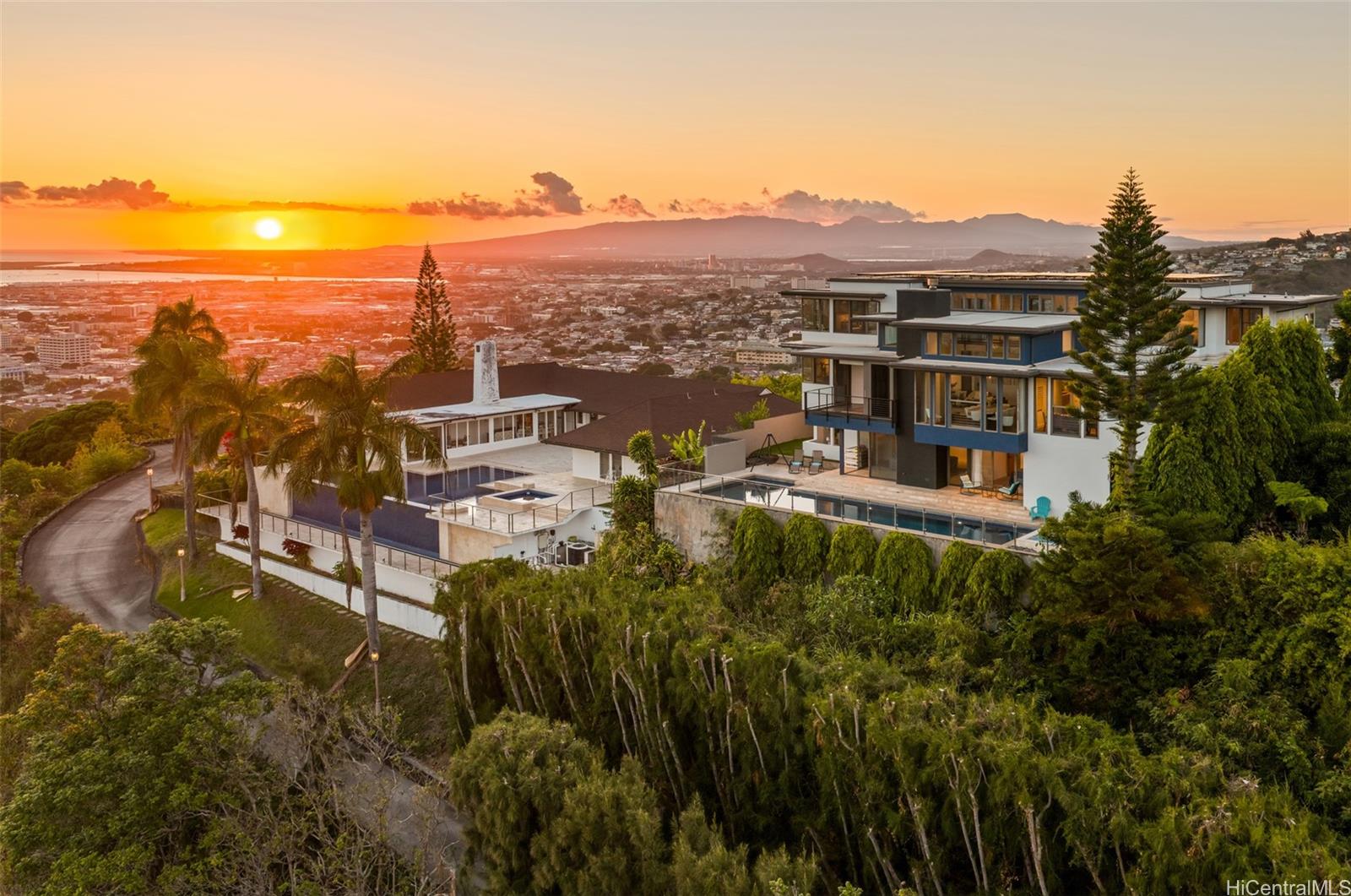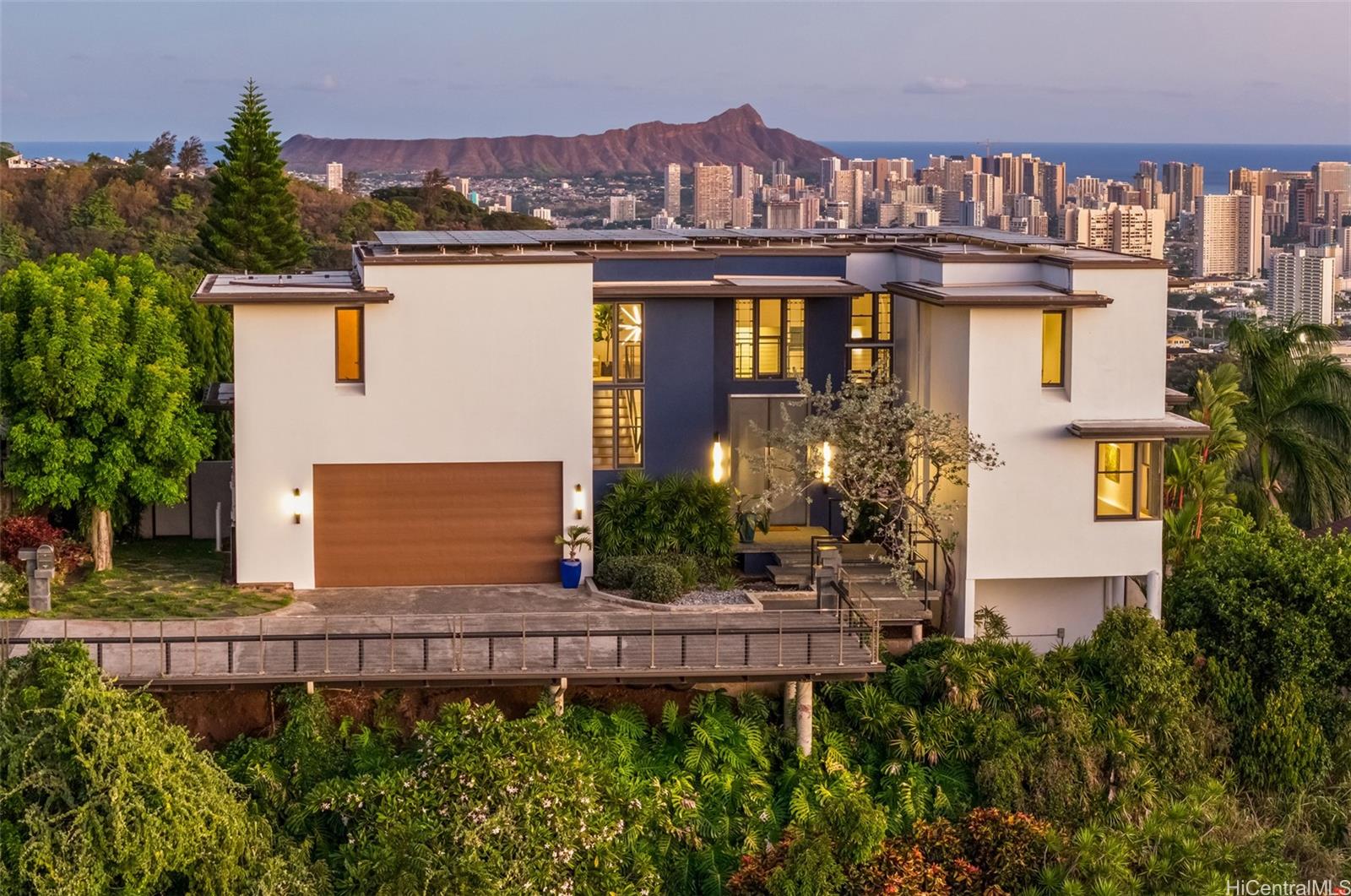 Contemporary Elegance! Welcome to this extraordinarily designed custom home by architect, Jim Schmit. The floor plan is masterfully designed toward the focal points of spectacular views from Diamond Head to Pearl Harbor to the Ko’olau Mountains. Monumental ten feet tall Bonded Bronze entry doors greet you and lead to the grand two-story living room. Stepping into the living room is an unexpected “WOW” experience at the sight of breathtaking, unobstructed views. Australian Chocolate Heart Brushbox hardwood floors, double cantilevered living room walls, an ASID Award winning kitchen and clean, elegant architectural lines create a timeless design for this home. You’ll enjoy waking up to amazing views of Diamond Head, Waikiki, Punchbowl and vistas out to the ocean from your primary bedroom suite. The lower-level recreation room with tumbled Travertine floors leads out to the wonderful lanai, spa and lap size pool complete with more gorgeous views. Discretely set back from the street, this extraordinary home offers privacy and a great location with its proximity to Downtown and major highways. You’ll love coming home to enjoy living in this remarkable home!