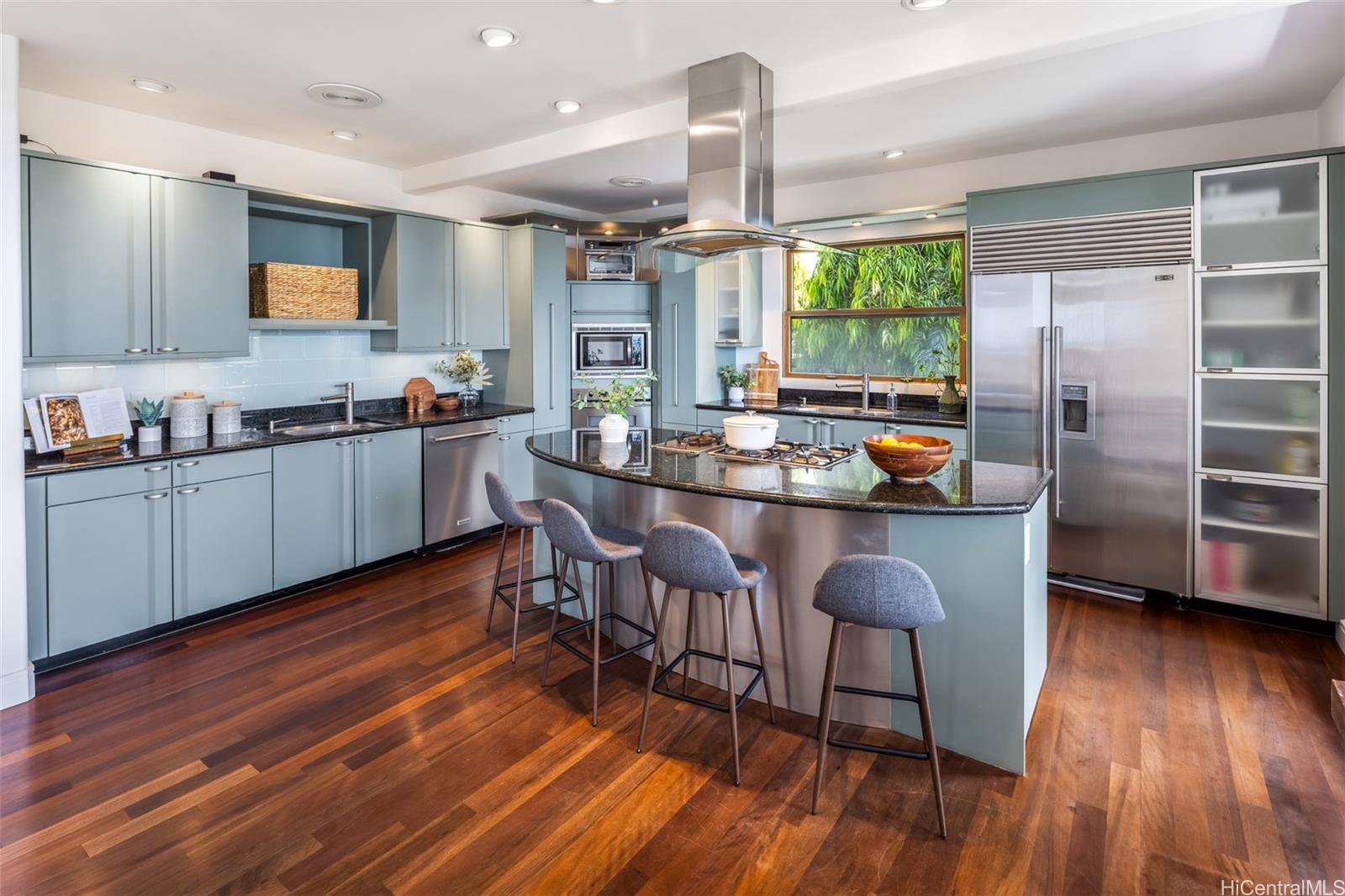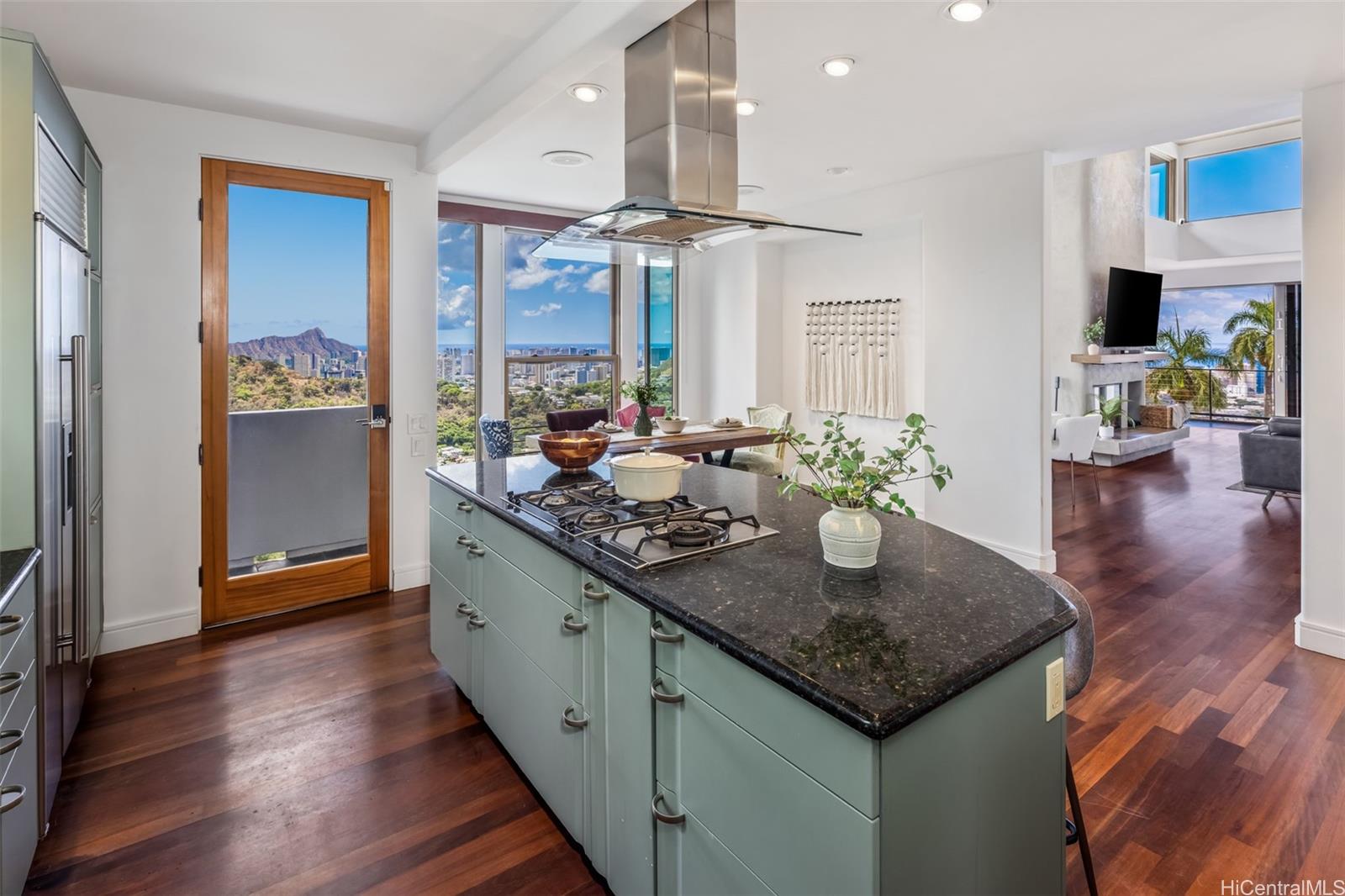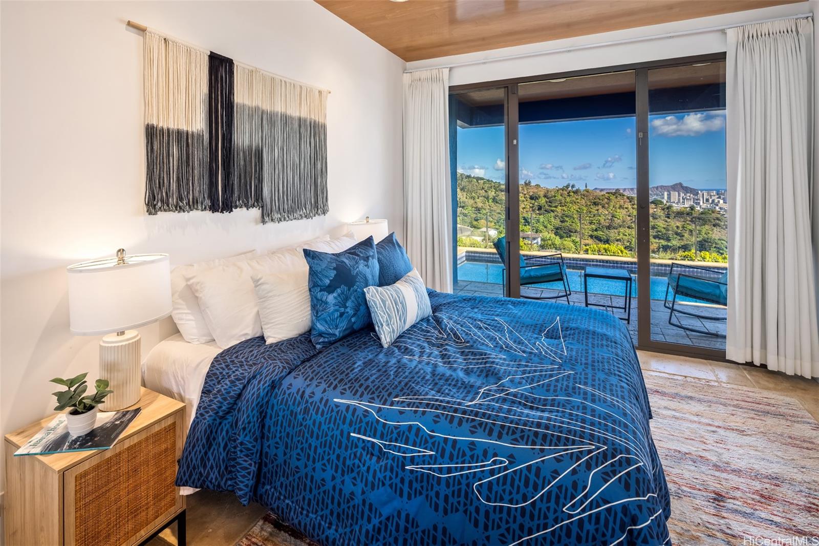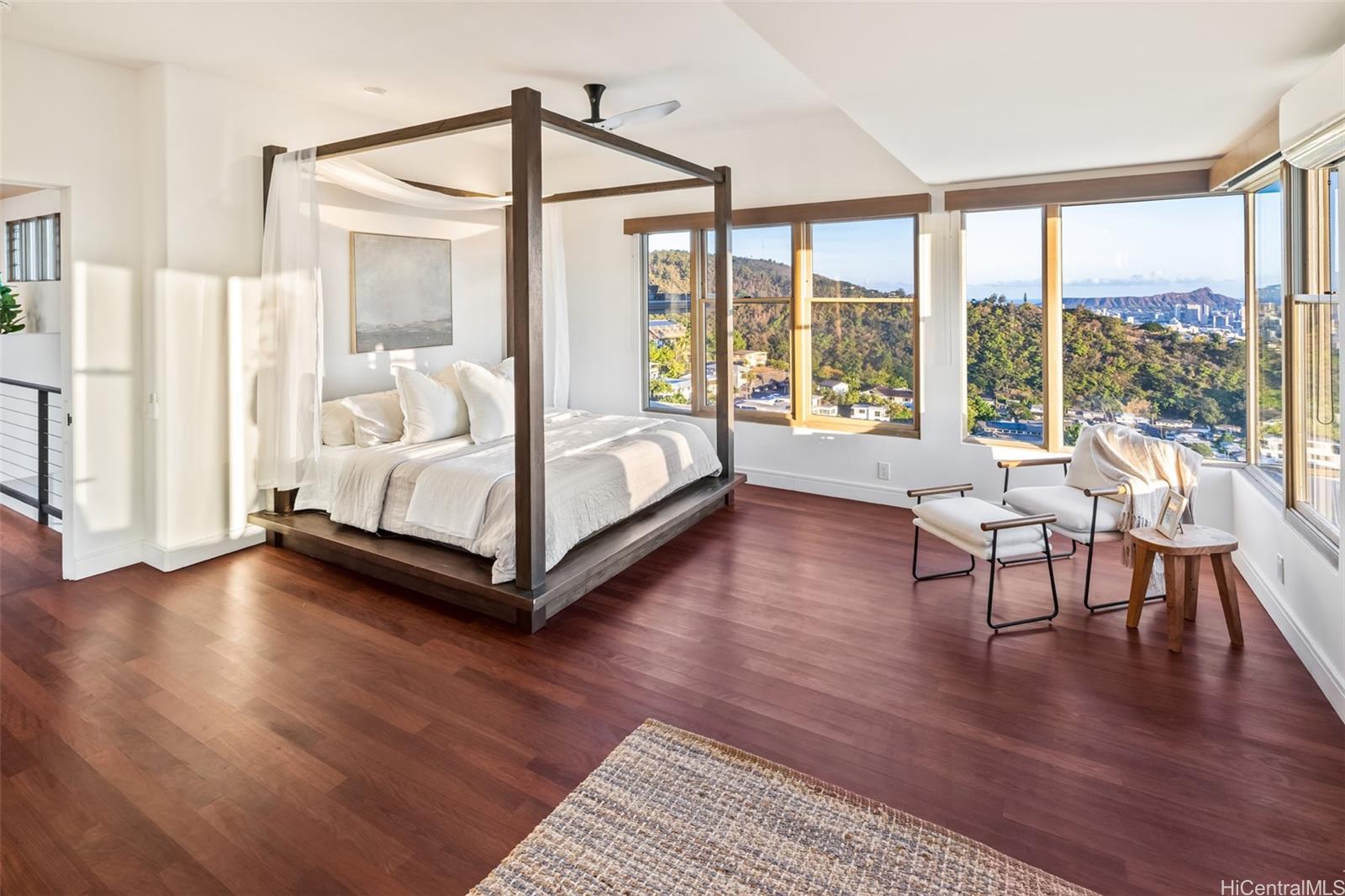 Contemporary Elegance! Welcome to this extraordinarily designed custom home by architect, Jim Schmit. The floor plan is masterfully designed toward the focal points of spectacular views from Diamond Head to Pearl Harbor to the Ko’olau Mountains. Monumental ten feet tall Bonded Bronze entry doors greet you and lead to the grand two-story living room. Stepping into the living room is an unexpected “WOW” experience at the sight of breathtaking, unobstructed views. Australian Chocolate Heart Brushbox hardwood floors, double cantilevered living room walls, an ASID Award winning kitchen and clean, elegant architectural lines create a timeless design for this home. You’ll enjoy waking up to amazing views of Diamond Head, Waikiki, Punchbowl and vistas out to the ocean from your primary bedroom suite. The lower-level recreation room with tumbled Travertine floors leads out to the wonderful lanai, spa and lap size pool complete with more gorgeous views. Discretely set back from the street, this extraordinary home offers privacy and a great location with its proximity to Downtown and major highways. You’ll love coming home to enjoy living in this remarkable home!