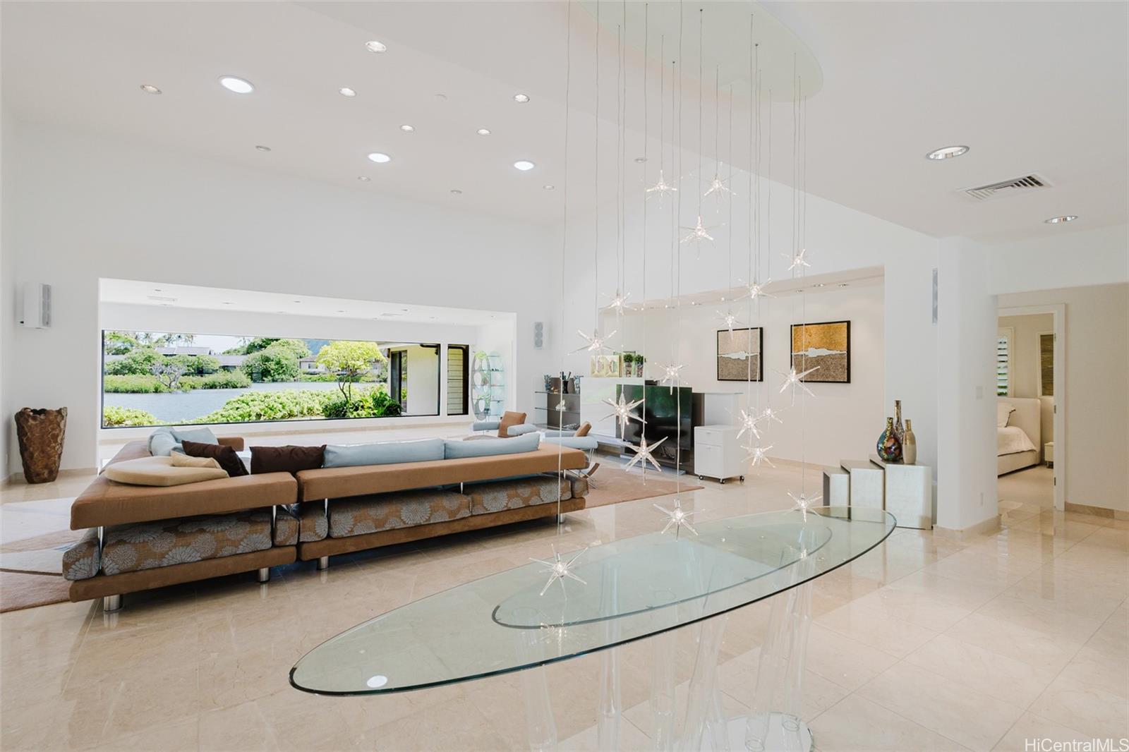 Waterfront residence located within a private, gated community, offering a setting defined by high ceilings and abundant natural light. The designer kitchen provides both style and functionality with water views. The property features a private dock with directaccess suitable for activities such as kayaking or fishing. The home backs onto the historic Kanewai Fishpond andthe Paiko Lagoon Wildlife Sanctuary, providing a unique waterfront environment. Enjoy a peaceful setting withviews of the lagoon and surrounding natural landscape. Here, your daily soundtrack is the gentle rustle of nativereeds and the soft call of the resident Hawaiian ducks (koloa maoli) gliding across the pond.A rare opportunity toown a waterfront property in a gated community with direct water access and proximity to protected natural areas.View 3D tours, video, and high-res photos via the virtual tour link (chain link icon).