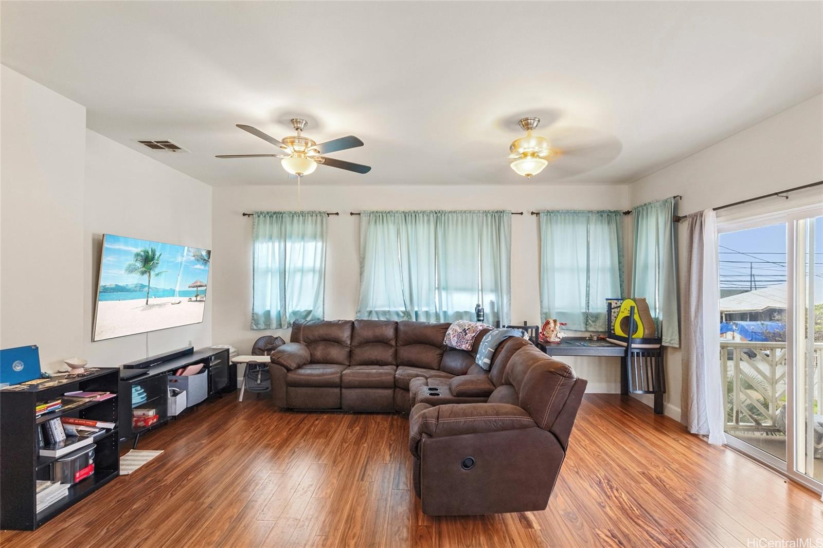 This home was thoughtfully designed to blend comfort, convenience, & coastal charm. Nestled just across the street from the beach & a quick drive to Kapolei Commons, Ko Olina, & Maili pillbox hike. The 2nd level serves as the heart of the home, featuring the living room, kitchen, primary suite, laundry, & an additional guest bedroom & bathroom. The primary suite is a cozy sanctuary complete with its own bathroom, walk-in closet, & lanai- the ideal spot for morning coffee & whale watching. The updated kitchen features stainless steel appliances & granite countertops. And it flows seamlessly into the living room, which has access to another lanai, perfect for alfresco dining. The 1st level features 2 more bedrooms, & a 3rd full bathroom. You can access the 3rd lanai from the 1st floor, which leads into the fully fenced in yard. The 2 car garage features lots of storage, & the driveway is large enough to park 4 additional cars. You’ll appreciate the option of turning on the central AC to keep the home a consistent and cool temperature.