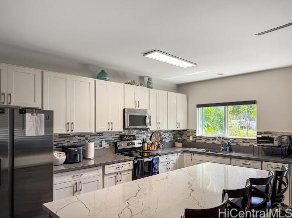 風通しの良いワヒアワにある、広々とした4ベッドルーム・2バスルームの一戸建て住宅です!緑豊かなプライベートな裏庭を見渡せるパティオデッキをお楽しみください。 敷地が三角形のCPR物件で、私道全体が所有権に含まれており、5台分の駐車スペースを確保。来客の受け入れや利便性に最適です!2021年築のこの住宅は、ウォークインクローゼット付きの広々とした主寝室、鏡付きクローゼットとプランテーションシャッターを備えたゆとりのある寝室、そして収納スペースが充実した新設のキッチンアイランドが特徴です。 内覧会:3月1日(日)午後1時から4時まで。