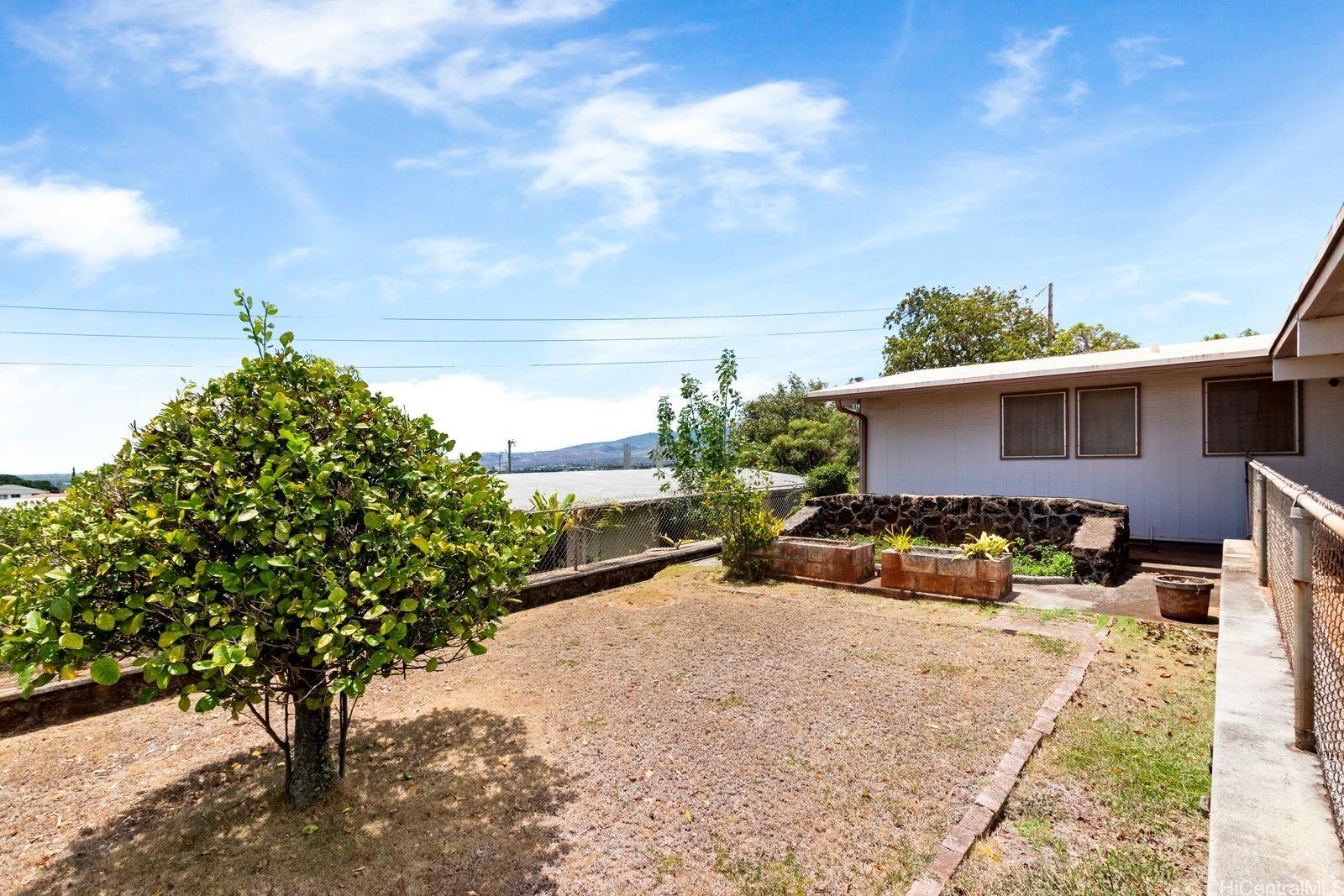 Here is a spacious, one-story home with large rooms for entertaining. Some rooms have a Split AC and there is a lots of storage space. The level lot is situated in a section of Upper Pearl City that has underground wiring and there is partial view of the island from the Southwest side of the lot. This home is waiting for someone who wants to design and remodel it to their own taste.