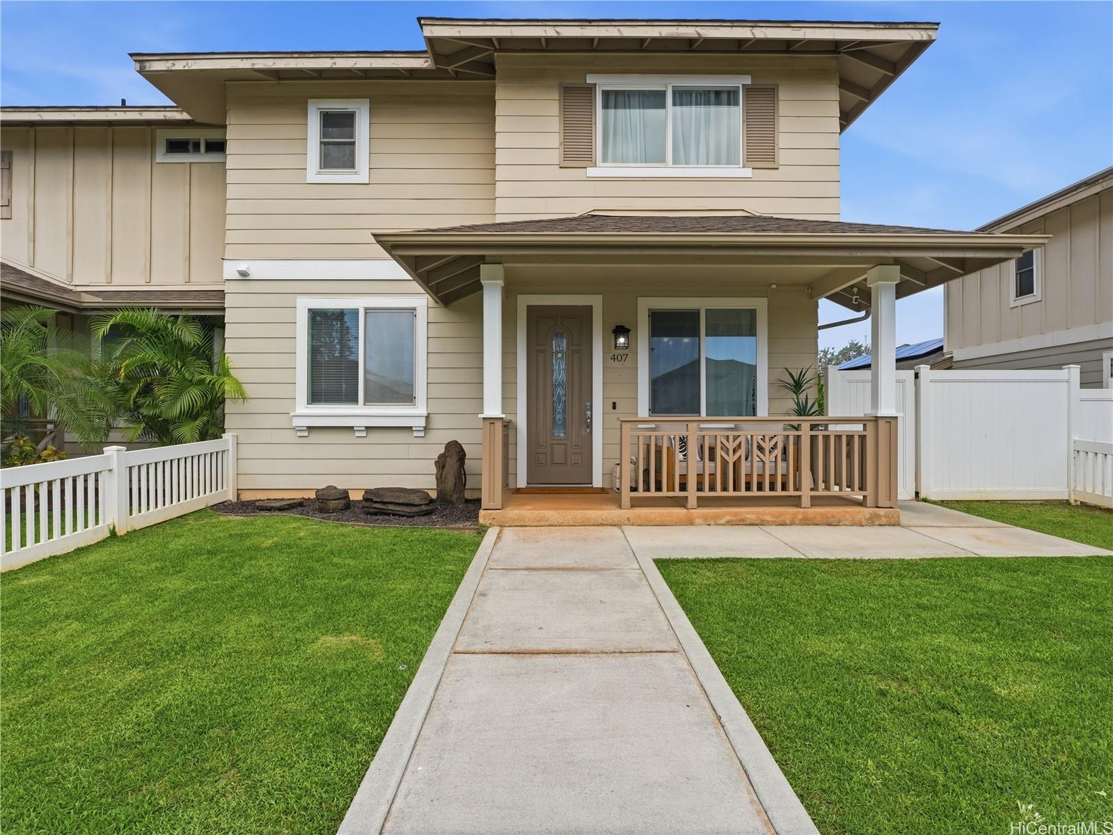 Welcome to this beautifully maintained 4-bedroom, 2.5-bathroom home in the desirable Mehana subdivision of La Hiki in Kapolei. Designed for comfortable island living, this home features a spacious and functional layout perfect for both everyday living and entertaining. Enjoy energy efficiency with 14 owned photovoltaic (PV) panels and solar hot water, helping keep electricity costs low. Stay cool year-round with central air conditioning throughout the home. The property includes a 2-car garage and an extended driveway providing additional parking. Step outside to a fully fenced yard—ideal for pets, play, or relaxing in your own private outdoor space. As part of the La Hiki community, residents enjoy low HOA fees and fantastic neighborhood amenities including a community pool, dog parks, and a children’s playground. Conveniently located near shopping, dining, schools, and everything Kapolei has to offer, this home combines modern comfort with a strong sense of community. Don’t miss this opportunity to own in one of Kapolei’s most sought-after neighborhoods. Open House Sunday 4/26 1-5pm, interior photos will be uploaded soon.