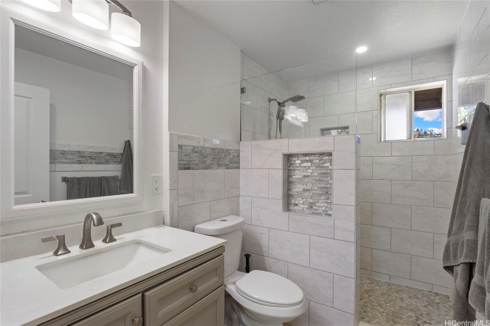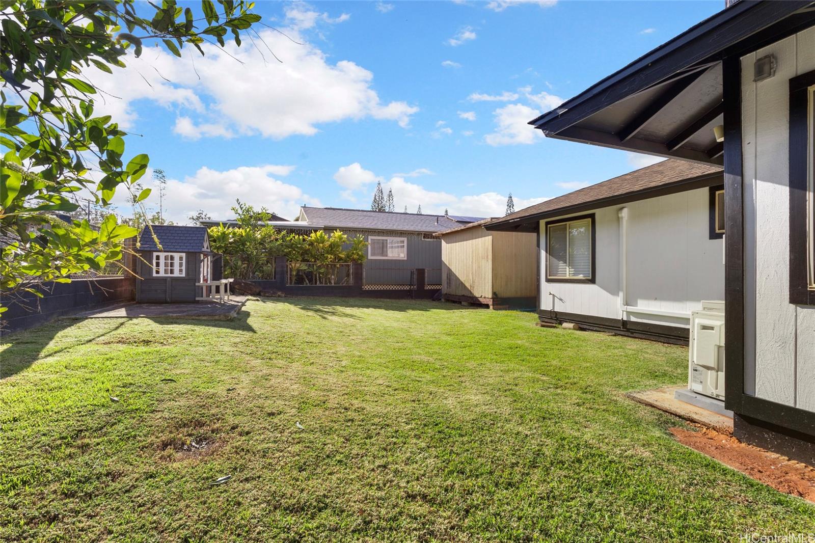 This large, renovated Wahiawa Heights property is perfect for big families or multi-generational living. At almost 2,000 SF of interior space and two bedrooms on the bottom floor, the extensive, flexible floor plan provides the space you are looking for. Renovated in 2023, almost everything feels new. From new lighting and electrical, plumbing, flooring, cabinets, and more, this is not your typical Wahiawa Home. Located up in the heights, the level 6,500+ SF yard is fully enclosed for added safety and privacy. Once you see it in person, you’ll fall in love! Call your realtor today!