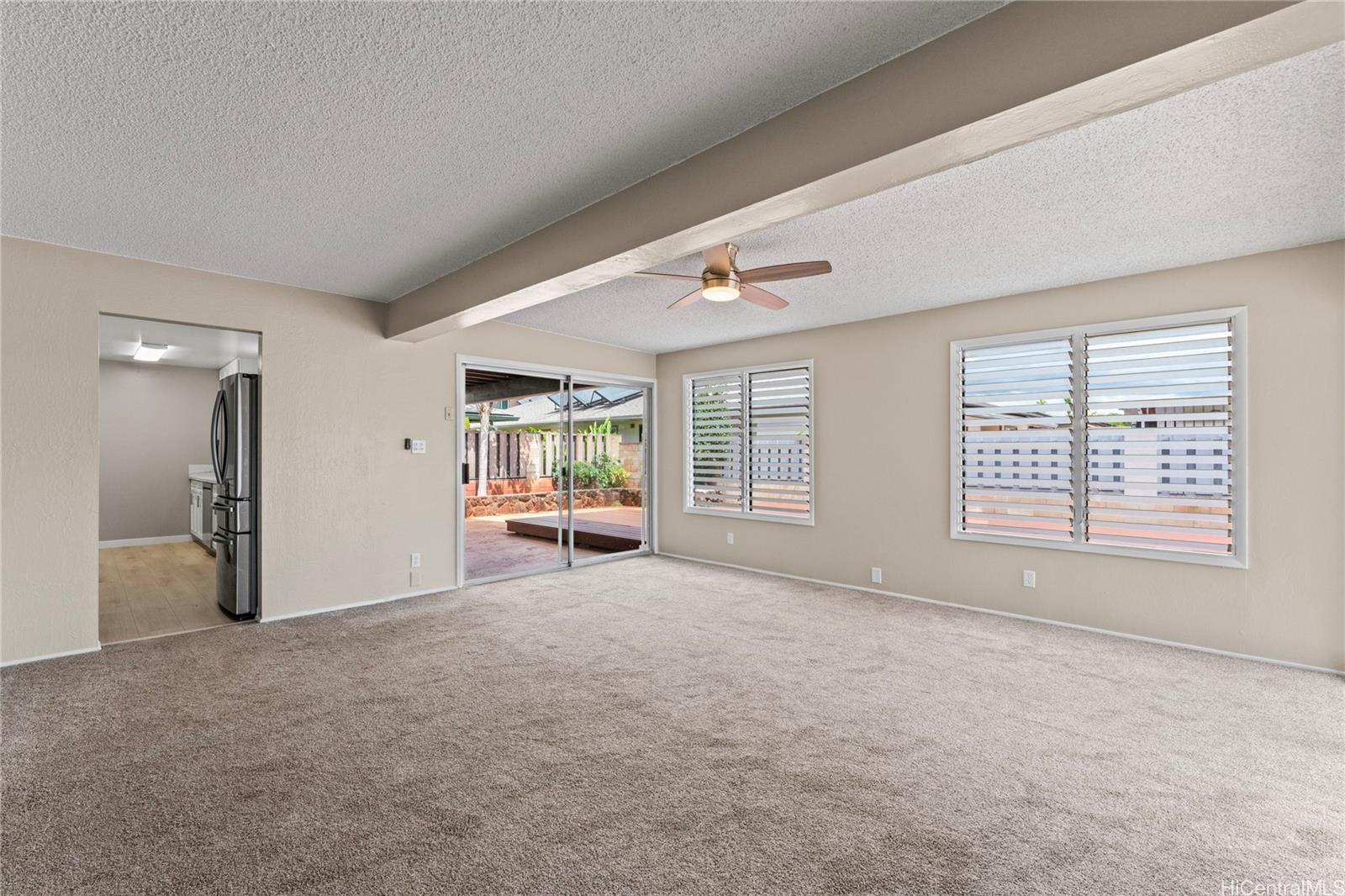 Island Living in Mililani Welcome to your slice of paradise in the heart of Mililani! This beautifully maintained 5-bedroom, 2.5-bath home offers generous living space and a layout designed for comfort and connection. With separate dining, living, and family rooms, there’s room for everyone to relax, entertain, and thrive.The renovated kitchen is modern, functional, and ready for gatherings. Step outside to a spacious deck featuring a wet bar, perfect for weekend BBQs or sunset cocktails under the stars. An avocado tree adds a touch of island charm and vibrancy to your lifestyle.The two-car garage plus driveway parking for two more vehicles ensures convenience for family and guests alike.Located in the desirable Mililani community, you’ll enjoy access to shopping centers, recreational facilities, and top-rated schools. Military bases are just a short drive away, making this an ideal location for service members and their families. Whether you’re hosting friends, raising a family, or soaking in the island breeze, this home delivers the best of Hawaii living. Schedule your showing today and experience the comfort, convenience, and aloha spirit this home has to offer!