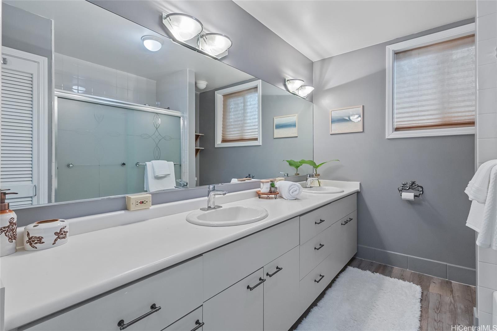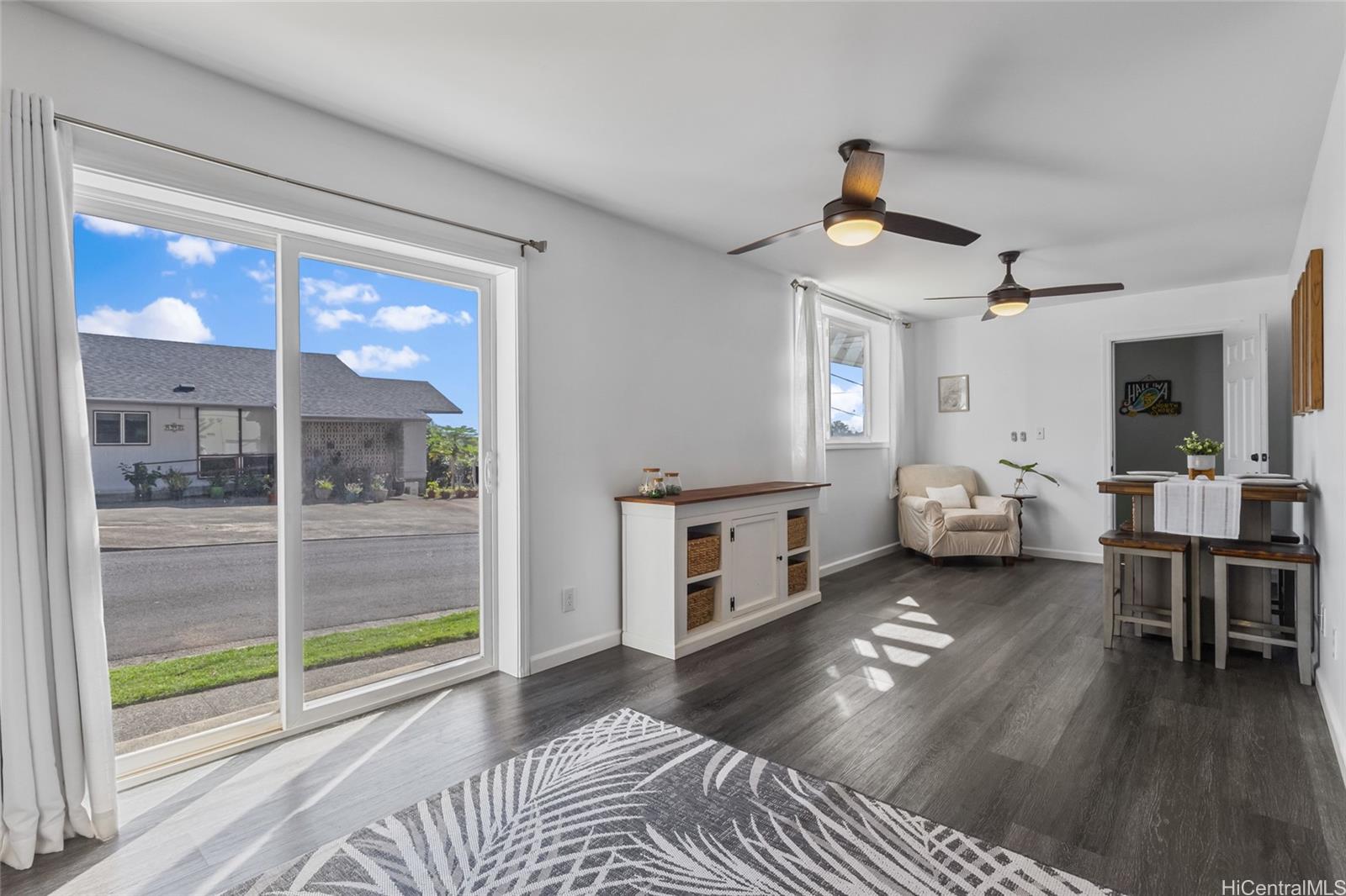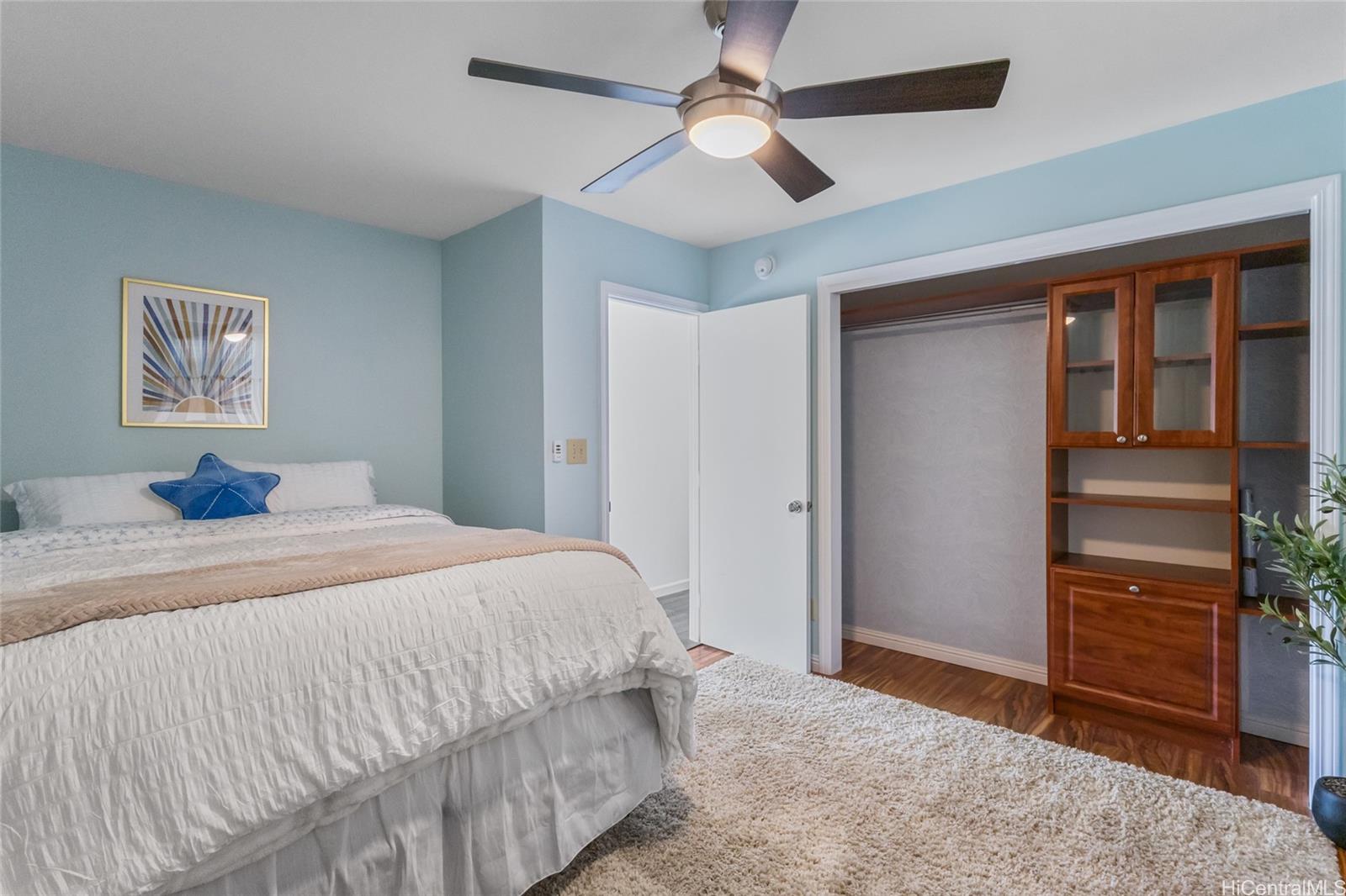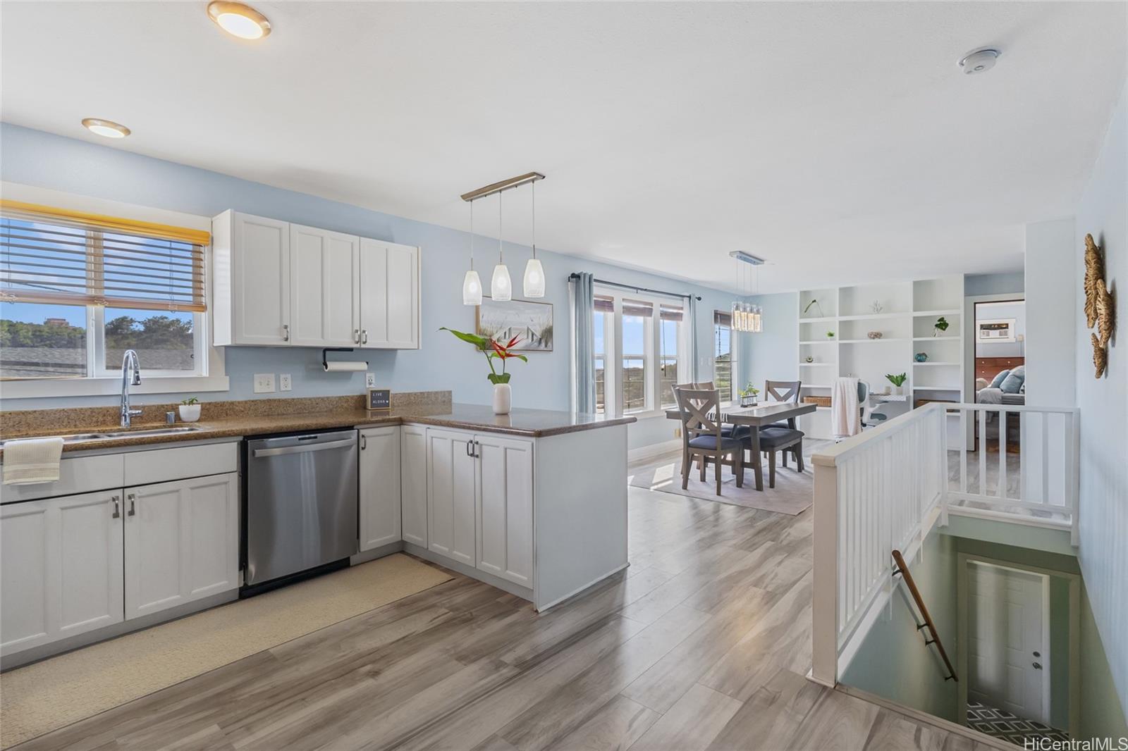 Rare beautifully maintained multi-generational opportunity in desirable Moanalua Valley! VA assumption to qualified buyers at 2.625% . This spacious 5-bedroom, 3-full-bath home features two distinct living areas a main space upstairs featuring 3-bedroom, 2-bath layout and downstairs 2-bedroom, 1-bath suite with wet bar. Can be used separately or together. Enjoy gorgeous mountain views with peek-a-boo ocean views and a primary suite with en suite bath. The home has nicely appointed quality finishes such as granite countertops, stainless steel appliances, luxury vinyl floors and hardwood. 1 Split A/C unit and 3 wall units and 13 OWNED solar panels and Tesla Powerwall. Step outside to a grassy yard perfect to garden with a covered lanai with mature lush tropical landscaping, creating a peaceful island oasis. Ideally located near Moanalua Valley Trail, Park, and Moanalua Valley Golf Club, with convenient freeway access, schools, and amenities. Approximately 3 miles to Fort Shafter and 6 miles to Joint Base Pearl Harbor-Hickam, 1.4 miles to Kaiser Moanalua Medical Center. A rare blend of convenience, flexibility, views, sustainability, and location