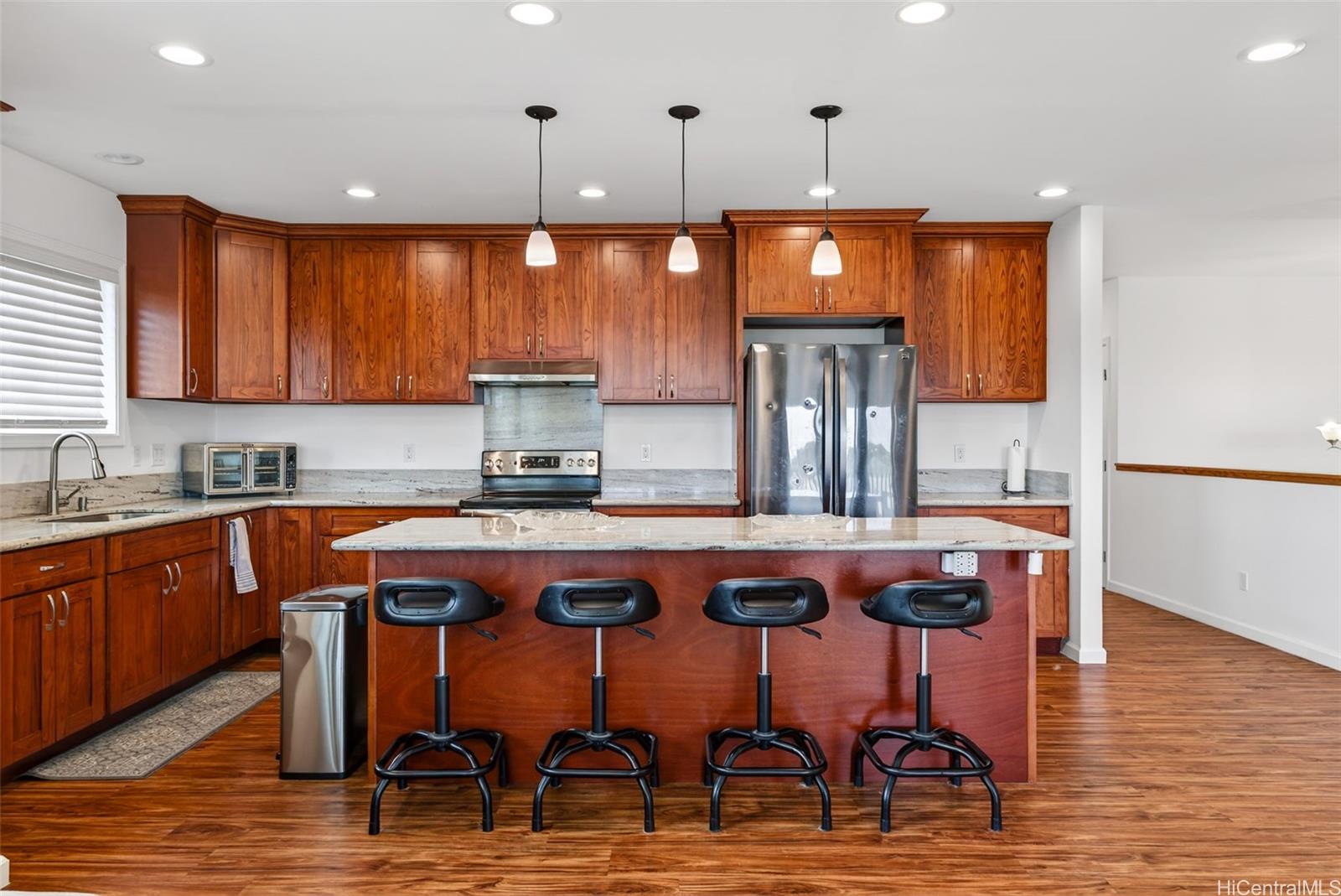 広々としたモダンな5ベッドルームの一戸建て住宅。室内面積は3,200平方フィート以上、ガレージ付き!独立した入り口を備えた柔軟な間取り:2階に3ベッドルーム、1階に2ベッドルーム、さらにスタジオルームも完備。 洗濯機・乾燥機置き場が2か所あります。 2019年に建設され、ビニール製プランクフローリング、セラミックタイル、花崗岩のカウンタートップ、無垢材のキャビネットが採用されています。 全室にスプリット型エアコンを設置。28枚の太陽光パネルと2基のテスラ製バッテリー(リース)で電力を賄っています。 フェンスで囲まれた裏庭にはパティオがあり、フレンチドレインが設置されているため、庭の手入れの手間は最小限です。 パール・ハイランズ・センターや鉄道駅、高速道路の入り口などに近く、アクセス至便です!