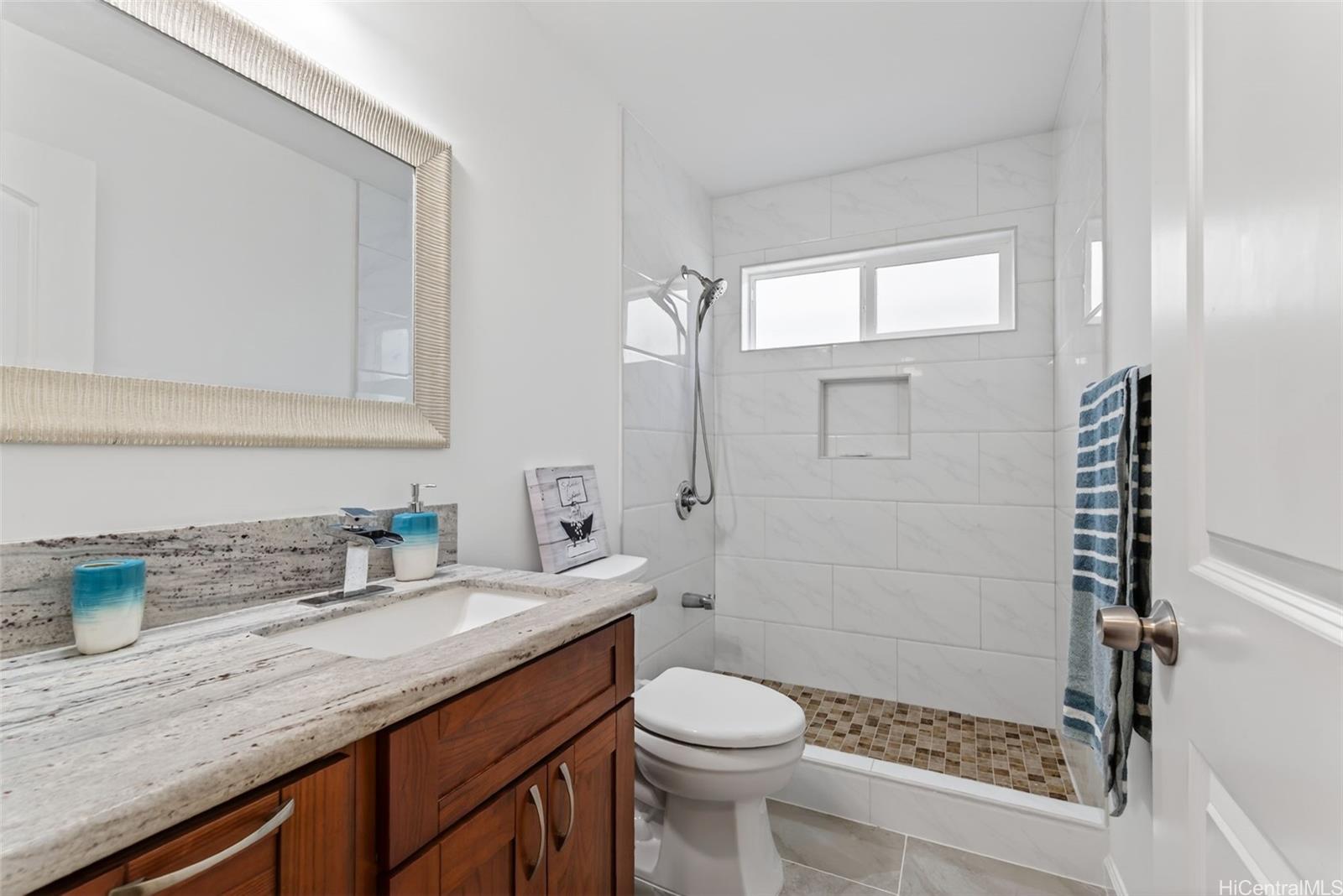 Spacious and modern 5 Bedroom single family living with over 3,200 interior square feet with garage! Flexible floor plan with separateentrances: 3-bedroom upstairs, 2-bedroom downstairs, and studio. 2 Washer/Dryer areas. Built in 2019 with vinyl plank flooring + ceramic tile, granite countertops, hardwood cabinetry. Split AC in all rooms, supported by 28 PV Panels and 2 Tesla Batteries (leased). Fenced backyard with patio, French drain system, with minimal gardening upkeep. Conveniently located close to Pearl Highlands Center, Rail Stop, freeway entrances and more!