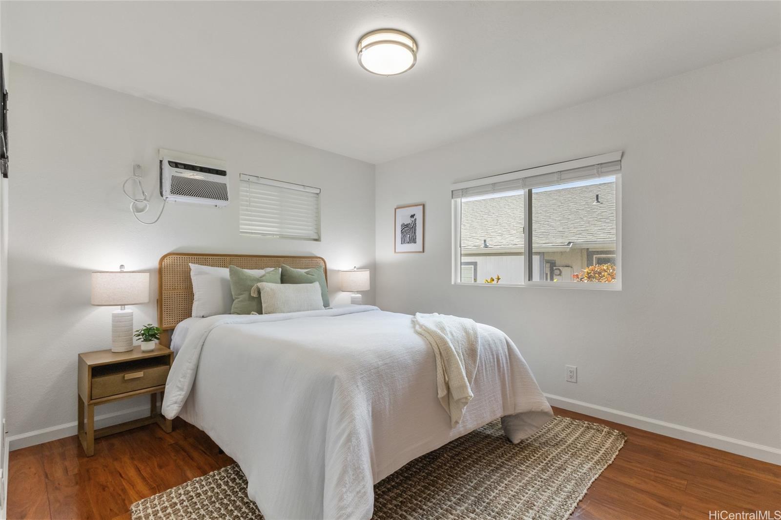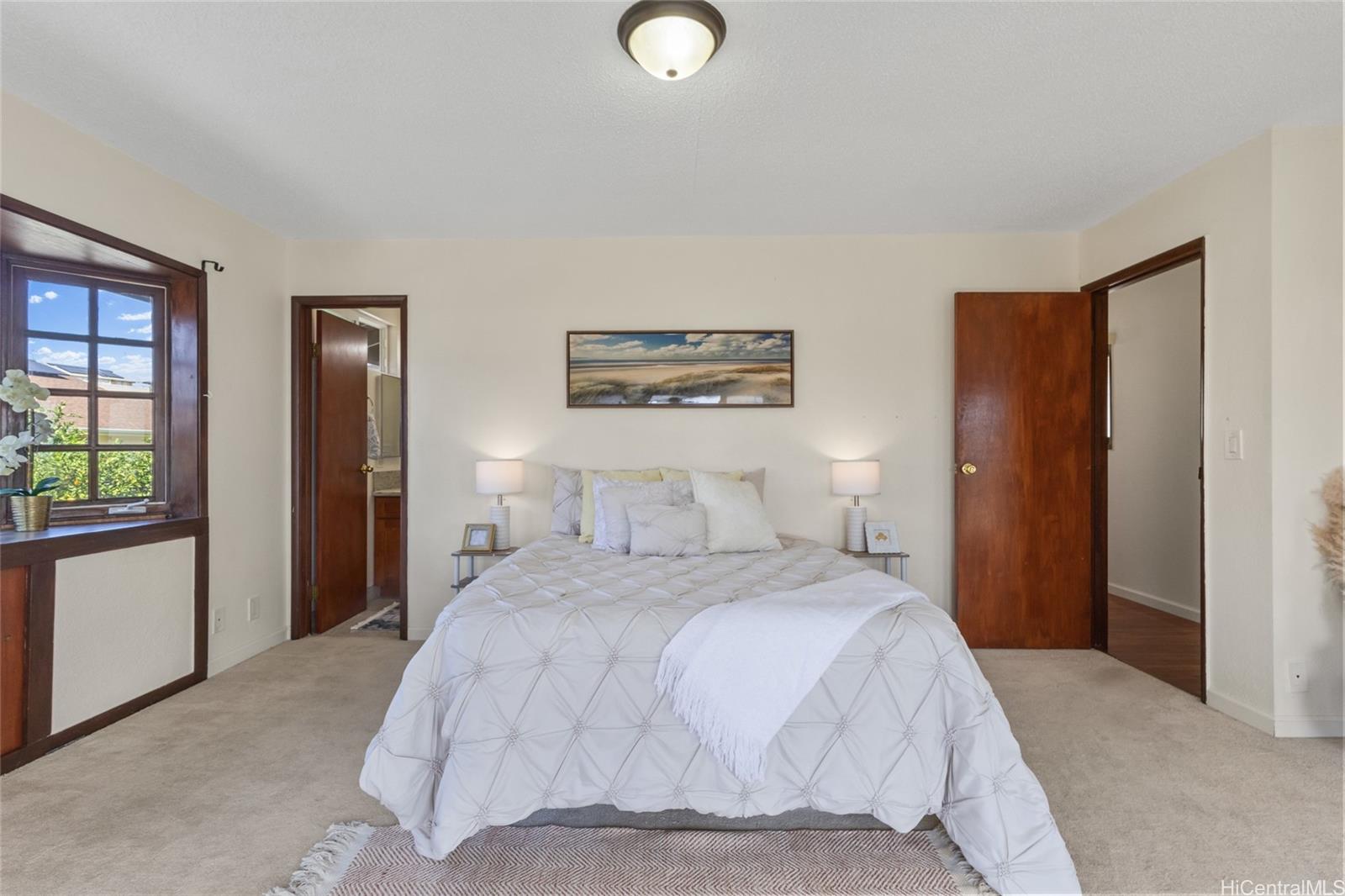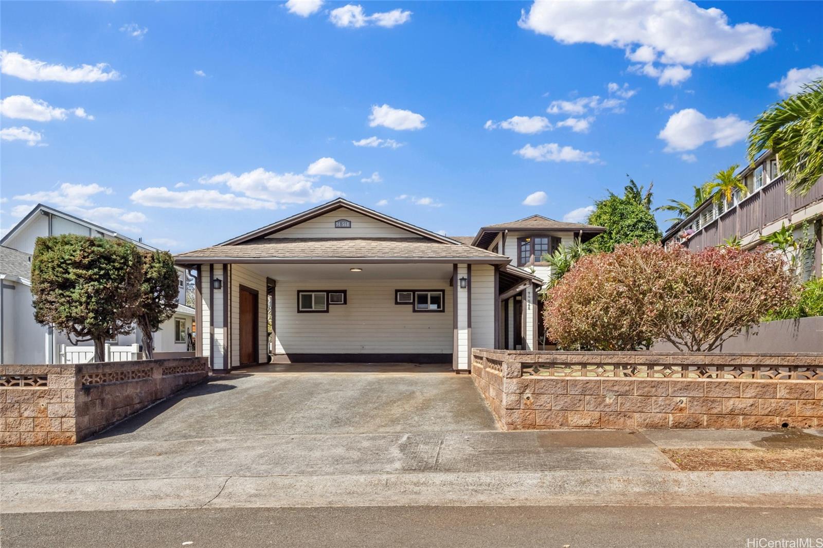 Beautifully upgraded and thoughtfully designed, this Mililani residence offers the perfect blend of comfort, flexibility, and style. Featuring 5 bedrooms, 4 full bathrooms, plus a den ideal for a 6th bedroom or home office, the layout is well-suited for multi-generational living. The main level includes 3 bedrooms + den and 2 full baths, including a primary suite with an en suite bath and walk-in shower. Enjoy an updated kitchen and a refined mix of vinyl and hardwood flooring throughout the main level. Upstairs offers a private retreat with 2 bedrooms and 2 full baths, a separate entrance, and a second primary suite with en suite bath—perfect for extended family, guests, or added living flexibility. Hardwood flooring enhances the upper living areas, with carpeted bedrooms for added comfort. Air conditioning throughout the home provides year-round comfort and climate control. Framed by lush front landscaping and conveniently located near Mililani Town Center and Mililani High School, this is elevated island living at its finest. Ask us about VA assumable!