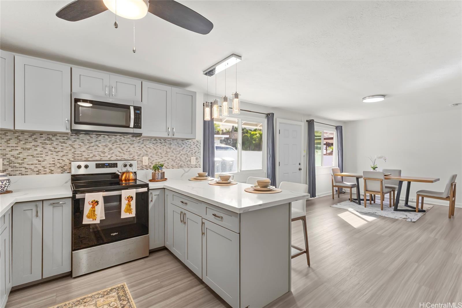 この新しく改装された5ベッドルーム、4バスルームの邸宅で洗練された島暮らしを発見してください。名門セント・ ルイハイツ地区 丘の中腹に佇むこの優雅な邸宅は、広々としたラナイから広がる海と街の眺望を誇り、息をのむような背景を創り出しています。親密なくつろぎにも洗練されたおもてなしにも理想的な空間です。 内装は細部まで配慮が行き届き、全室に新しいビニールラミネートフローリングを採用。キッチンとバスルームは全面的に刷新され、洗練されたモダンな設備と新しいステンレス製家電を備えています。 すべての更新は、現代的なデザイン、快適性、そして時代を超えた島のスタイルの調和を反映しています。 3つの独立した入口を備えた柔軟な間取りは、類まれな多様性を提供し、多世代同居、拡大家族の宿泊、あるいは追加の居住機会にも最適です。 トップスクール、ショッピング、飲食店、生活必需品店に便利な立地。この即入居可能な住宅は、ホノルルで最も人気の高い丘陵地コミュニティの一つに、美しく改装された家を手に入れる稀有な機会を提供します。 .