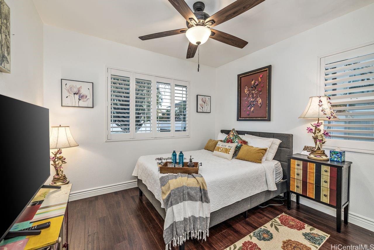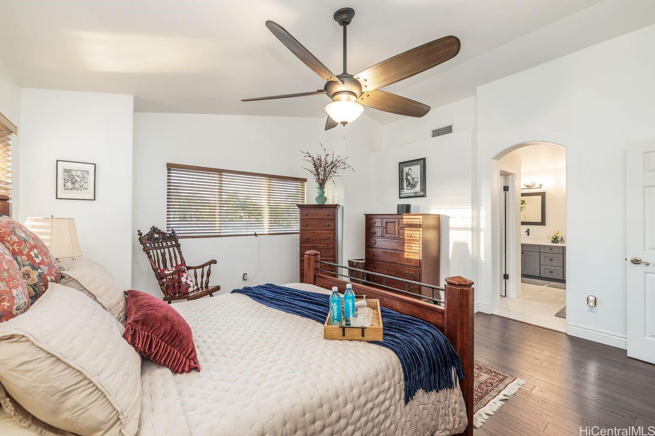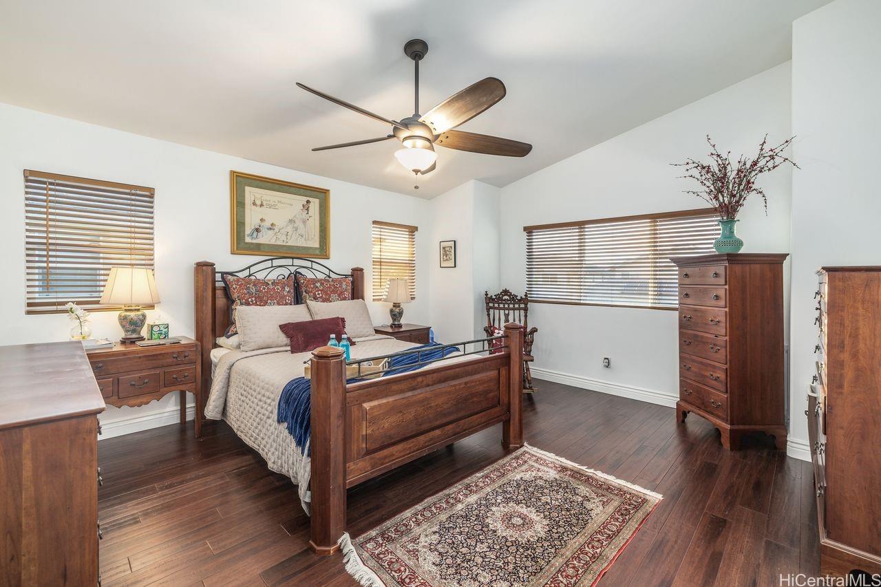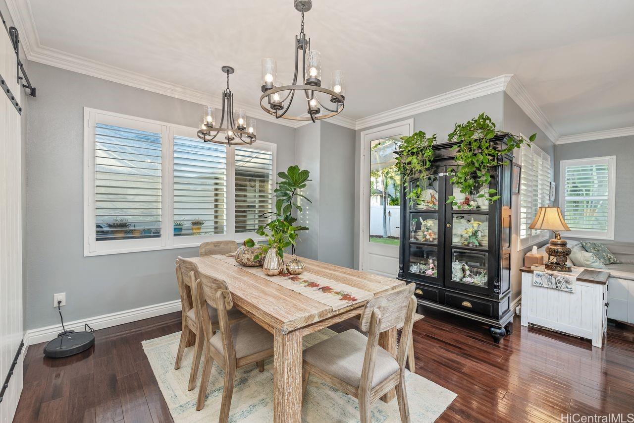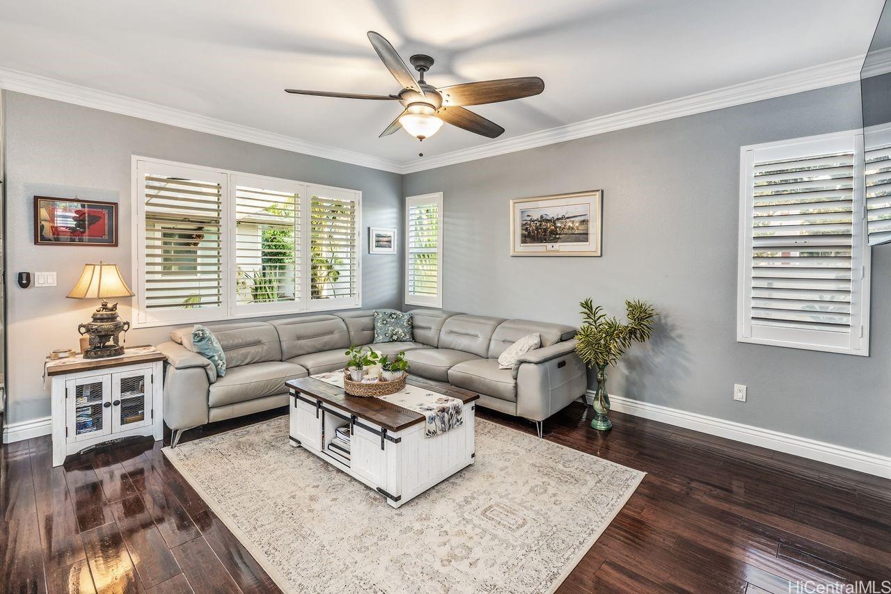 Welcome Home to this incredible sanctuary boasting 5 bedrooms and 4 full baths on a corner lot with a detached studio showcasing a full bath and wet bar in the prestigious Ocean Pointe neighborhood. This stunning home features spectacular features in every room from its custom chef inspired kitchen to its meticulous landscaped private backyard oasis. No expense was spared or overlooked in this sophisticated modern day masterpiece. The primary bedroom has a serene spa like bathroom with a with his and hers sink. The hand scraped hardwood floors with wood baseboard throughout. Thoughtfully designed with an expansive 2,436 square feet of interior living space, 48 solar panels and 3 Tesla Batteries. Minutes away from Ka Makana Ali’i mall, beaches, schools, world famous golf courses and dining. Come see for yourself what everyone is talking about. For those searching for a stunning retreat, Welcome home.