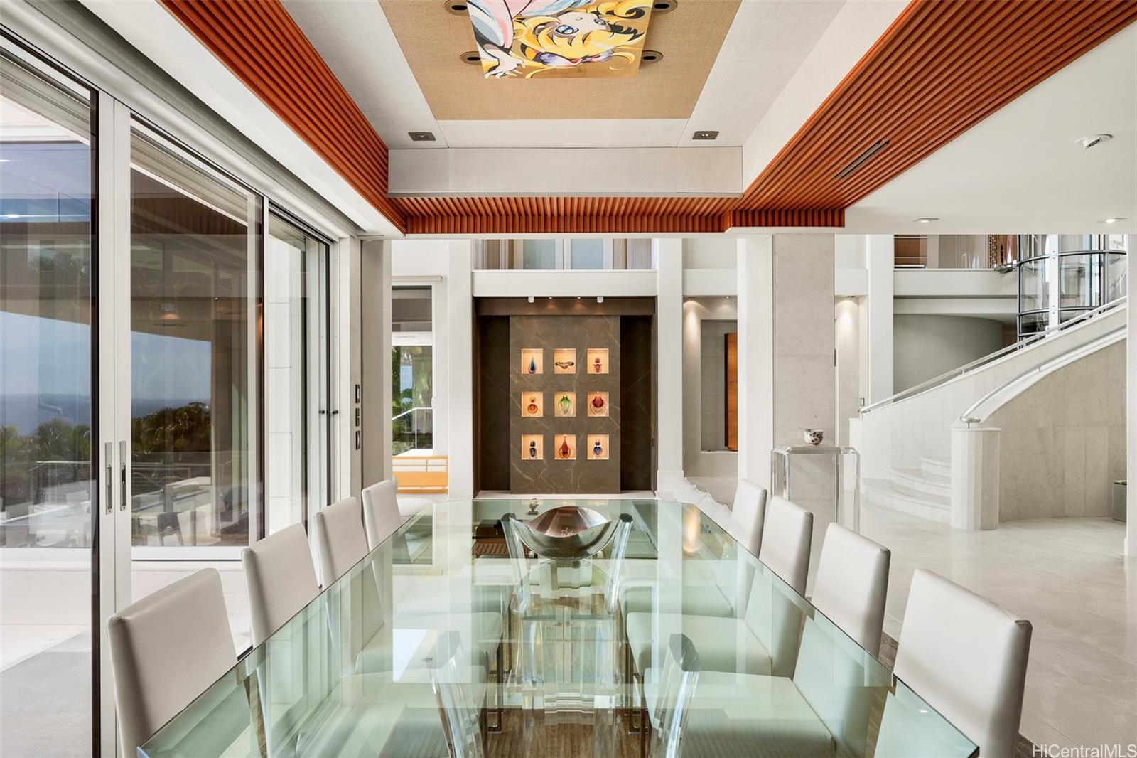Situated on one of the most desired lots in Hawaii Loa Ridge, Kaimana Hila o?ers complete privacy and unobstructed views of Diamond Head, the Pacific Ocean, and Honolulu’s coast from nearly every room. Designed by award-winning architect Je? Long, this residence combines resilient steel-and-concrete construction with interiors crafted by artisans known for their work on ultra-luxury yachts and couture boutiques. Exquisite details like Spinneybeck Italian leather walls, custom closets by Molteni & C Dada, and vein-matched travertine marble bathrooms showcase luxury at every turn. At its heart, a Pininfarina-designed kitchen with Snaidero cabinetry and Gaggenau appliances elevates daily living and entertaining alike. Outside, an expansive lanai with a saltwater infinity pool and hot tub, framed by lush landscaping and breathtaking views, creates a resort-style sanctuary. German-engineered hurricane shutters, a professional security system, and a gated community with 24hr security make this a true lock-and-go residence—o?ering unmatched luxury and refinement in Honolulu.