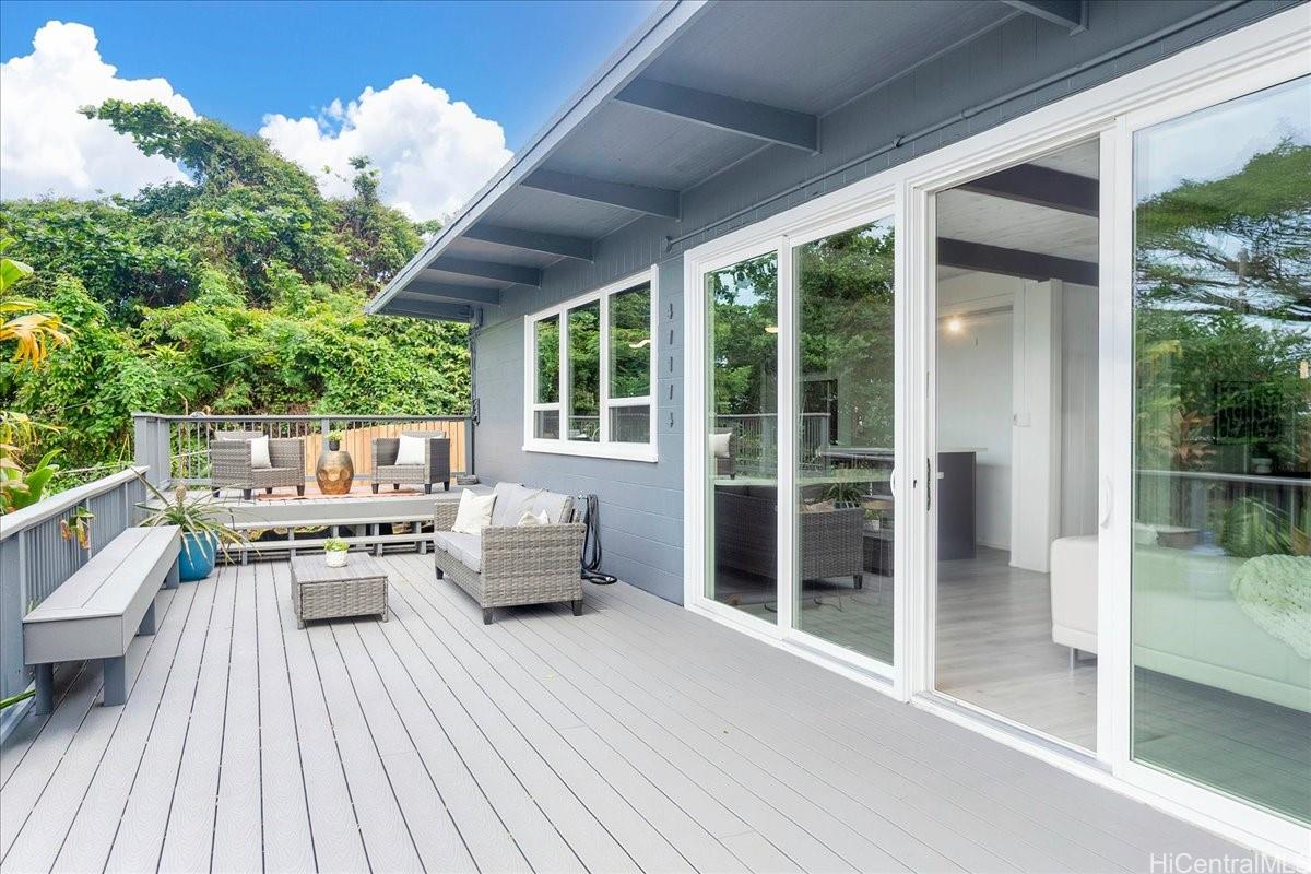 Discover the ultimate multi-living opportunity in Kaneohe Bay! Perched above Kamehameha Hwy in serene Lulani Ocean, this rare multi-home gem delivers ultimate flexibility: ideal for multi-generational living, guest accommodations, or strong rental income potential! Main Home: Spacious 2-story 2,314 sqft of living with 4 bedrooms, 3 baths, and a massive ~ 600 sqft lanai deck – perfect for BBQs, outdoor gatherings, and soaking in lush mountain + turquoise Kaneohe Bay vistas. Separate ADU: Single-level 797 sqft 1-bed/1-bath with bonus 109 sqft storage rm – perfect for family, guests, or tenants. Energy-Smart! enjoy substantial savings on your electric bill with 50 OWNED Solar PV panels paired with Tesla battery storage, a solar water heater, and an electric car charging station. Additional upgrades include premium dual-pane windows, two sliding doors, a complete rewiring of the house, and efficient split AC units for year-round comfort. Ample parking for 5 vehicles. Nestled on Kaneohe Bay’s coastline, Lulani Ocean blends peaceful rural charm, stunning natural beauty, and privacy with easy access to boating, water sports, hiking, and the vibrant boating lifestyle of the Windward side.