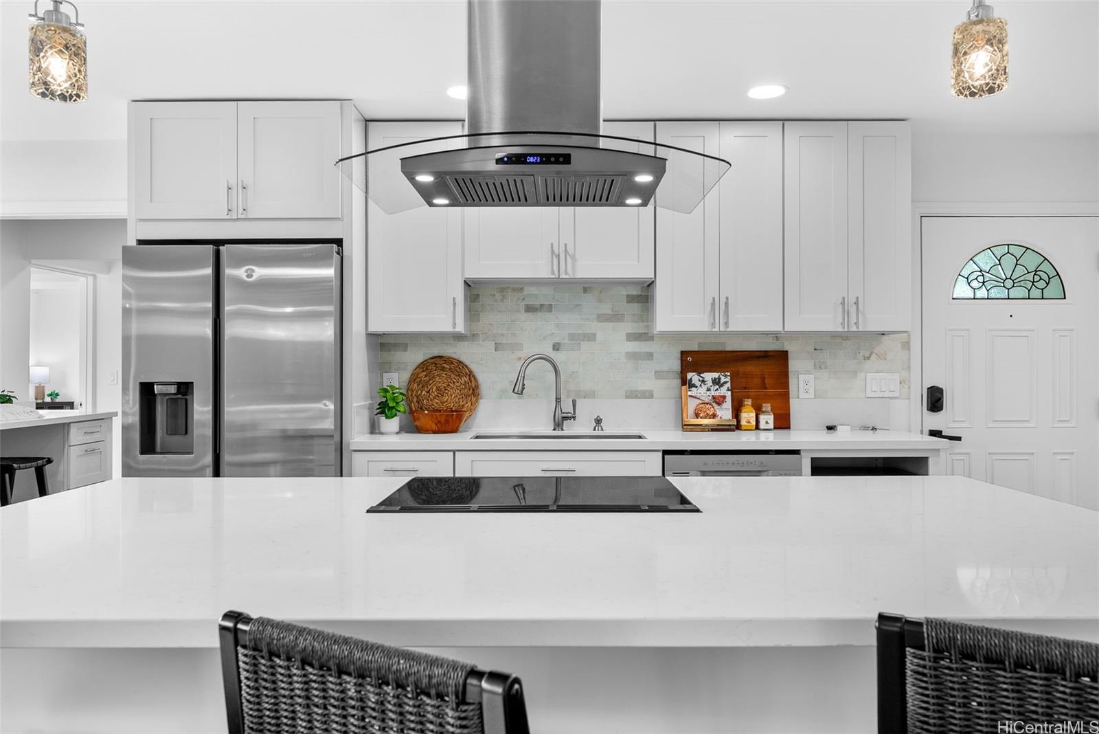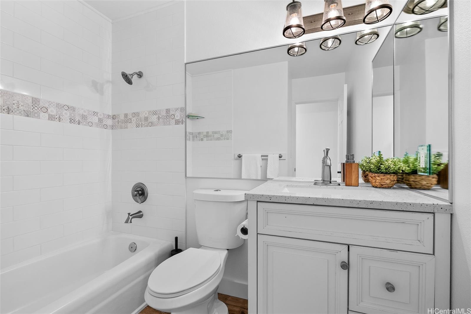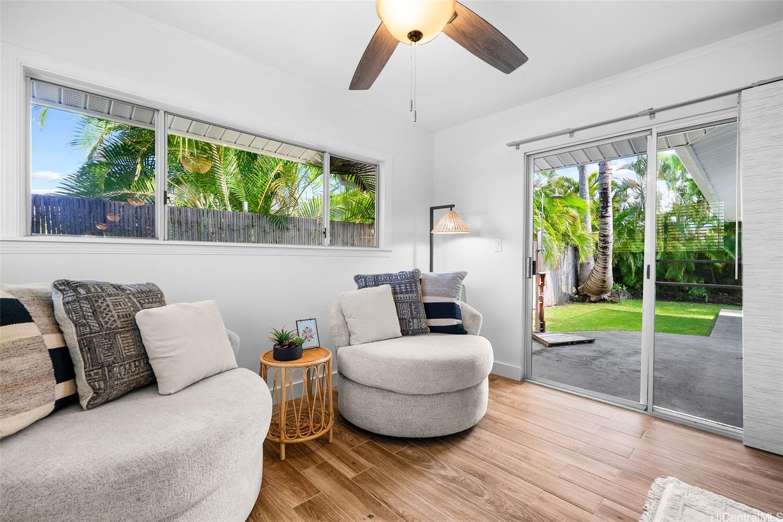 Completely ready to move right in! Brand new gorgeous plank ceramic tile floors throughout home. Open concept floor plan with vaulted ceilings. Large sliding glass doors in living room & dining room bring in brightness & light. Covered 161 sq ft lanai extends the living space with an outdoor/indoor feeling and lovely tropical, easy-to-care for landscaping. All brand new or newer stainless electric appliances in kitchen with newer cabinets, quartz countertops and deep, stainless farm sink. Main home is 4 bedrooms, 2 bathrooms with separate entry lockout studio suite for total of 5 bedrooms, 3 bathrooms and 2,067 sq ft of living space. All bathrooms have been recently updated with attractive tile in shower, new vanities & solid surface countertops. 2 car garage with ample room for storage. 18 owned PV panels help to offset the electric bill substantially. Close to Hamakua Drive and all the great Kailua restaurants, stores and businesses. 1-1/2 miles to Kailua Beach, 12 miles to downtown Honolulu and 19 miles to Honolulu International airport. First Open House: March 1, 2026 @ 2-5pm.