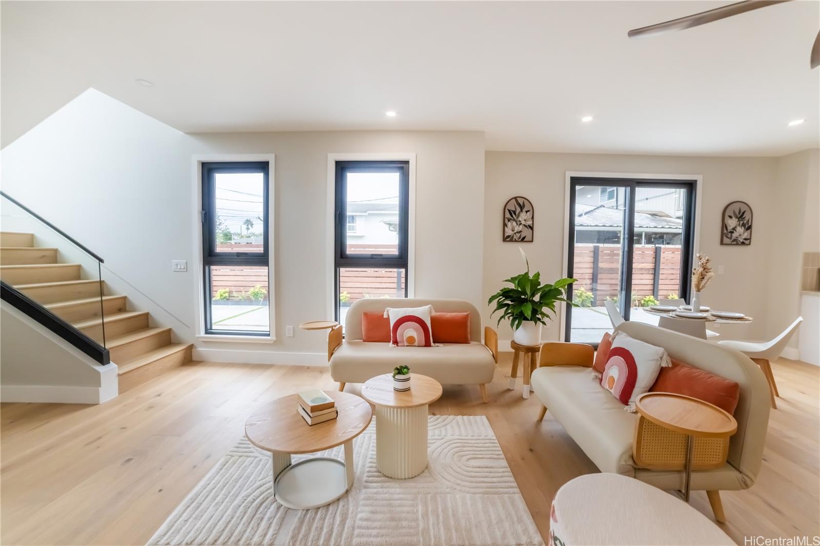 Experience modern island living in this BRAND NEW single-family home, thoughtfully designed with open spaces and high-end finishes throughout. Located in desirable Kailua, this newly built residence blends contemporary architecture with the relaxed comfort of Hawai’i living. The home features a bright, open-concept floor plan (allowing for multi generational living) with soaring ceilings, recessed lighting, and wide-plank flooring.The designer kitchen is a showstopper, offering custom wood cabinetry, quartz countertops, stainless steel appliances, and a spacious island perfect for entertaining. Seamless indoor-outdoor flow creates an inviting space for everyday living and gatherings. Bathrooms are beautifully appointed with modern fixtures, large-format tile, and spa-inspired details, including a luxurious walk-in shower and freestanding soaking tub. Thoughtful finishes and neutral tones throughout create a calm, sophisticated aesthetic.