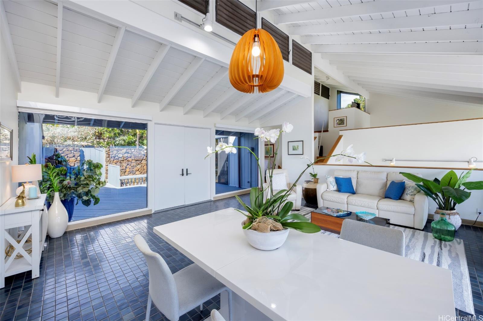 Situated along Waialae Iki, this exceptional residence has been crafted with both function and aesthetic elegance in mind. Positioned to capture breathtaking panoramic vistas, the home overlooks Koko Head, Oahu’s southern coastline, and the Pacific Ocean. The dramatic split-level 5-bedroom, 4.5 bath floor plan introduces an open atmosphere, highlighted by vaulted ceilings and versatile loft spaces ideal for a creative studio or library. At the heart of the home, the grand living area impresses with soaring ceilings, creating an unparalleled expansive setting. The main residence encompasses 4-bedroom and 3.5-baths, while a separate lower-level suite offers privacy for guests or multi-generational living, complete with 1-bedroom, 1-bath, a wet bar, and a private entrance. Outside, terraced grounds and open lanai spaces offer room to entertain. 1789 Laukahi Street is situated moments from notable shopping, dining, and sandy beaches. This custom home offers a rare architectural pedigree for the discerning buyer.