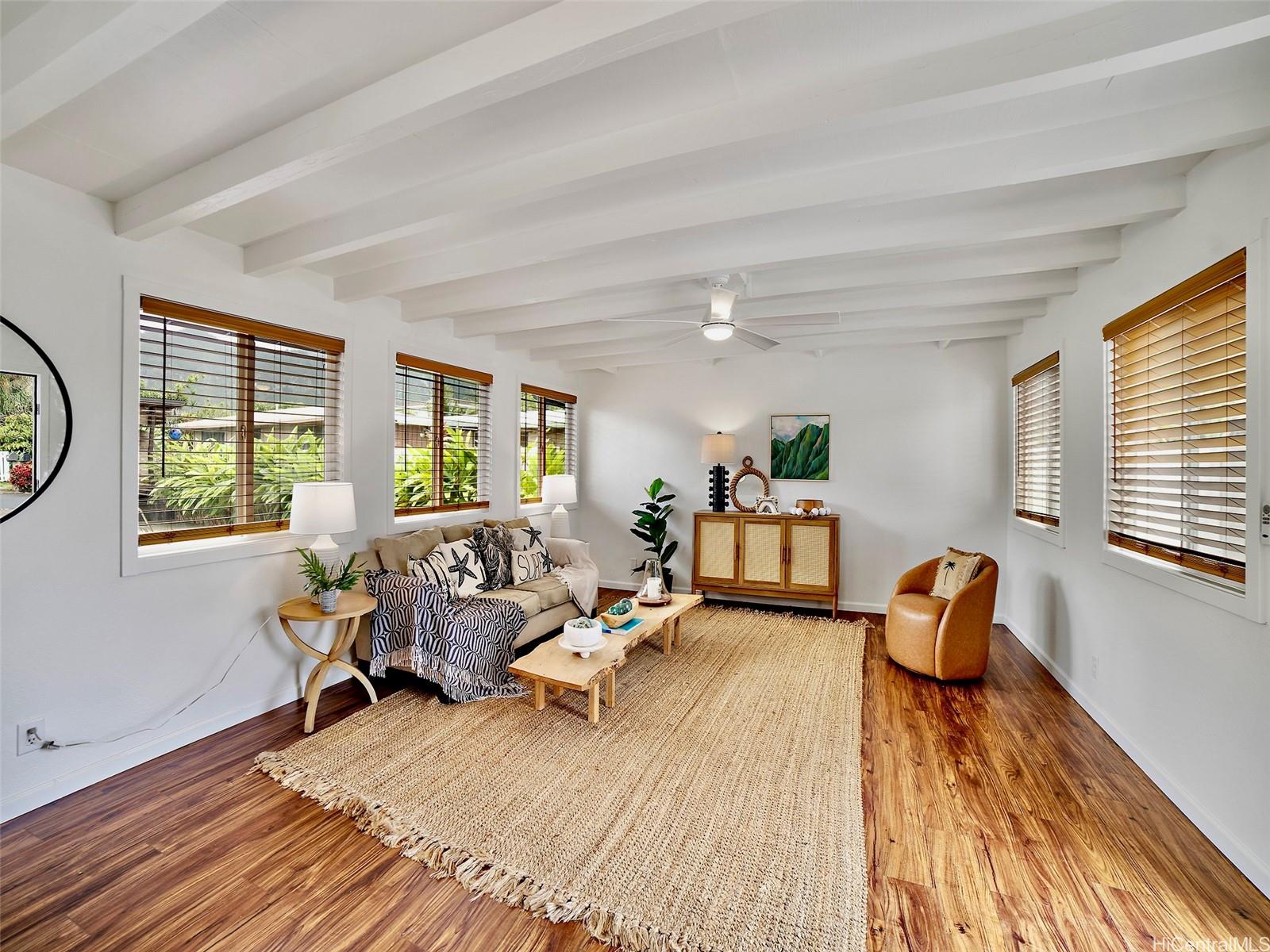Welcome to the beach home of your dreams, where location and quality meet for Hawaiian-living perfection. Just a short stroll from the beach, this impeccable single-level residence offers the ultimate in relaxed seaside living. Imagine morning walks along the white sands of Waimanalo Beach, and afternoon swims in the calming blue waters. Step outside to your private backyard oasis, complete with saltwater pool, sauna, and covered entertaining areas. Adding exceptional value and versatility, a 1 bed/1bath unit with kitchenette, private outdoor space, and separate entrance is located at the rear of the home. Enjoy energy-efficiency with owned Photovoltaic panels and 3 Tesla batteries. With an ample amount of bedrooms and living spaces, you’ll have plenty of options for utilizing this home in any of the ways your heart desires. Whether you’re searching for a full-time home or a vacation getaway, this beachside gem checks every box.*Tax records differ from actual