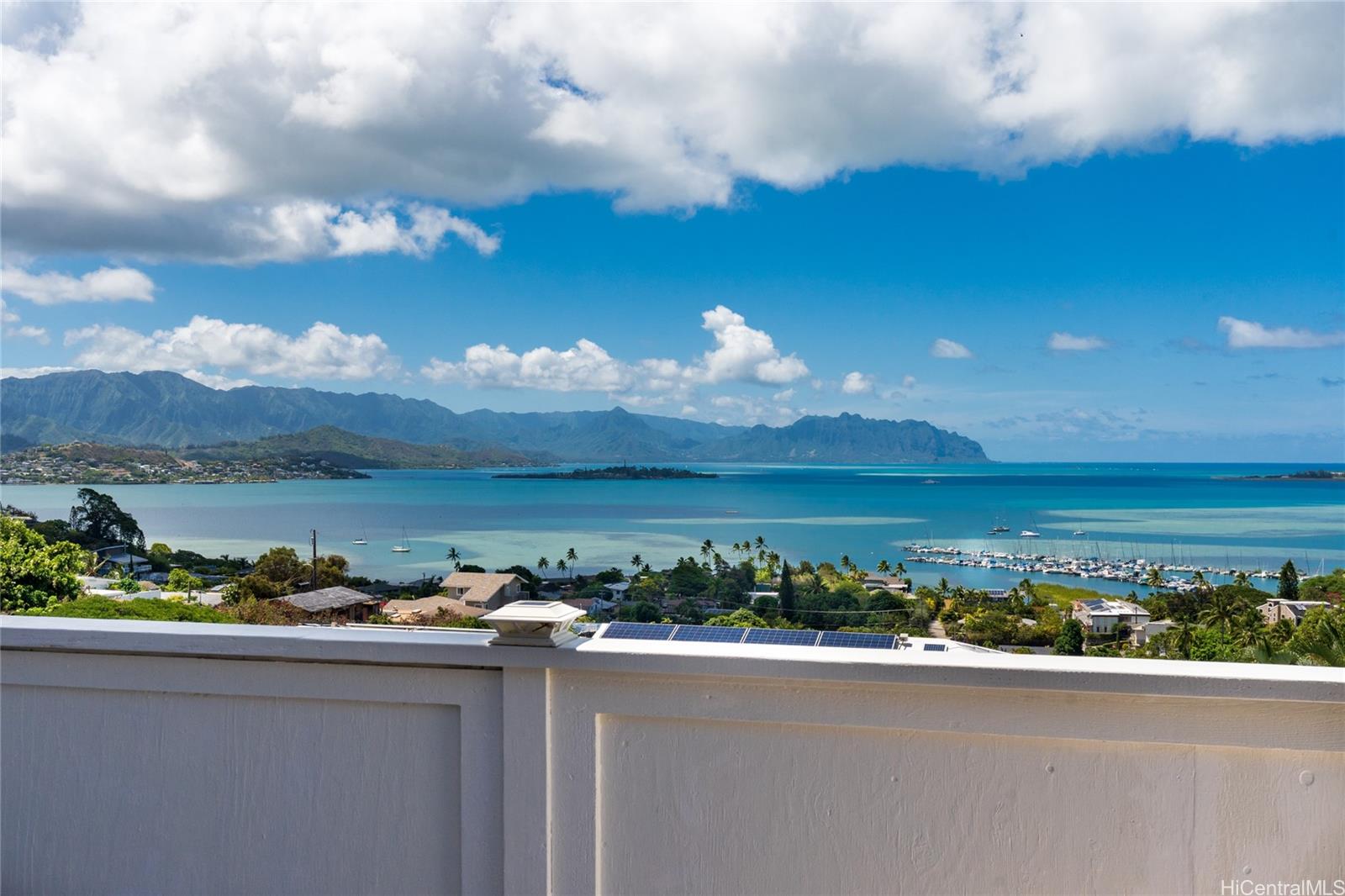 Experience unparalleled stunning views of Kaneohe Bay & the Ko’olau mountains as you enter into this gated Hilltop Sanctuary! 2 CPR units encompass this 5 bedroom, 5/2 bathroom custom home sits atop the unique Windward neighborhood of Mahinui on Oahu— a hidden gem low-traffic area, just minutes from Kailua town & its beaches — boasting dynamic panoramic views of vibrant Kaneohe Bay, Kaneohe Yacht Club, Chinaman’s Hat, and iconic Coconut Island. Savor the ambience created by high ceilings, expansive rooms with large view windows, & an abundance of natural light. Solidly built with all steel beam construction, hardwood flooring, travertine, imperial plaster walls, split AC; designed for everyday living and entertaining with two primary suites, large game room and bonus room, 3 entrances & separate living areas for extended family, friends or rental. Outdoor lounge and sundeck plus private back yard beckon you to relax or unwind & savor the fresh air of hilltop ocean breezes. Proximity to H-3 on ramps allows you to live on the desirable lush Windward side, while still providing easy access to Honolulu and the airport.