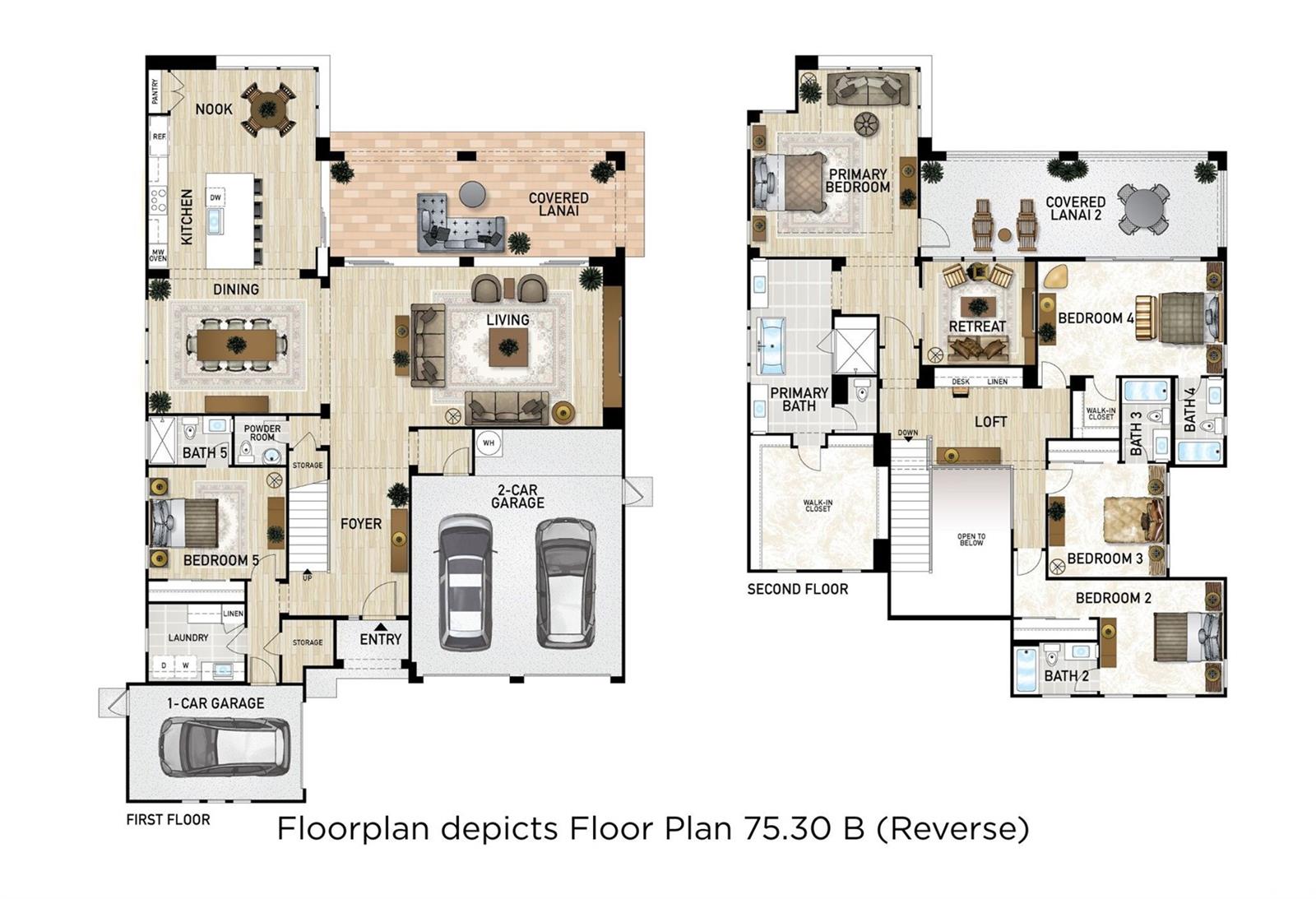 真新しいオーシャンビューのラグジュアリーレジデンス洗練された海岸沿いの暮らしを、この広々とした新築一戸建て住宅で体験してください。4,100平方フィート(約380平方メートル)を超える、細部まで配慮された設計の内装空間を提供します。 広々としたベッドルーム5室、バスルーム5.5室、ゆったりとしたロフト、プライベートな隠れ家、屋根付きラナイ、3台収容ガレージを備えたこの邸宅は、くつろいだ日常の暮らしにも、格調高いおもてなしにも理想的です。 パノラマのオーシャンビューと、セントラルエアコン、120ガロンのソーラー給湯器、EV充電器対応、太陽光発電システム設置用スペースなど、数々の高級設備をお楽しみください。 グルメキッチンには、プレミアムなサブゼロとウルフの家電が装備されています。これには42インチビルトイン冷蔵庫、ステンレス製誘導加熱コンロ、コンベクションオーブン、ドロップダウンドア付き電子レンジ、そしてボッシュのエネルギースター認定食器洗い機が含まれます。 プロによる前庭・後庭の造園と自動灌漑システムが、屋内と屋外がシームレスにつながるライフスタイルを完成させます。 最初 – 75. 30 B(R) 間取り図 ホアカレイのケカイナニ|名門クアパパ地区に残る最後の32戸のラグジュアリーレジデンスの一つ。 .