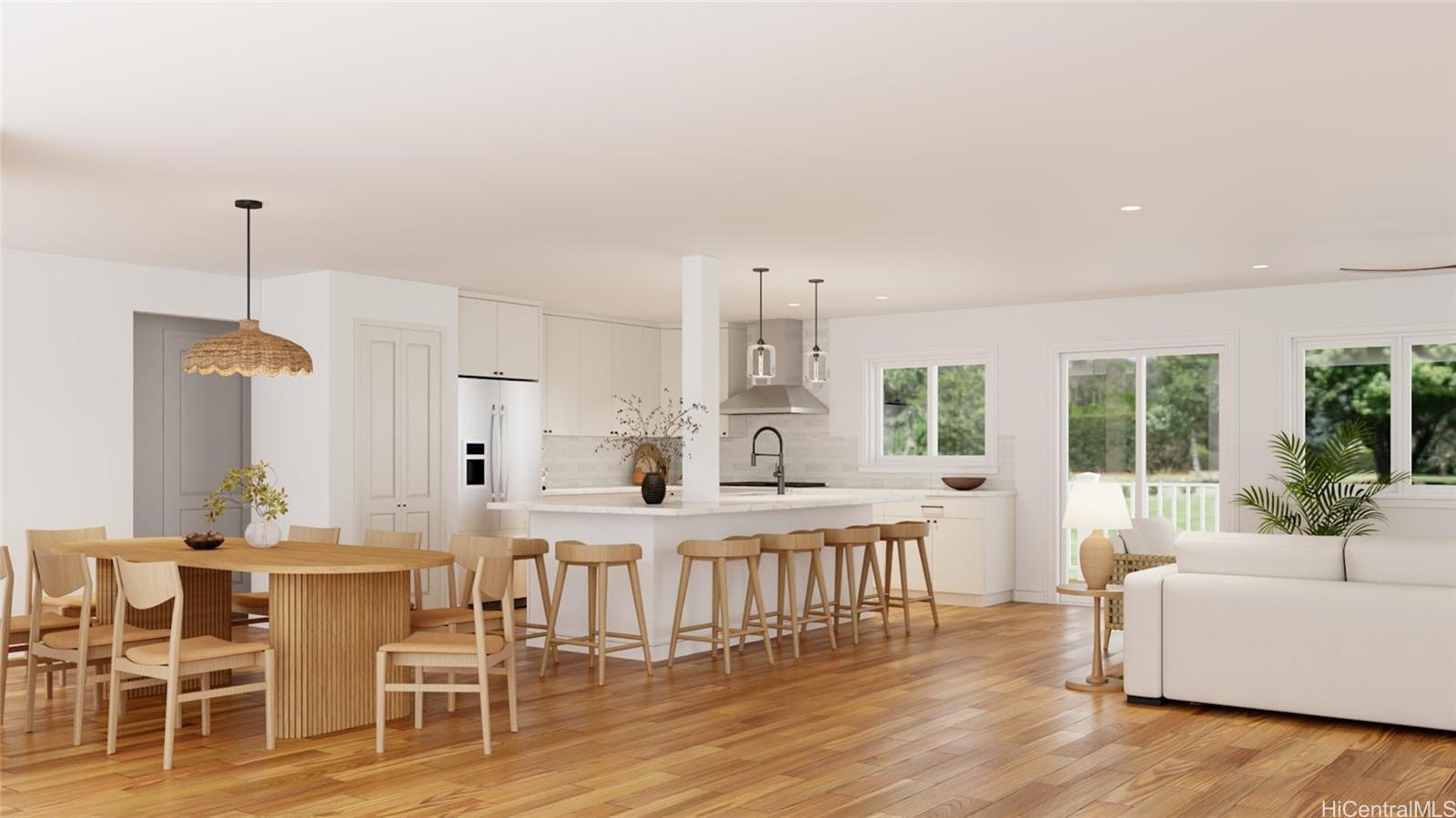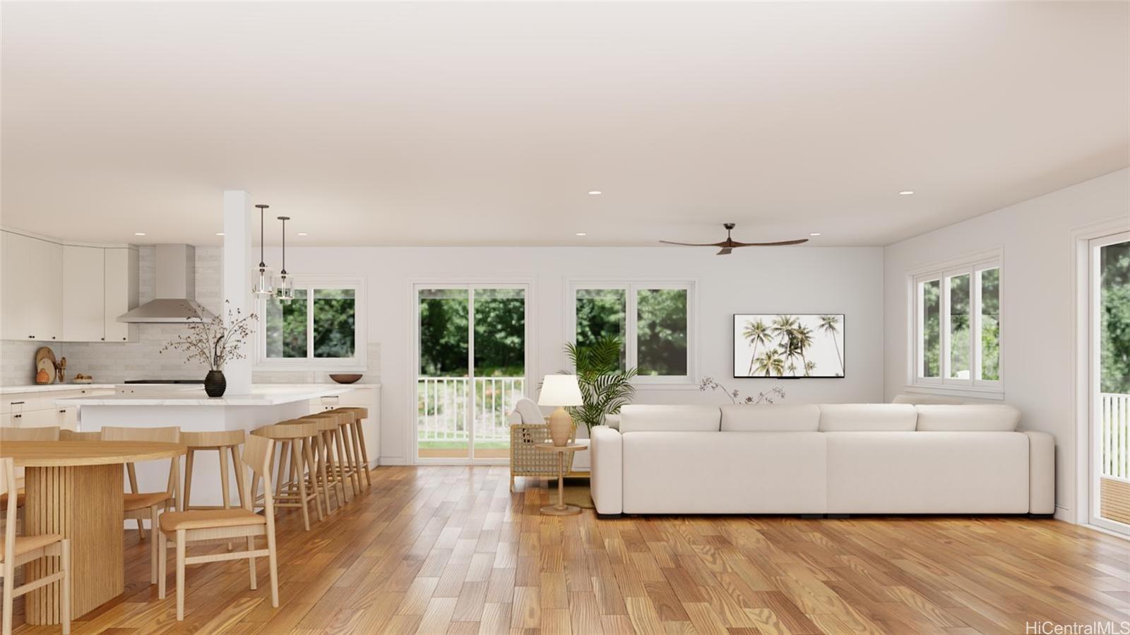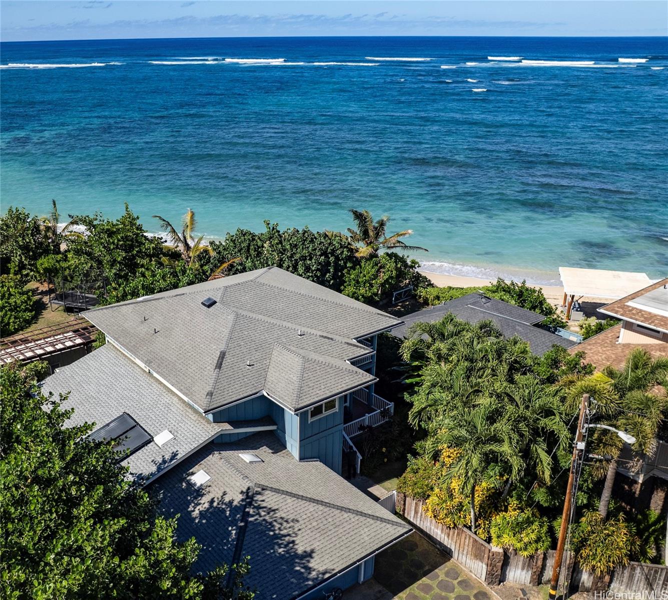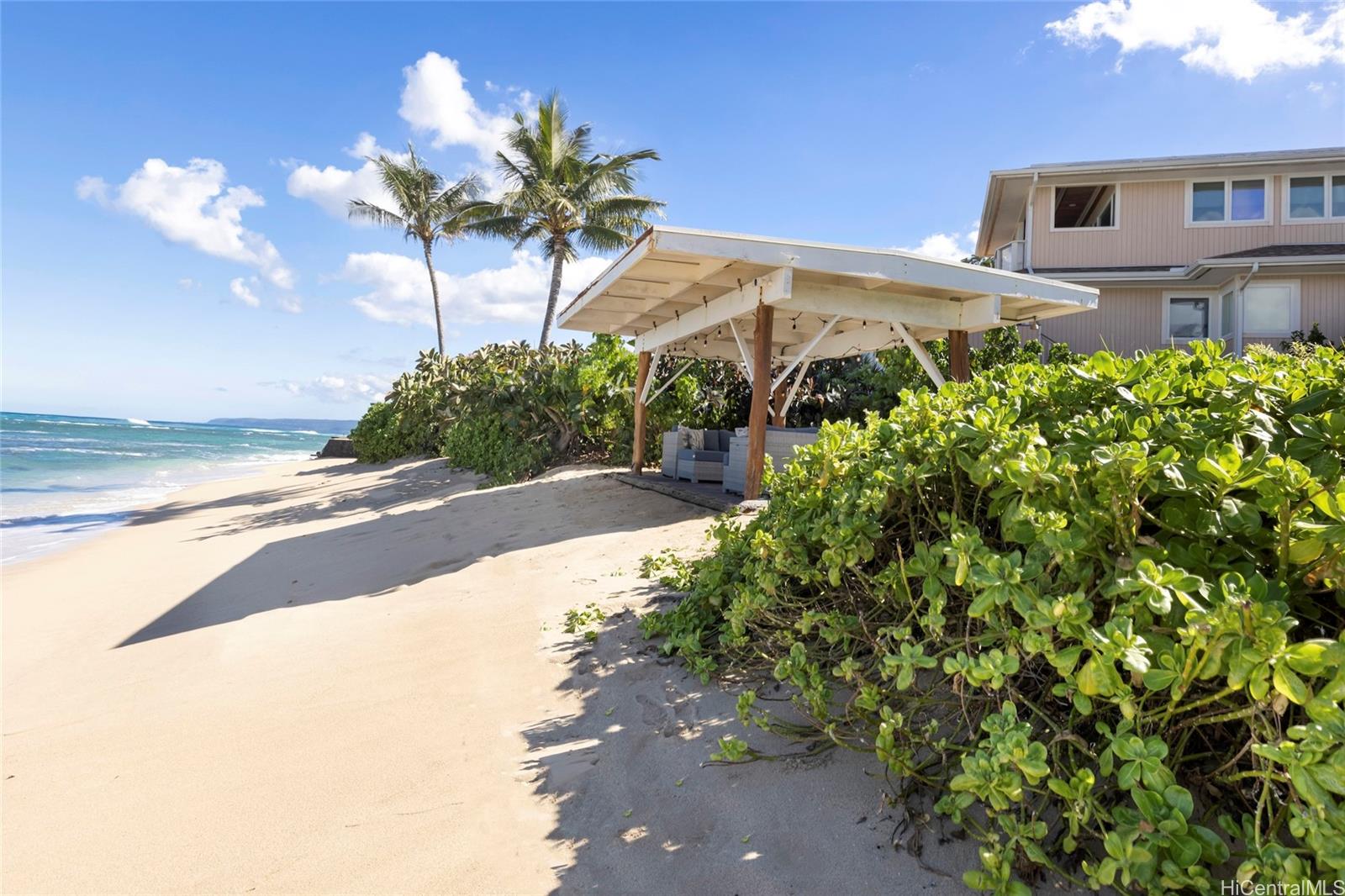Welcome to 68-17 Laau Paina Place, a rare oceanfront property where the beach becomes an extension of your home. Step directly from your private beachfront lanai onto the sand.The main house is two stories with 4 beds, an office, a garage, and 4 baths, featuring an open floor plan and ocean views from nearly every room plus two covered ocean-facing lanais. The second home is an original 1940s cottage with 2 beds and 1 bath and an oceanfront patio. Waves break on the outer reef, leaving the beach swimmable year-round. Positioned in front of Devil’s Rock, renowned for big-wave surfing, tow-surfing, diving, and scuba. Launch jet skis from your front yard. Split A/C, separate meters, and septic. 1 of 4 beachfront homes within this 17-home neighborhood. Deeded beach access for Laau Paina Pl residents. Minutes from Haleiwa within easy reach of Honolulu and the airport. Mokuleia is known for empty beaches, scenic bike rides, polo fields, Dillingham Airfield, Dillingham Ranch, horseback riding, and hiking trails. Architectural renderings and photos 2-5 illustrate a potential kitchen-living area. Buyer to verify all information.