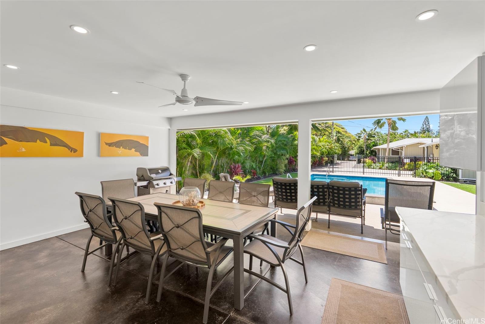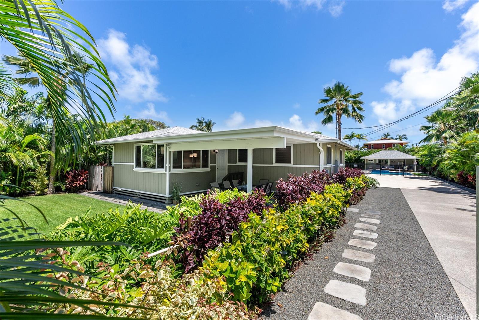 Set in one of Oahu’s most coveted beachside neighborhoods, this exceptional Lanikai property offers versatility and island charm—just steps from the soft sands and turquoise waters of world-famous Lanikai Beach. This unique estate features 2 separate homes (3 bed/2 bath and 2bed/1bath), providing opportunities for multi-generational living, hosting guests, or rental income potential. Both houses showcase new flooring and many modern upgrades. When outside, enjoy swimming in the bright blue heated pool and taking in views of the iconic Lanikai Pillbox hike. The property also includes a dedicated pool house complete with its own bathroom, outdoor kitchenette, and dining area—perfect for hosting gatherings and enjoying laid-back evenings by the pool. The expansive, fully-fenced grassy area of the backyard is ideal for outdoor activities like volleyball, or a secure haven for pets to roam freely. Ample parking adds to the property’s convenience. In this prime location, your days can begin and end with ocean breezes and sunrise views. This is a truly special opportunity to own a beautifully-updated property in one of Hawaii’s most desirable beach communities.