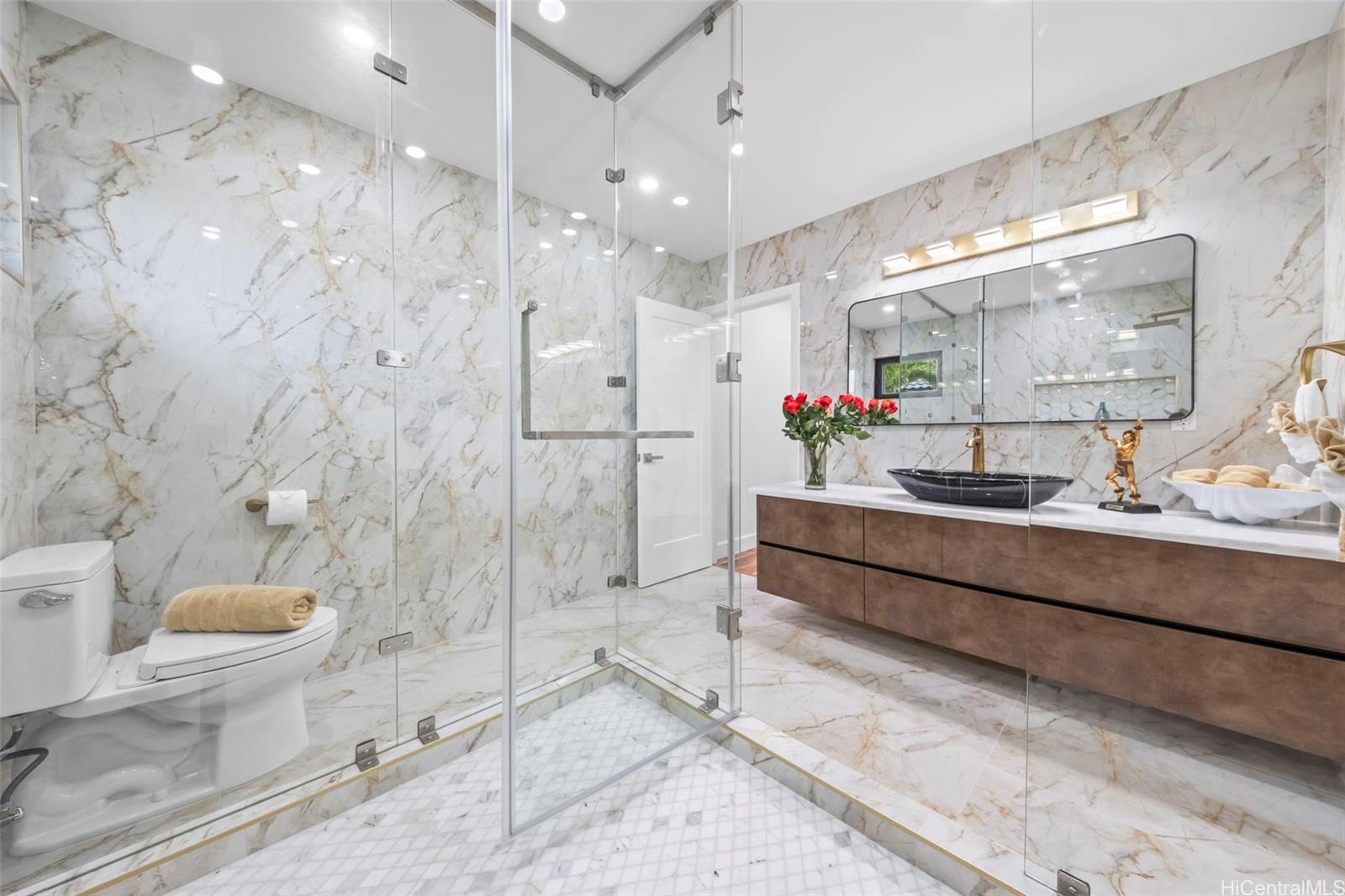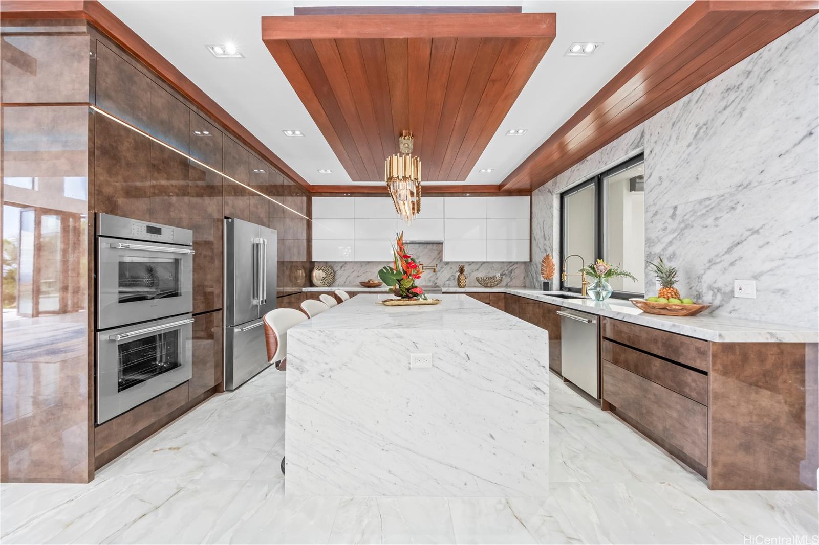 新築 この見事な5ベッドルーム、5.5バスルームの邸宅で、贅沢な暮らしを。 ナパリ・ハウェオにある5バスルームのカスタムビルド邸宅。 鋼鉄の骨組み、梁、柱で構築されたこの住宅からは、海、ココ・クレーター、そして鮮やかな夕焼けの息をのむようなパノラマビューが広がっています。 広々としたオープンフロアプランは、高い天井とデザイナー仕様のサーマドール製家電を特徴としており、壮麗なカラカッタ・イタリアン大理石のアイランドキッチンを備えています。 壁面と特注のヨーロッパ風キッチンキャビネットにはLED照明が埋め込まれており、引き出しにはソフトタッチ機構が採用されている。 インフィニティ・スマート、自動洗浄機能付き塩水プール&スパは洗練されたガラス仕上げが特徴です。 各寝室には専用バスルームが備わり、主寝室には金色のバスタブが設置されています。また一室はコーナー窓から差し込む自然光がたっぷりと注ぎ込みます。 スペイン産の洗練された磁器の床と、天井高く輝くクリスタルのシャンデリアをお楽しみください。 全体を通して、白と金のスラブクォーツ、大理石、そして優雅な腰壁が豪華な雰囲気を高めており、メインバスルームには金色の洗面台と金色のバスタブが備わっています。 123 ワイヒリは現代的な島暮らしを体現し、静寂な禅のリトリートを特徴とする屋内と屋外が一体となったライフスタイルで、安らぎとリラックスを体験できます。 複数の写真が補正されました。 3Dツアーをリクエストする。 .