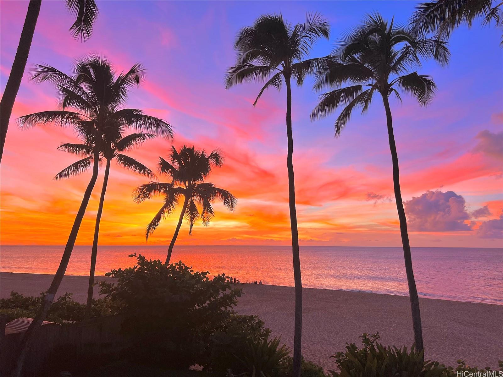 Extraordinary once in a lifetime opportunity to own a prestigious beachfront property on the 50-yard line of the iconic Banzai Pipeline, a site steeped in surf history. This contemporary, custom-built home offers expansive open-plan living spaces that flow seamlessly onto large lanais, embodying the essence of indoor-outdoor living. The upper-level features three bedrooms and two bathrooms, with breathtaking ocean views that overlook the legendary waves of Pipeline, pristine white sand beaches and stunning sunsets. The lower level is designed for versatile living, offering two bedrooms, two bathrooms, spacious living and dining areas, along with a kitchen—perfect for accommodating multigenerational living. The property includes parking for eight cars and a motorized gate for enhanced security and privacy. A generous yard with over 50 ft of beachfront and covered lanai provides an exceptional setting for relaxation and entertainment. This unique property presents an unrivaled chance to own the beachfront home of your dreams, where you can enjoy spectacular sunset and ocean views from one of the most coveted locations on the North Shore’s world-famous Banzai Pipeline.