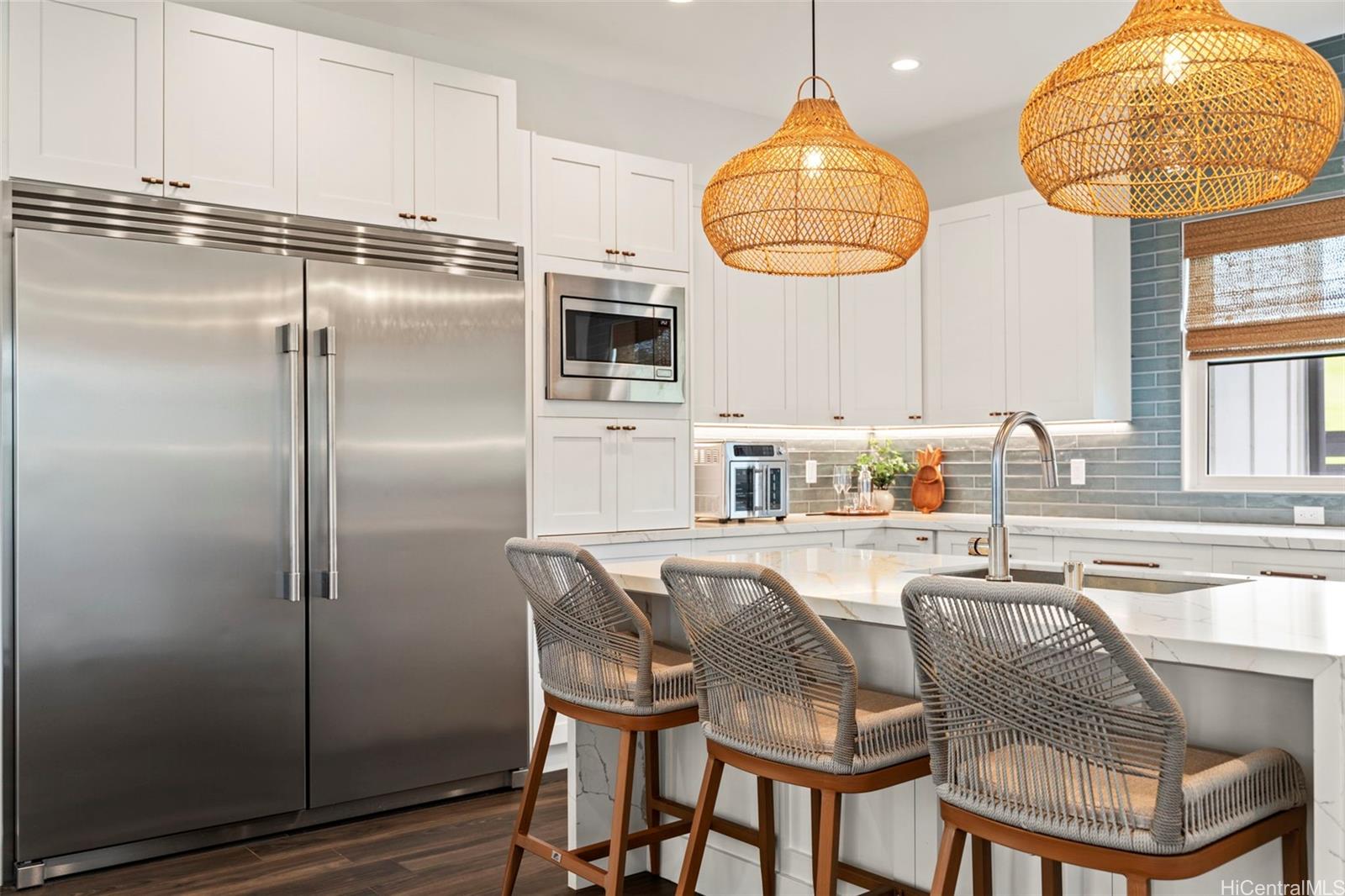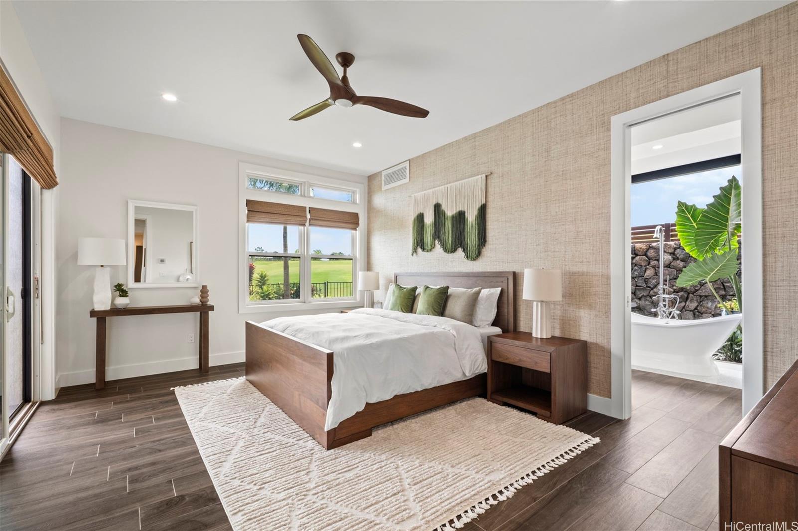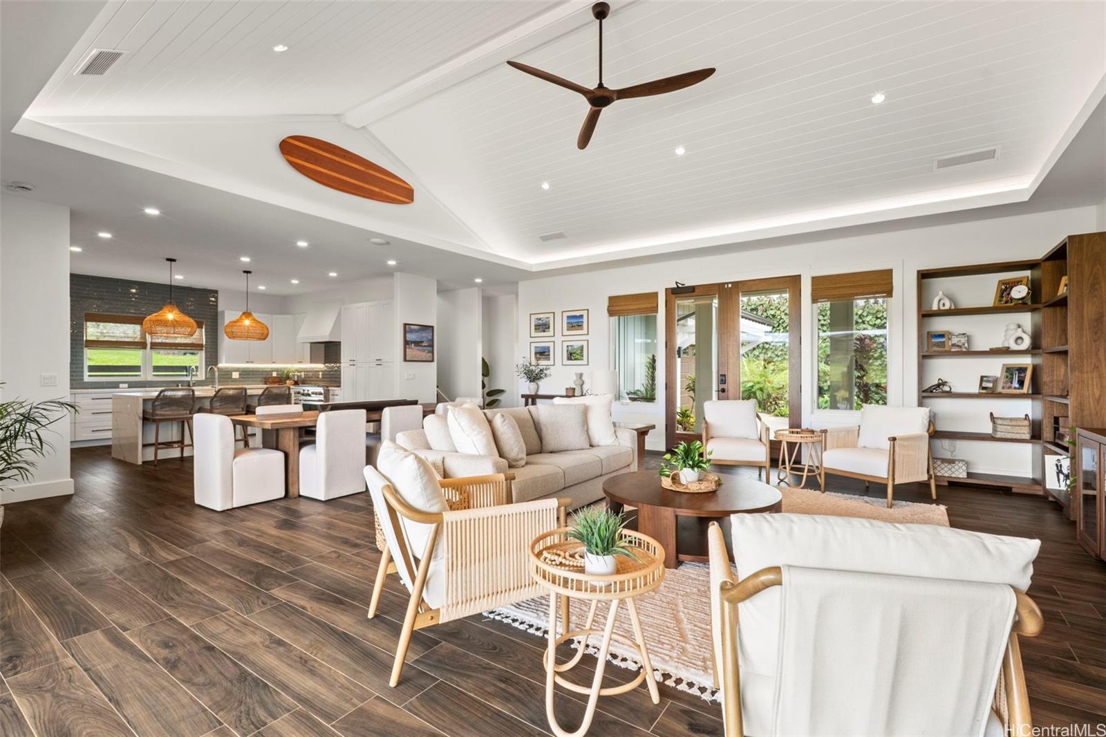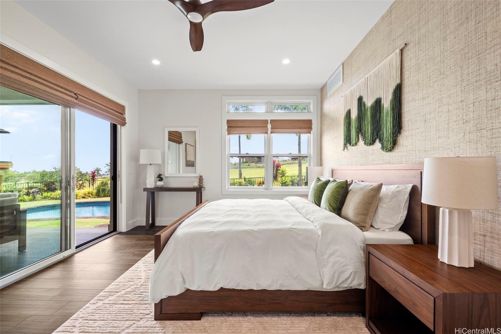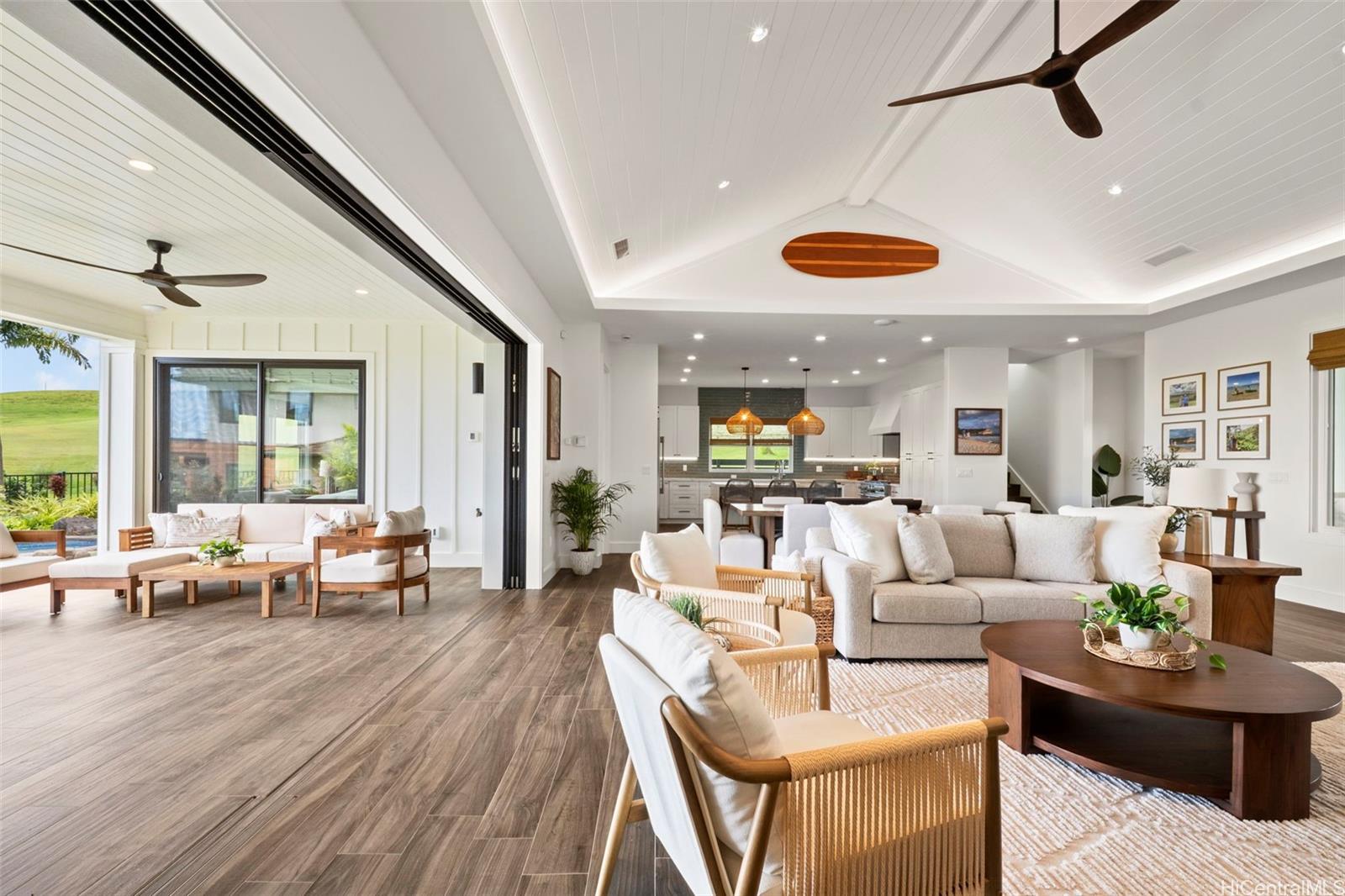 ククイウラの高級住宅街カイマリノにある、人目につかない袋小路に位置する、希少な5ベッドルーム・4. バスルーム5室を備えたこの住宅は、ご家族でのトロピカルな休暇先として、あるいは収益性の高い賃貸物件として最適です。 海とゴルフコースの両方の景色を望む数少ない物件の一つであり、トム・ワイスコフが設計したチャンピオンシップ・ゴルフコースの第9ホールに位置しています。 この住宅は、家中のほぼすべての部屋から雄大な海の景色を望めるよう、またカウアイ島の自然な貿易風を取り込めるよう、入念に配置されています。 屋外スペースには緑豊かな熱帯植物が植えられており、プライバシーを確保し、ゆったりと過ごせるよう、フェンスで囲まれたプライベートな裏庭も備わっています。 オープンコンセプトのリビングエリアは、フリートウッド製の引き込みドアを通じて屋外のラナイへとシームレスにつながり、屋内と屋外を自由に行き来できる快適な暮らしを実現しています。 洗練されたインテリアは、上質な暮らしと気取らないおもてなしの両方を追求して設計されており、この物件は洗練さと機能性が絶妙に調和しています。 この住宅の最大の特徴は、2つのメインスイートがあり、それぞれが静寂に包まれた安らぎの空間となっている点です。 どちらのスイートもそうです。 すべてのコメントおよびデータは、販売者またはその代理人から提供されたものです。 .