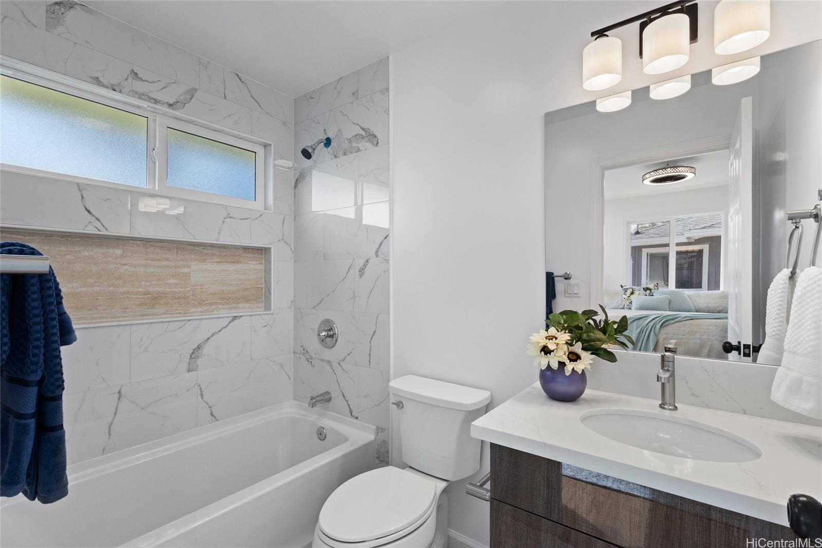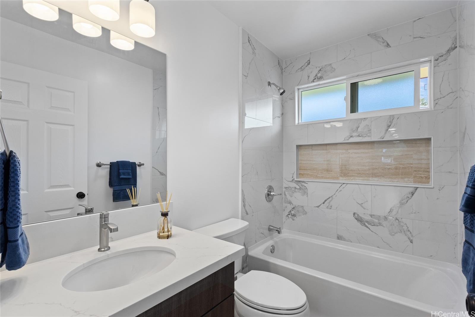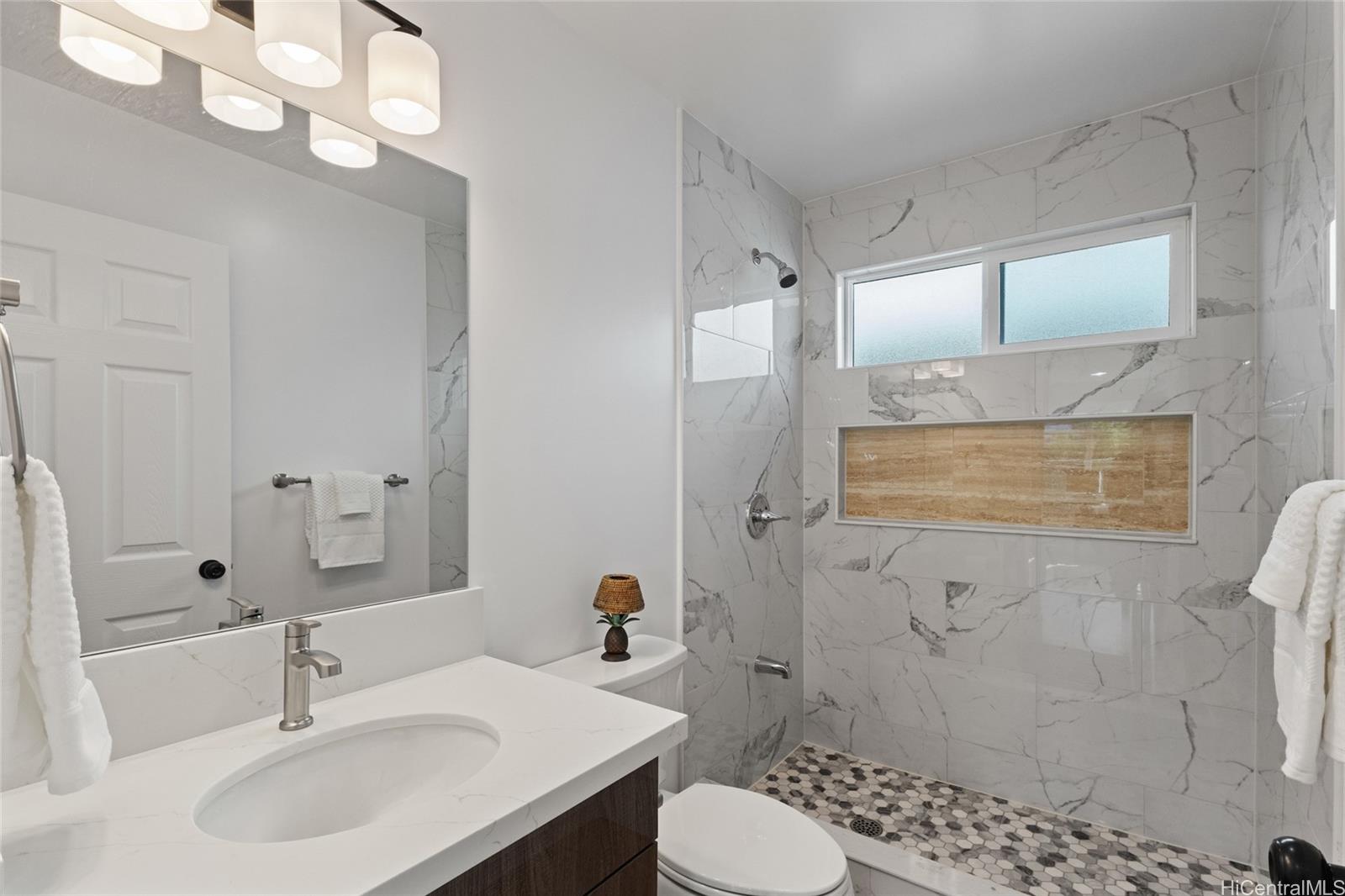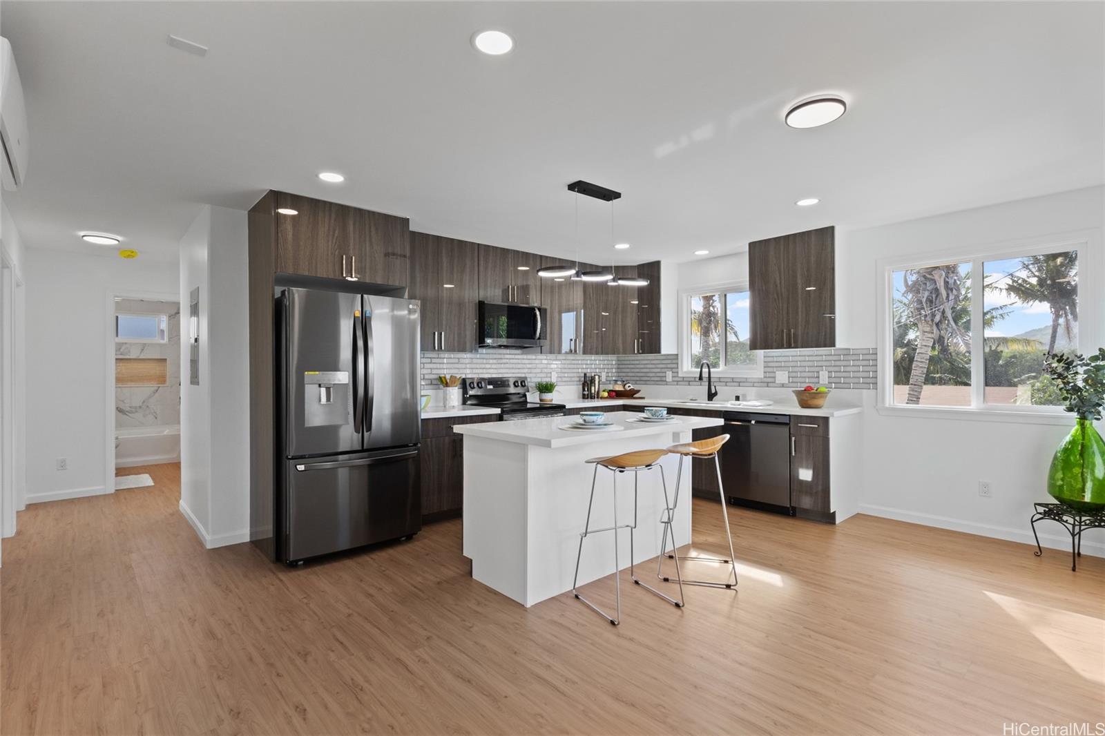 Another brand-new Unit #2, offering the same beautiful design as Unit #1. This 5-bedroom, 3-bath home provides flexible living options ideal for a growing family or extended household needs. The upper level features 3 bedrooms, 2 baths, and a full kitchen with stainless steel appliances. The lower level includes 2 bedrooms, 1 bath, and a wet bar. Parking accommodates up to 4 vehicles, with possible additional side parking. Conveniently located near Maili Elementary School, within walking distance to the beach, and a short drive to Ko Olina and Kapolei for shopping and dining. No HOA.