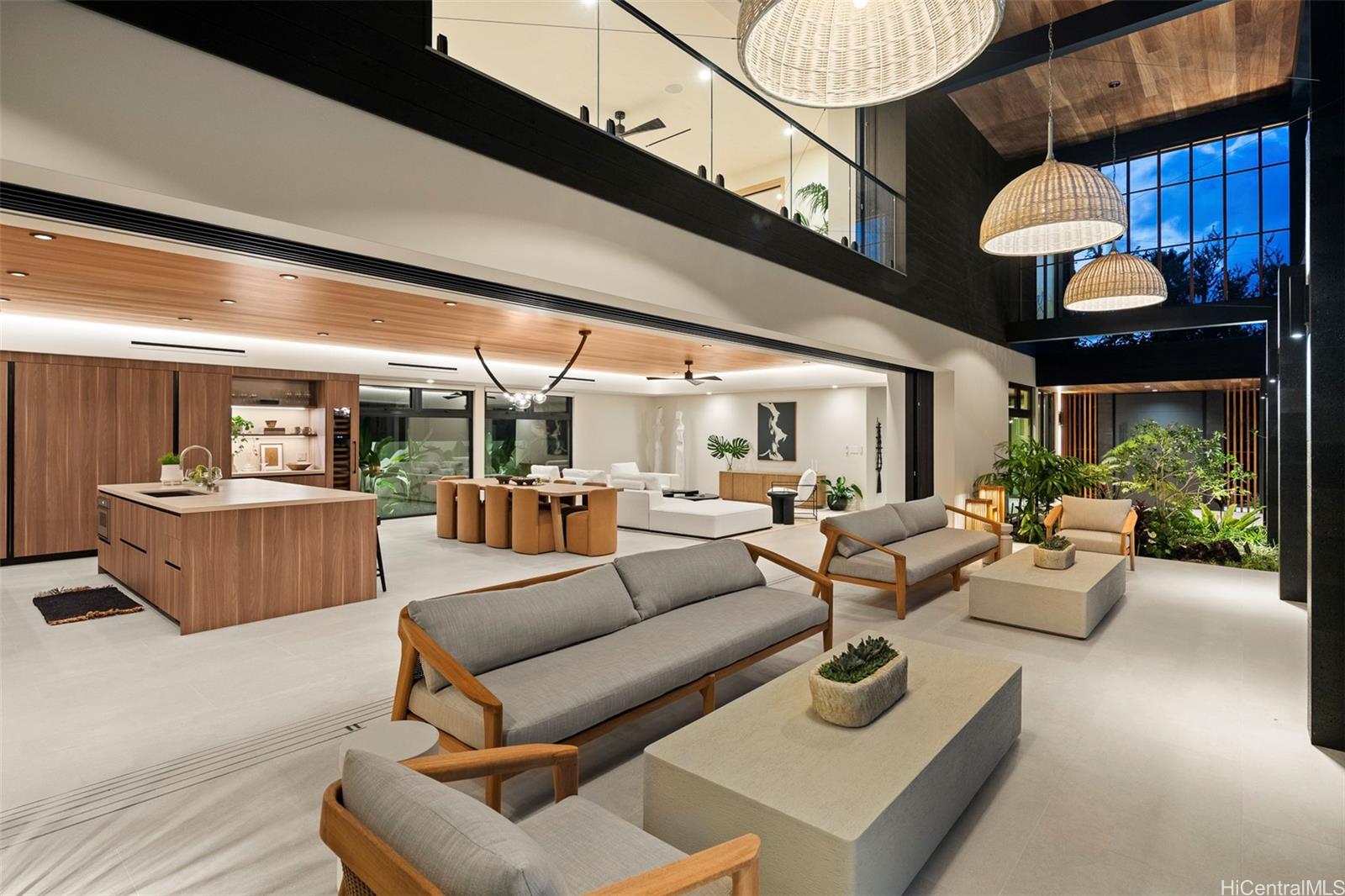 Where Modern Design Meets Island Luxury… Stunning brand new Kahala 5BD/5.5BA residence blends striking modern architecture with resort-style comfort. Iroko wood accents, Shou Sugi Ban siding, & natural lava stone adds warmth, depth & texture. Lush lawns surround the pool & spa, set amid tropical palms & trees. Dramatic covered lanais create seamless indoor-outdoor living, while a poolside pavilion provides the ideal setting for dining al fresco. The great room features custom wood-inlaid ceilings, expansive glass pocket doors & Italian porcelain tile that flows naturally to the lanai. The chef’s kitchen includes premium appliances, Italian cabinetry, spacious island w/ Dekton counters & dine-in seating. The impressive primary suite offers an abundance of space, oak floors, luxe walk-in closet, & a stunning tadelakt plaster bath. Lovely bdrm suites offer contemporary baths, walk-in closets & balcony access + one with a private entry, is perfect for guests, live-in help, or home office use. Addt’l highlights include a sculptural staircase, statement lighting, motorized shades, elevator & 3-car garage. Rarely does a new home of this caliber come to market in Hawai‘i. Simply amazing!