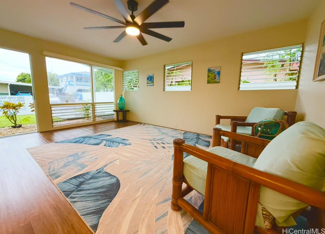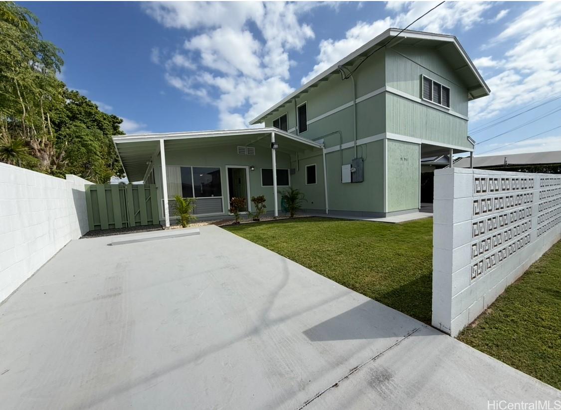 Explore multi-generational or rental ops with this newly renovated property in Leeward Estates in Ewa Beach! This exquisite 2-story SINGLE FAMILY home features 5 bedrooms, 2.5bathrooms, complemented by an enclosed patio that enhances the living space. Den or 1 bedroom, full bath an covered open lanai for laundry notvrefkrcted in tax records. Fully renovated in 2025, it embodies modern plantation luxury without the burden of HOA fees. The property is connected as single-family house but offers the option of three private entries for multi-generational, versatile living arrangements. 1) The main house includes 3 bedrooms and 1.5 baths, along with a full kitchen, dining, and formal living room—ideal for the relaxed island lifestyle. 2) The second floor has two additional bedrooms and a bath, plus a cozy living room, perfect for guests or rental. Refer building permit for 550 sq feet on the 2nd story. It is legal not yet reflected on DPP records but will be in Feb. 3) 286 sq ft open lanai, enclosed lanai sq footage and windows are also on tax records. Don’t miss this chance to own a mn amazing home in Ewa Beach with a storage shed and front and large backyards!