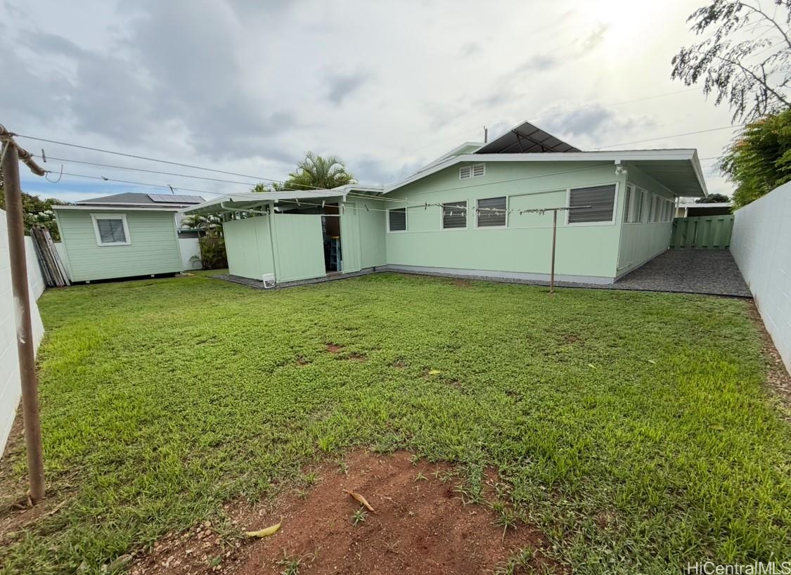 Explore multi-generational or rental op w/ this newly renovated property in Ewa Beach! This exquisite 2-story home features 5 bedrooms, a den and 3 modern bathrooms, complemented by an enclosed patio with wet bar that enhances the living space. Fully renovated in 2025, it embodies modern plantation luxury without the burden of HOA fees. The property offers three private entries for versatile living arrangements. 1) The main house includes 3 bedrooms and 1.5 baths, along w/ a full kitchen, dining, and formal living room—ideal for the relaxed island lifestyle. 2) The second floor has two additional bedrooms and a bath, plus a cozy living room with hot plate potential, perfect for guests or rental. The sq ft in tax records show two extra bedrooms and bath but not reflected and seller is working to correct this. 286 sq ft open lanai, enclosed with a wet bar. Additional features include a den, a bath, a roofed open lanai, and a storage shed, which are not reflected in tax records. Don’t miss this chance to own a beautifully renovated home in Ewa Beach!
